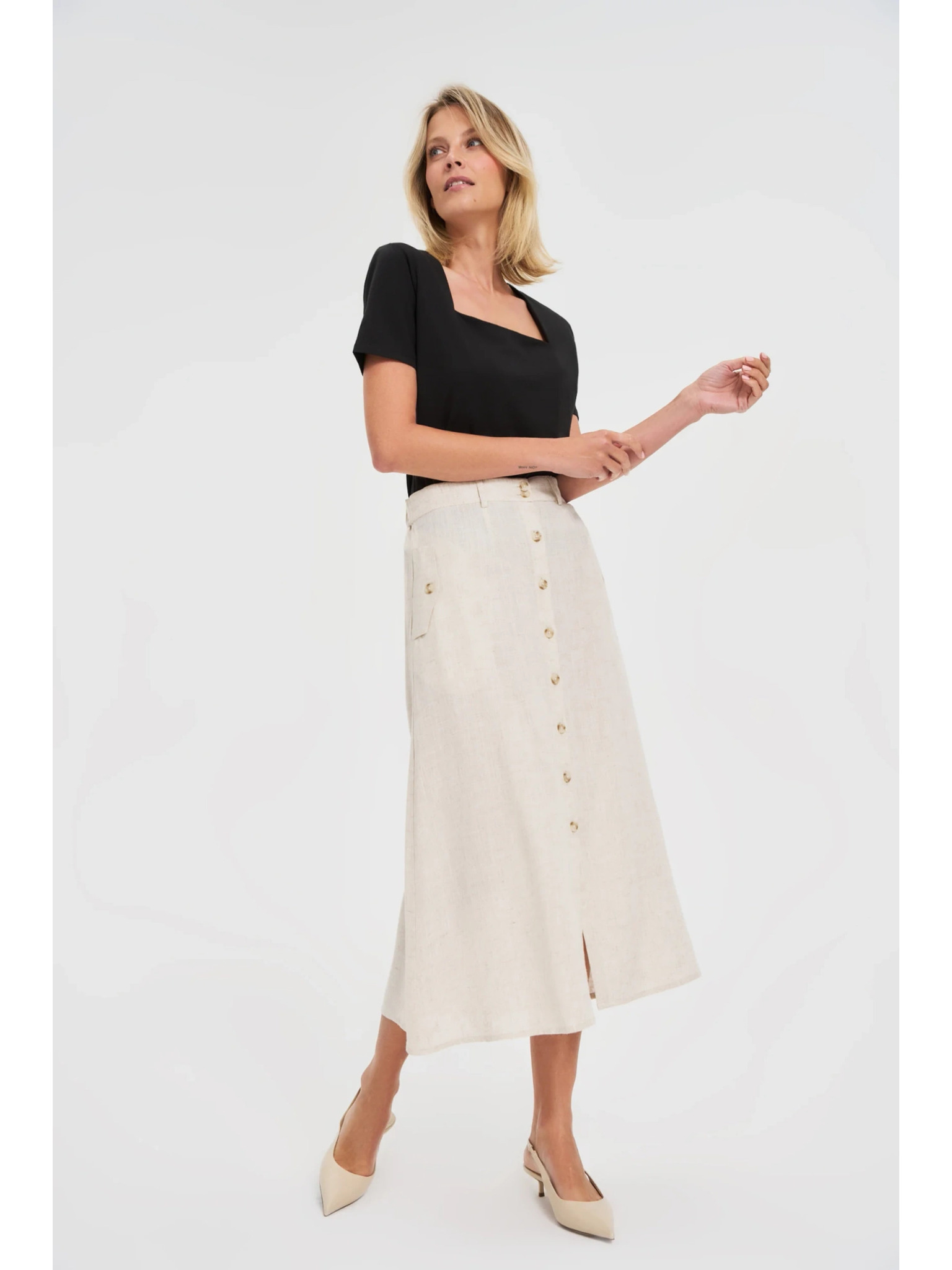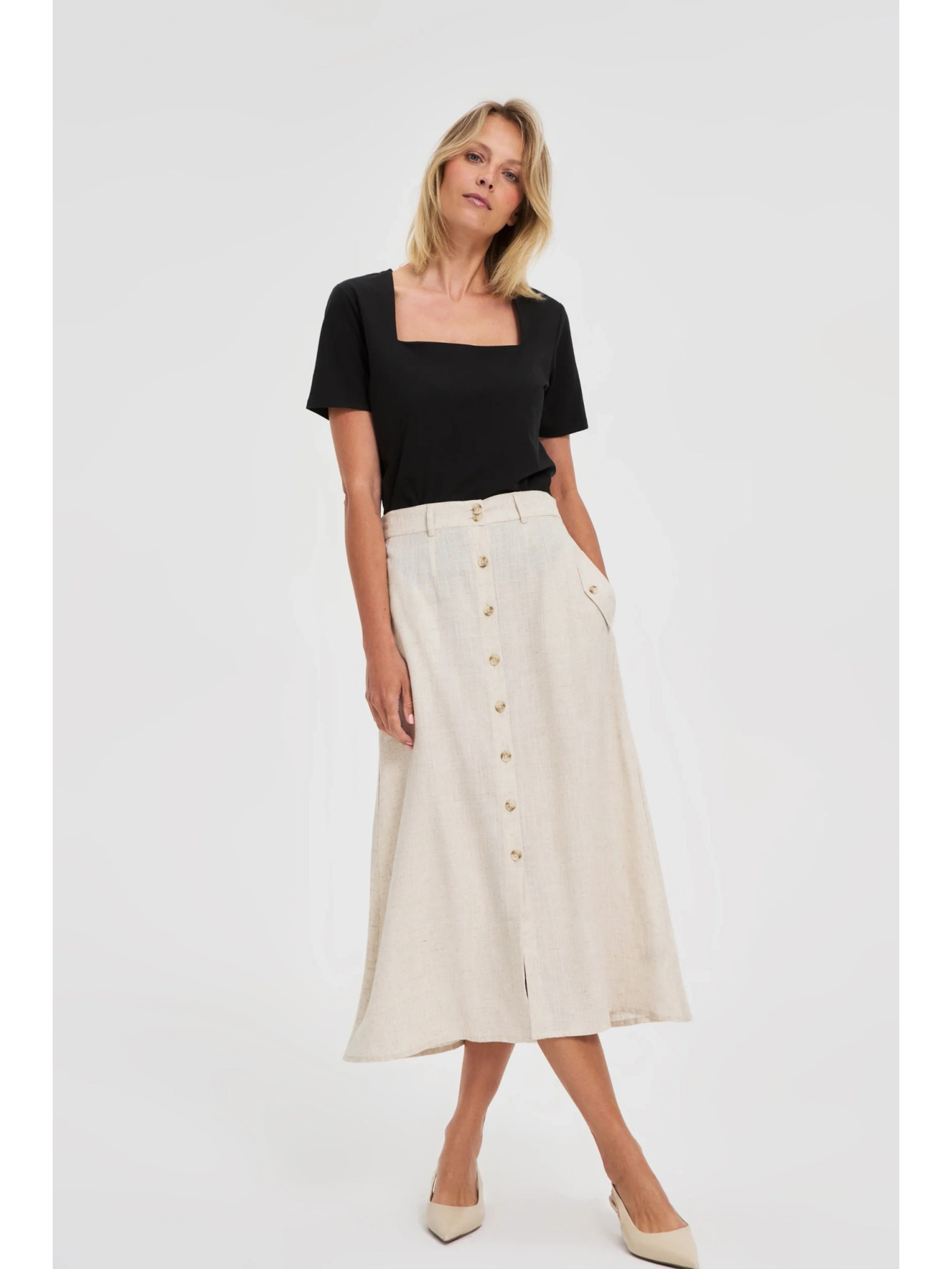Lanena midi krilo bež Moodo