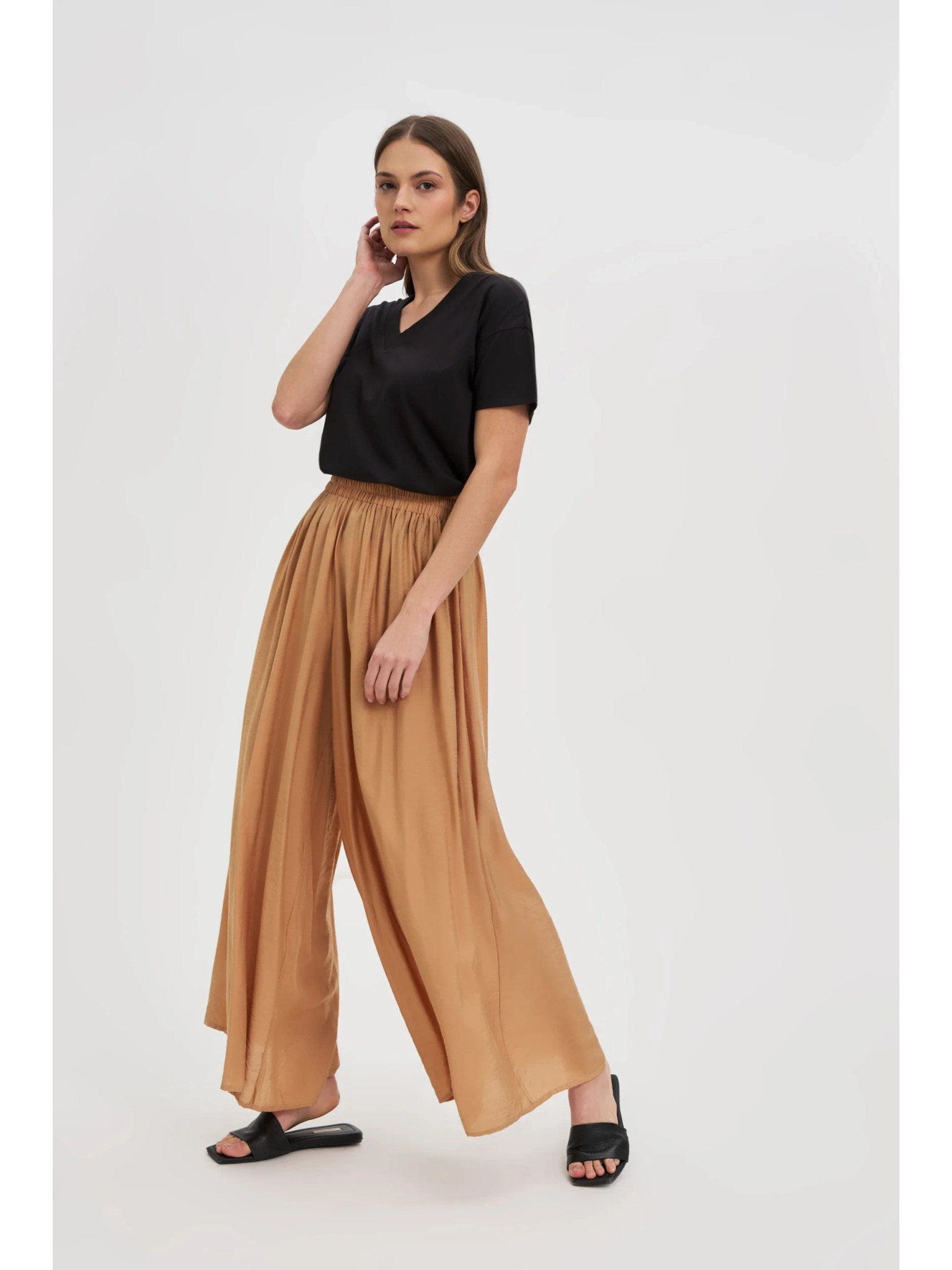 bež široke rebraste hlače ORSAY