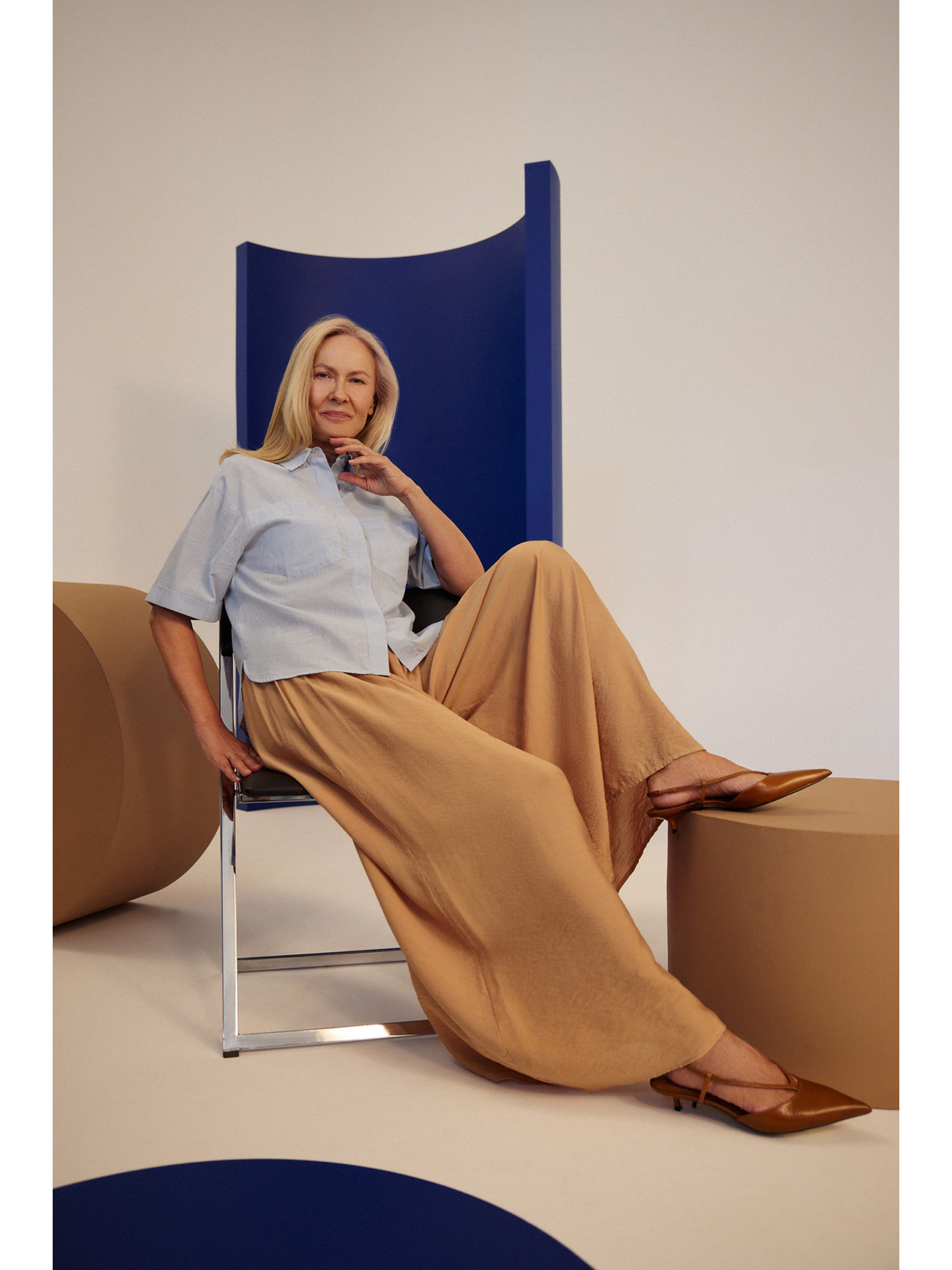 Bežaste hlače z pasom Moodo