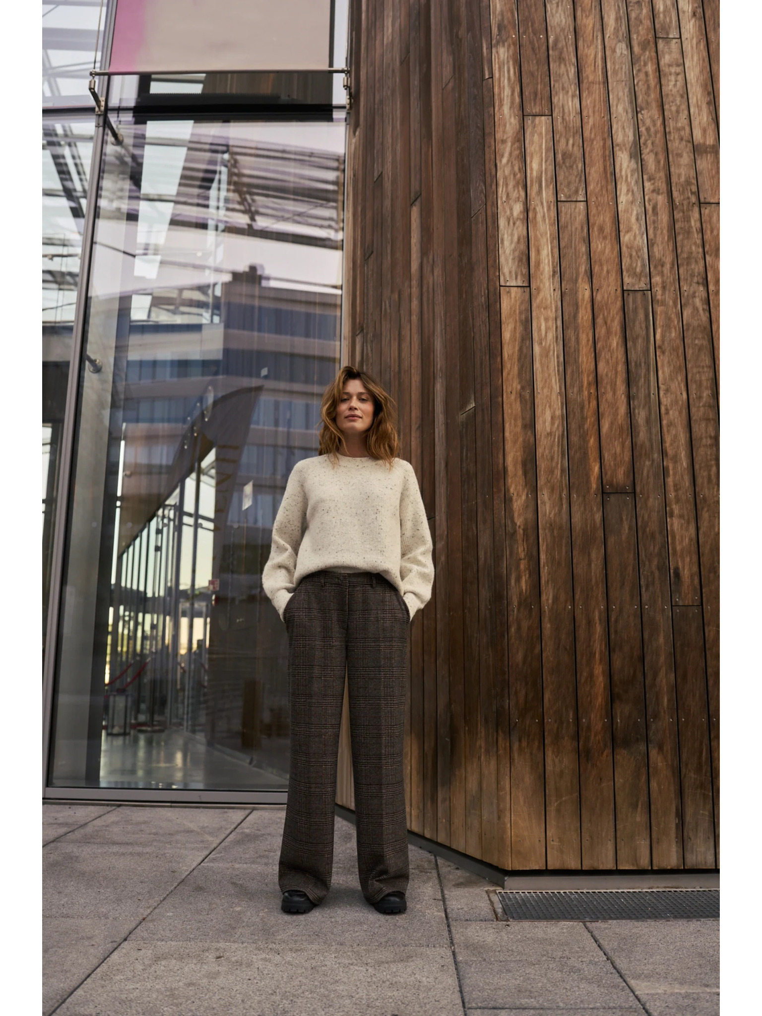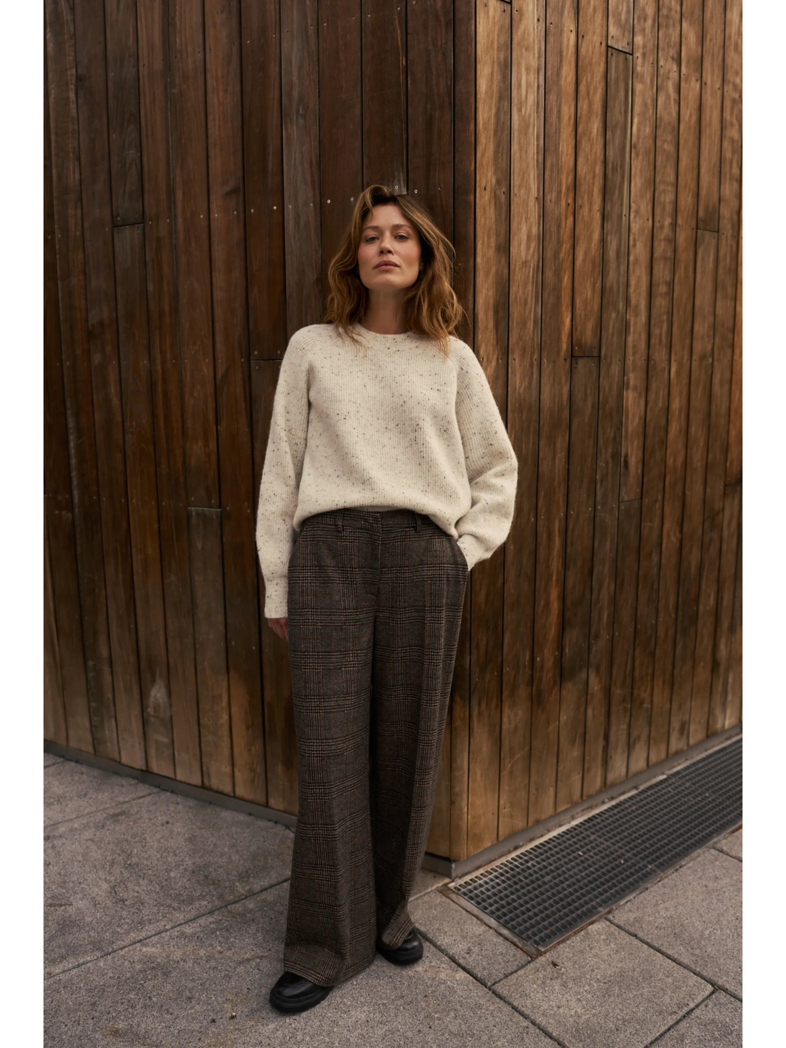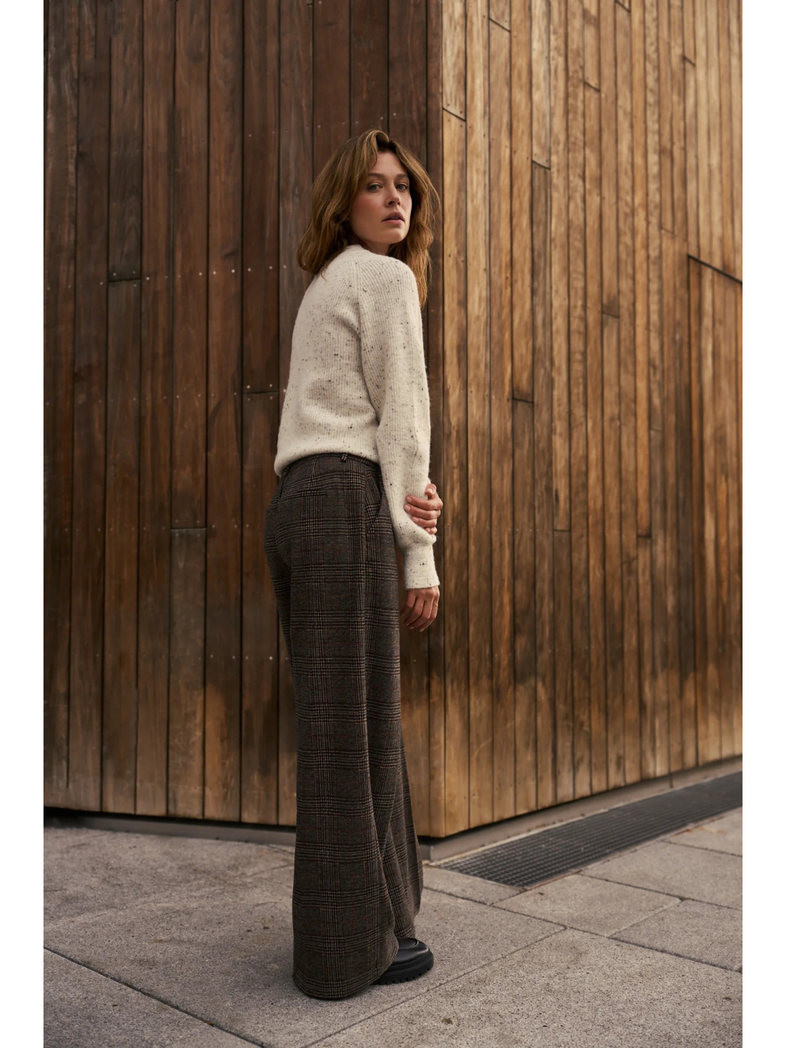 Rjave hlače z širokim hlačnicami Moodo
