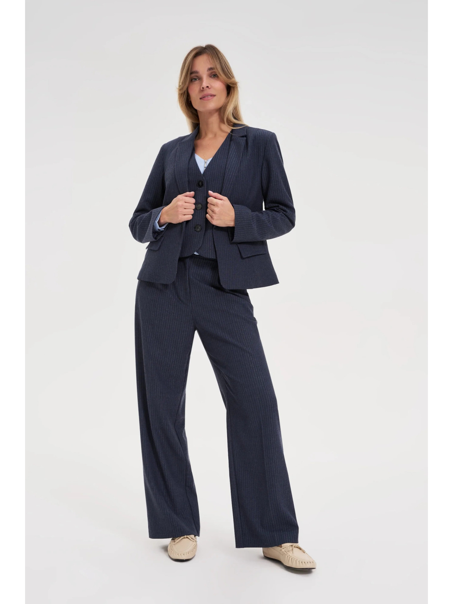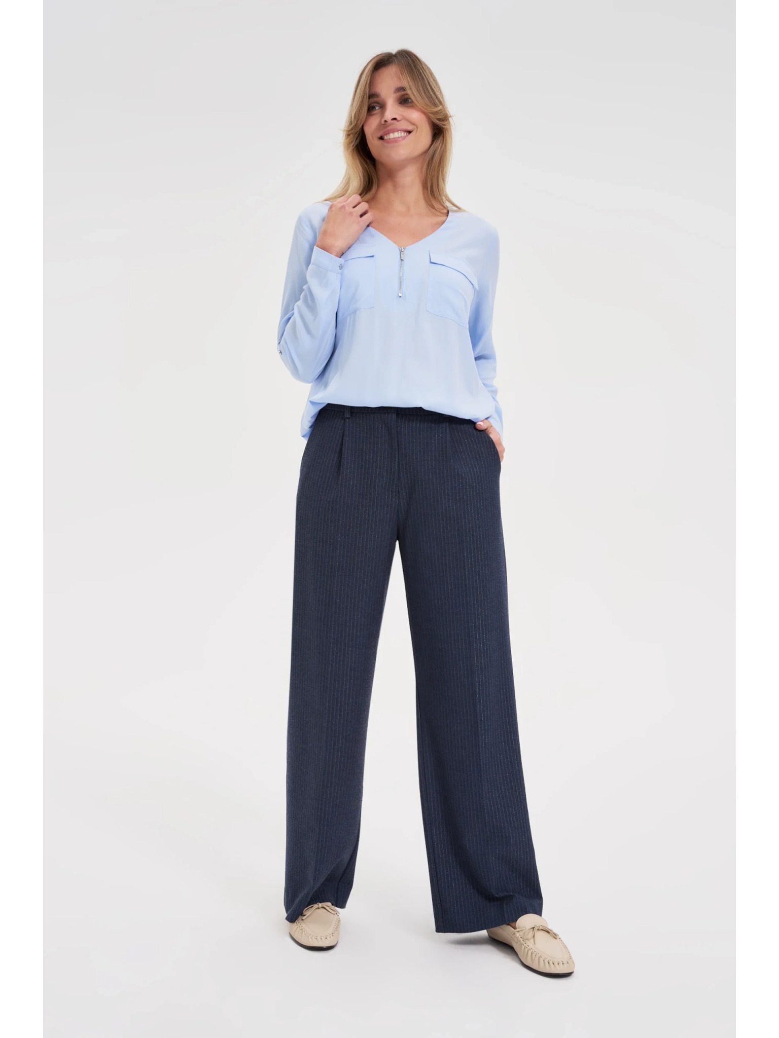 Kremne ženske široke hlače s črtami ORSAY