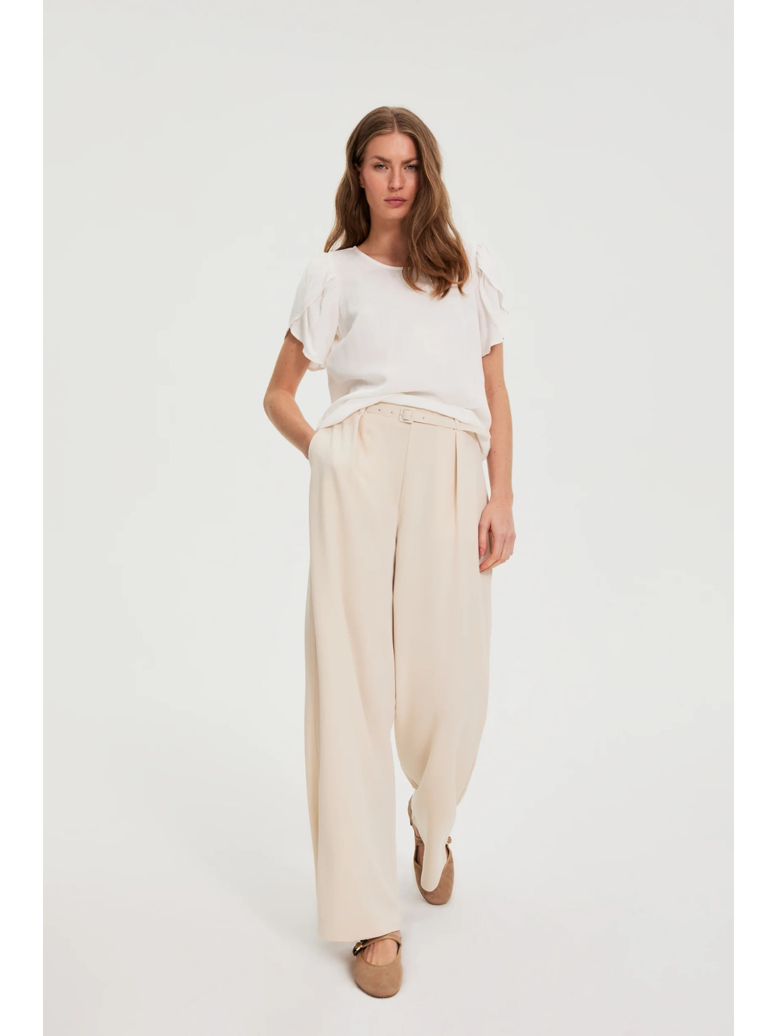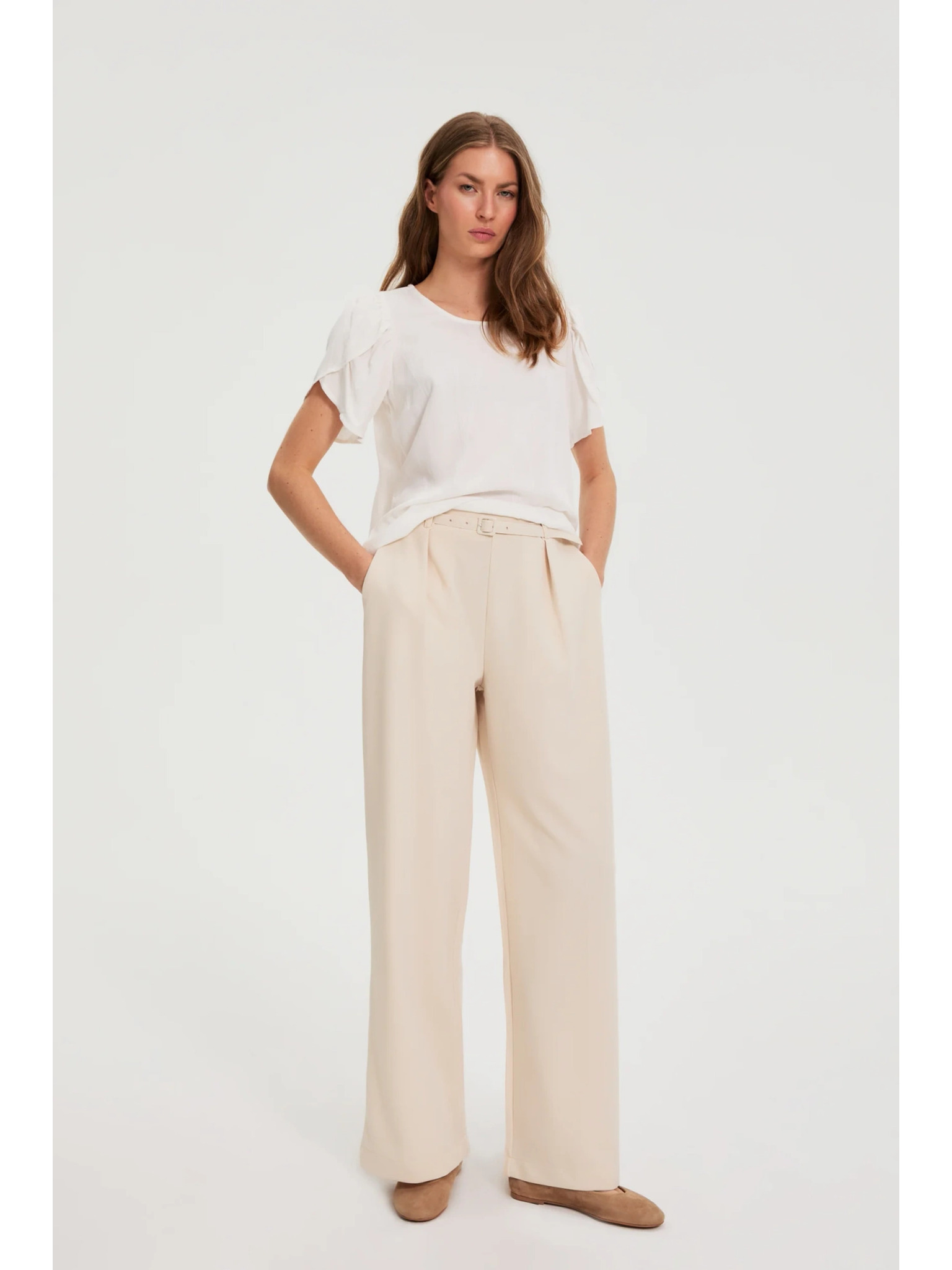 bež široke rebraste hlače ORSAY