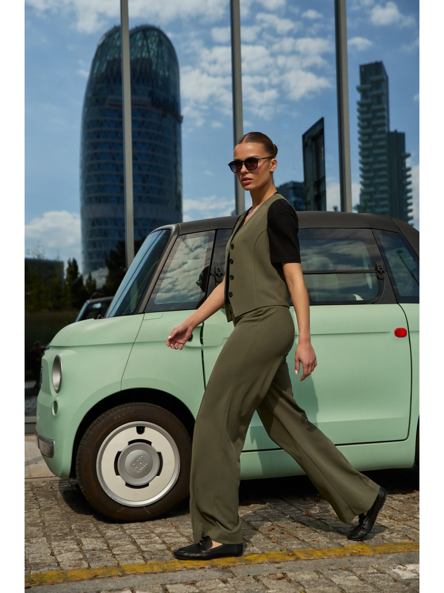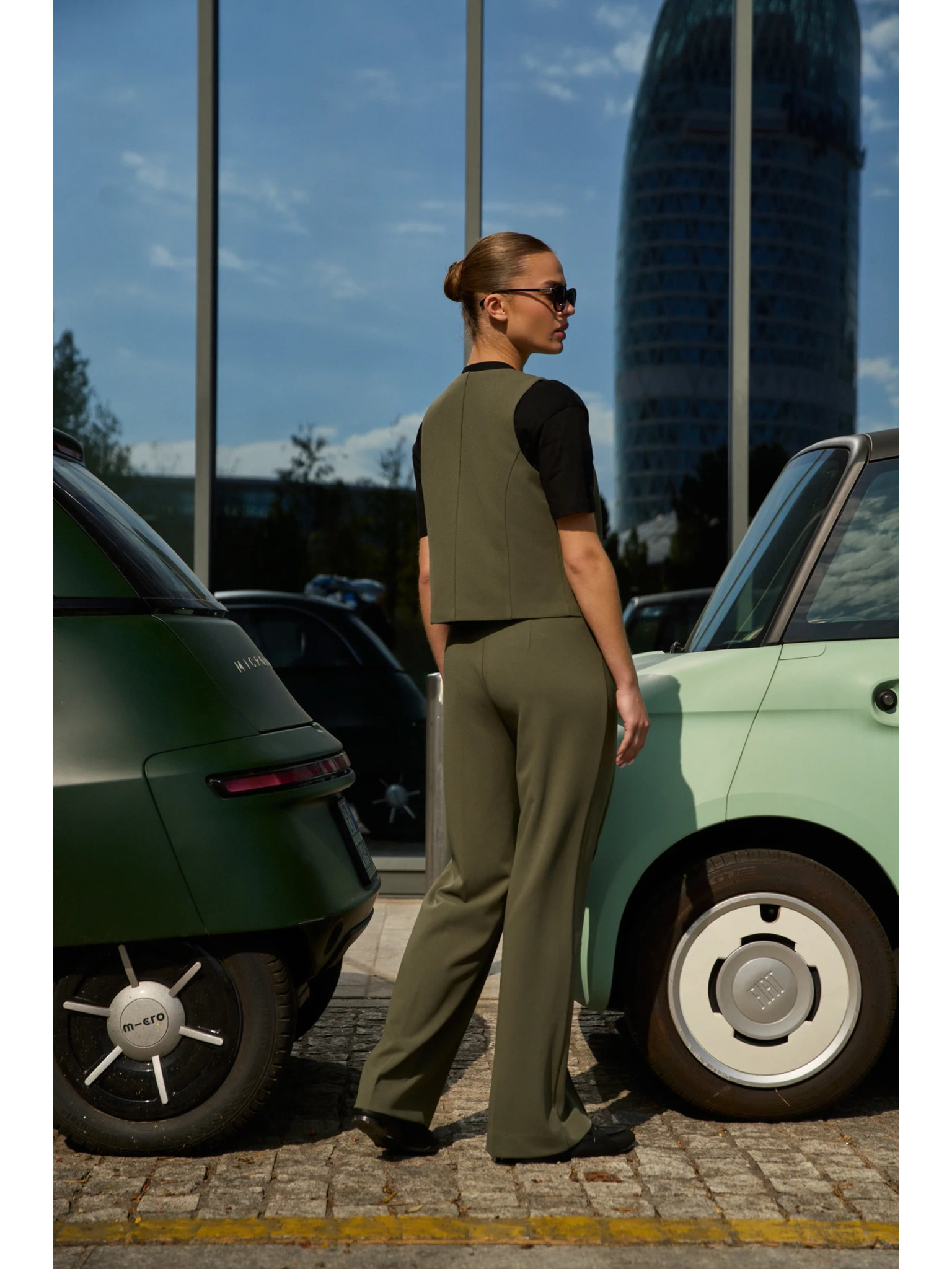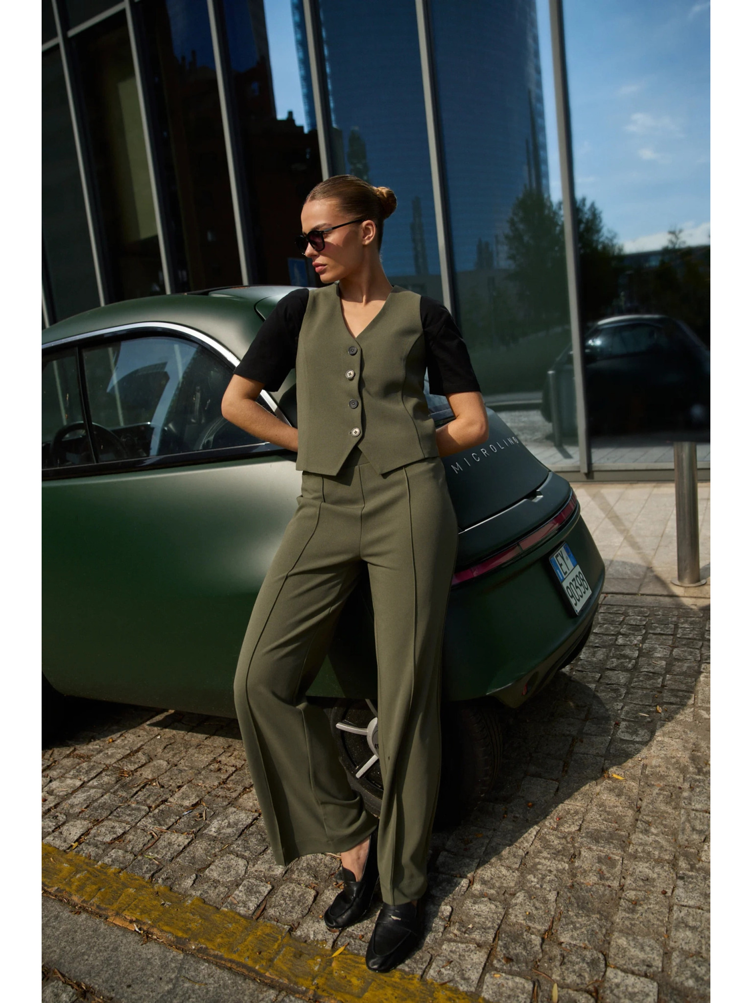 Gladke olivne hlače Moodo