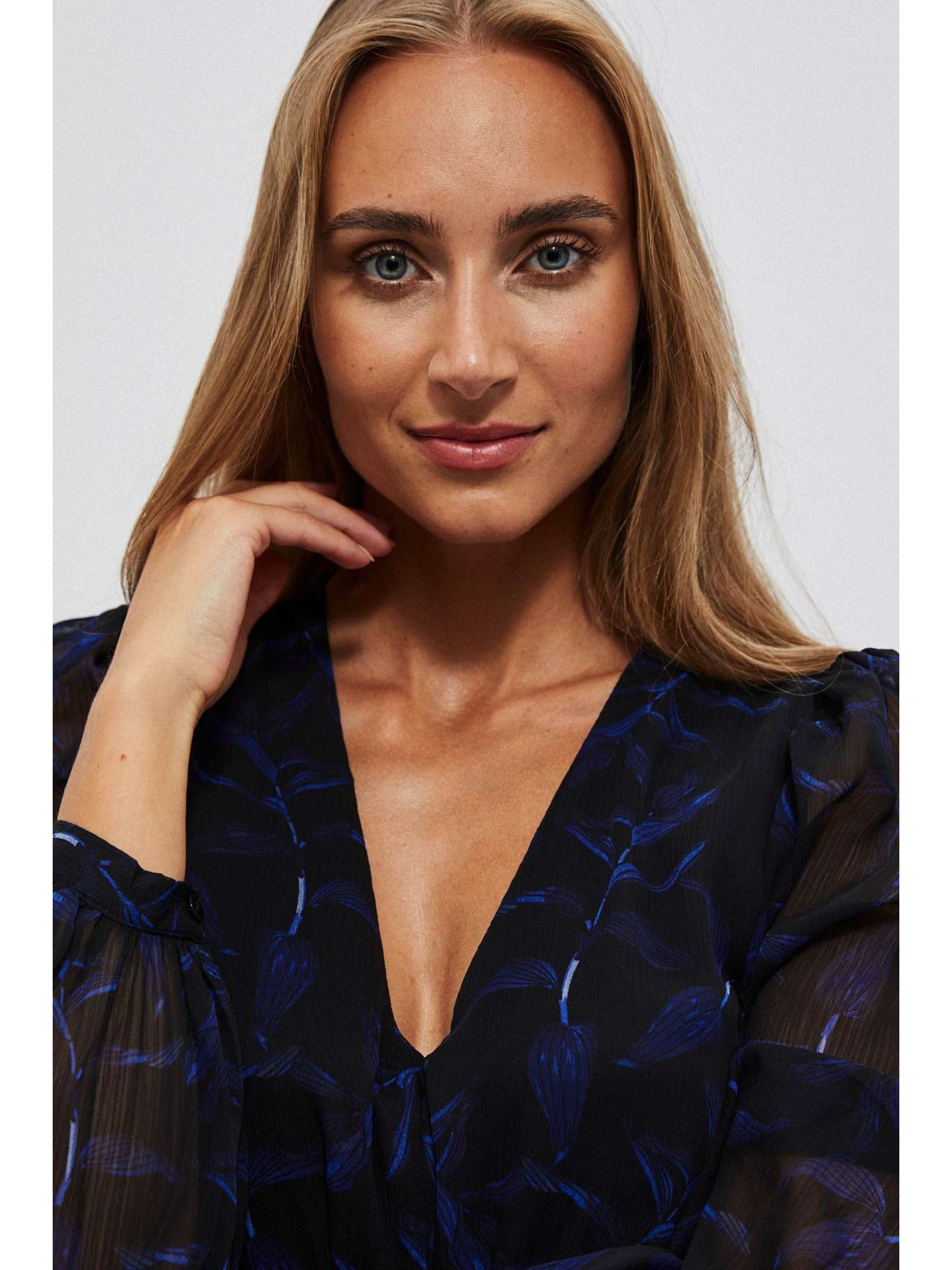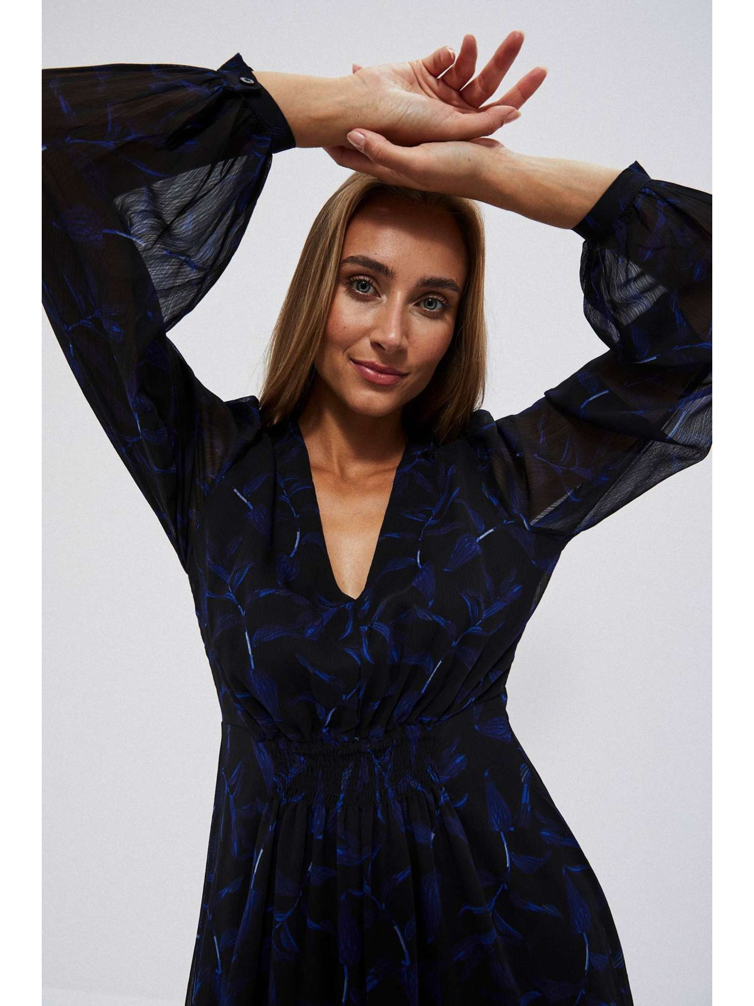 Črna bleščeča obleka s prosojnimi rokavi Moodo