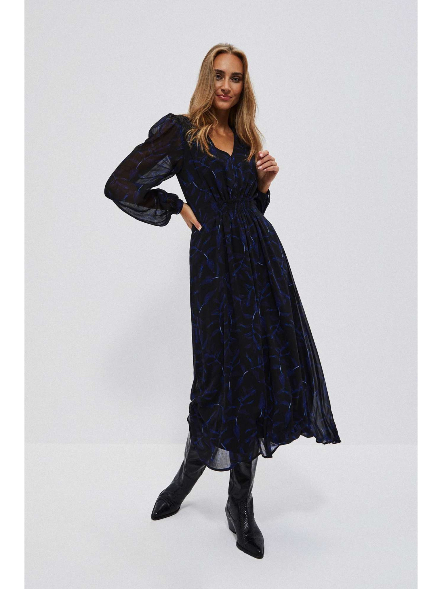 Črna ženska vzorčasta obleka do kolen ORSAY