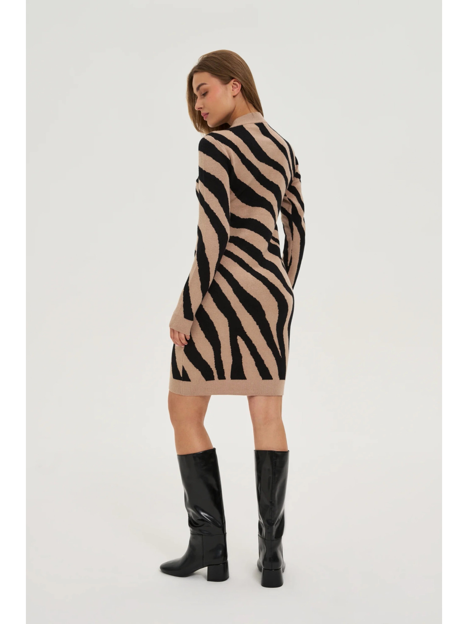 Rjava ženska obleka do kolen ORSAY