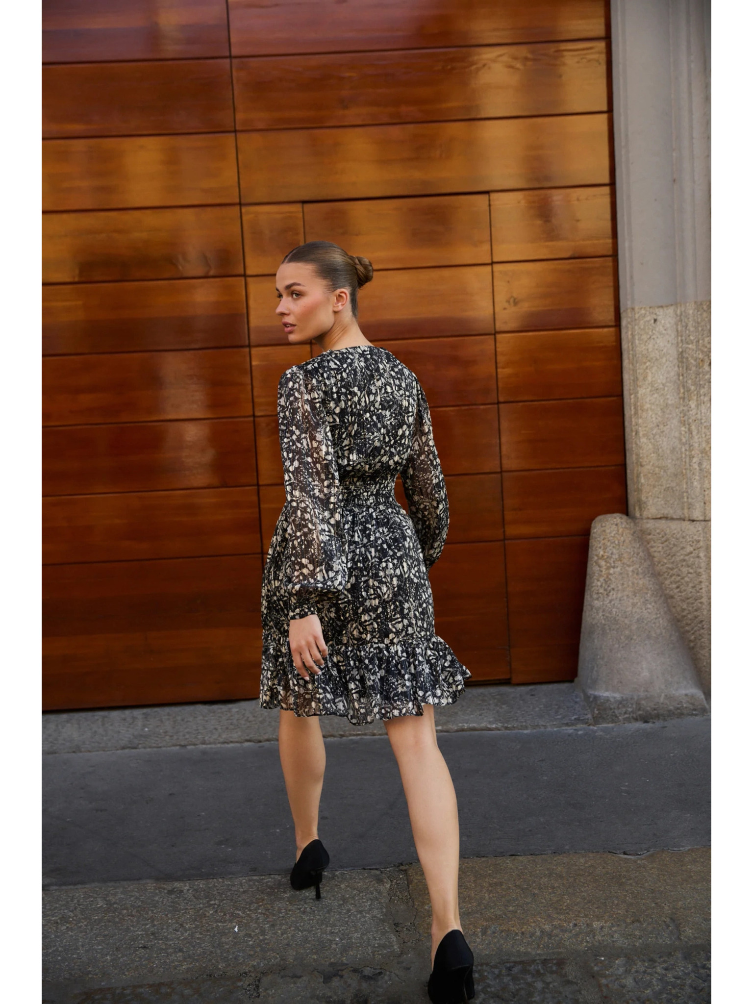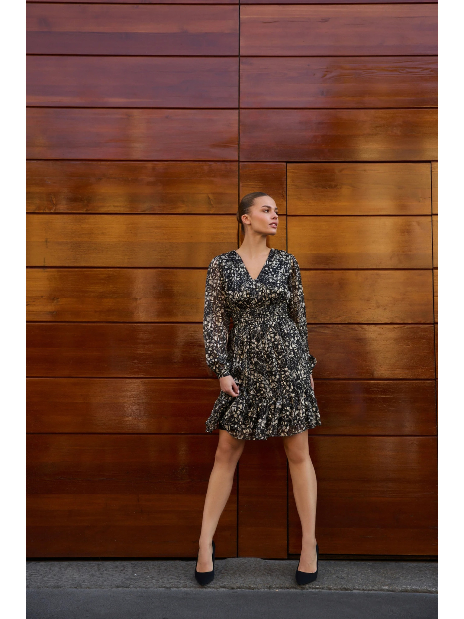 Vzorčaste obleke z izrezom črne Moodo