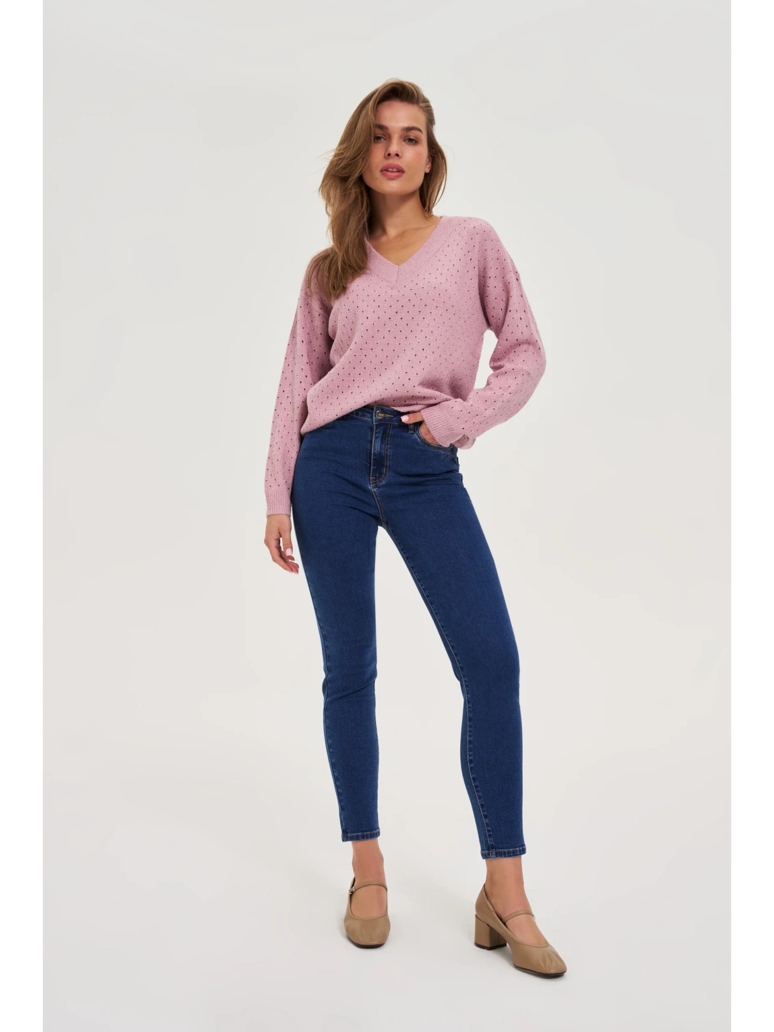 Roza pulover ohlapnega kroja Moodo