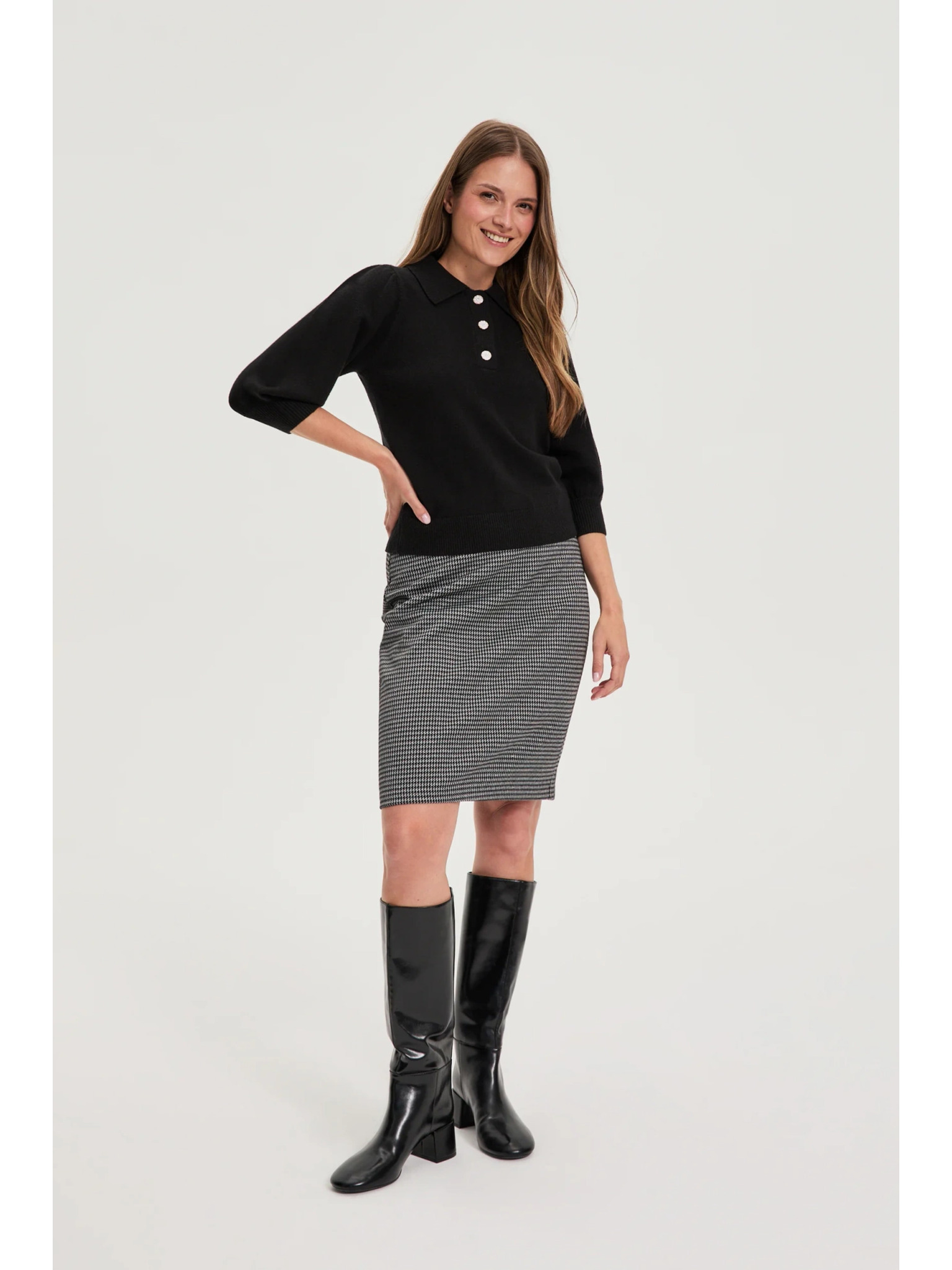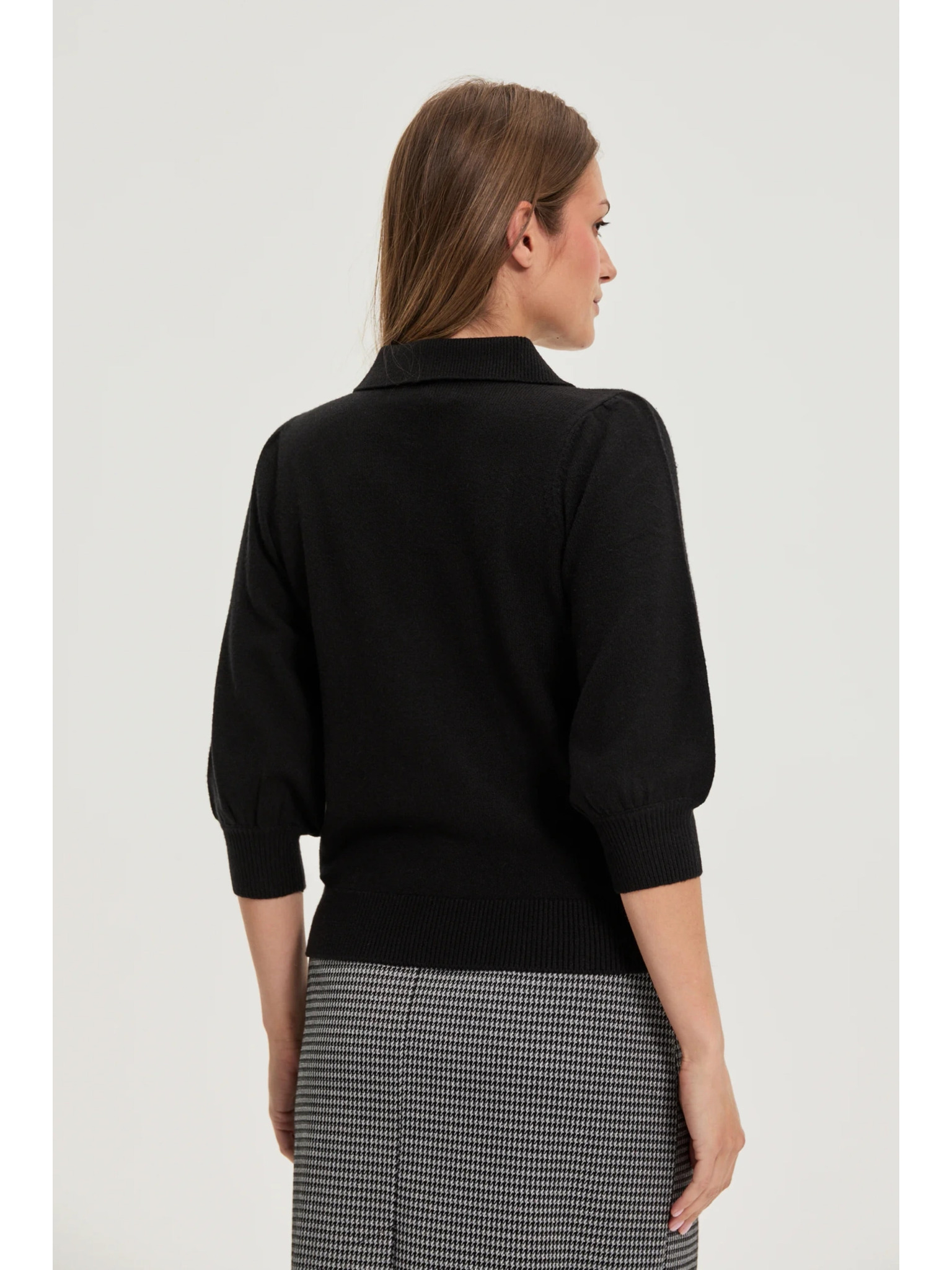 Pulover z ovratnikom črn Moodo
