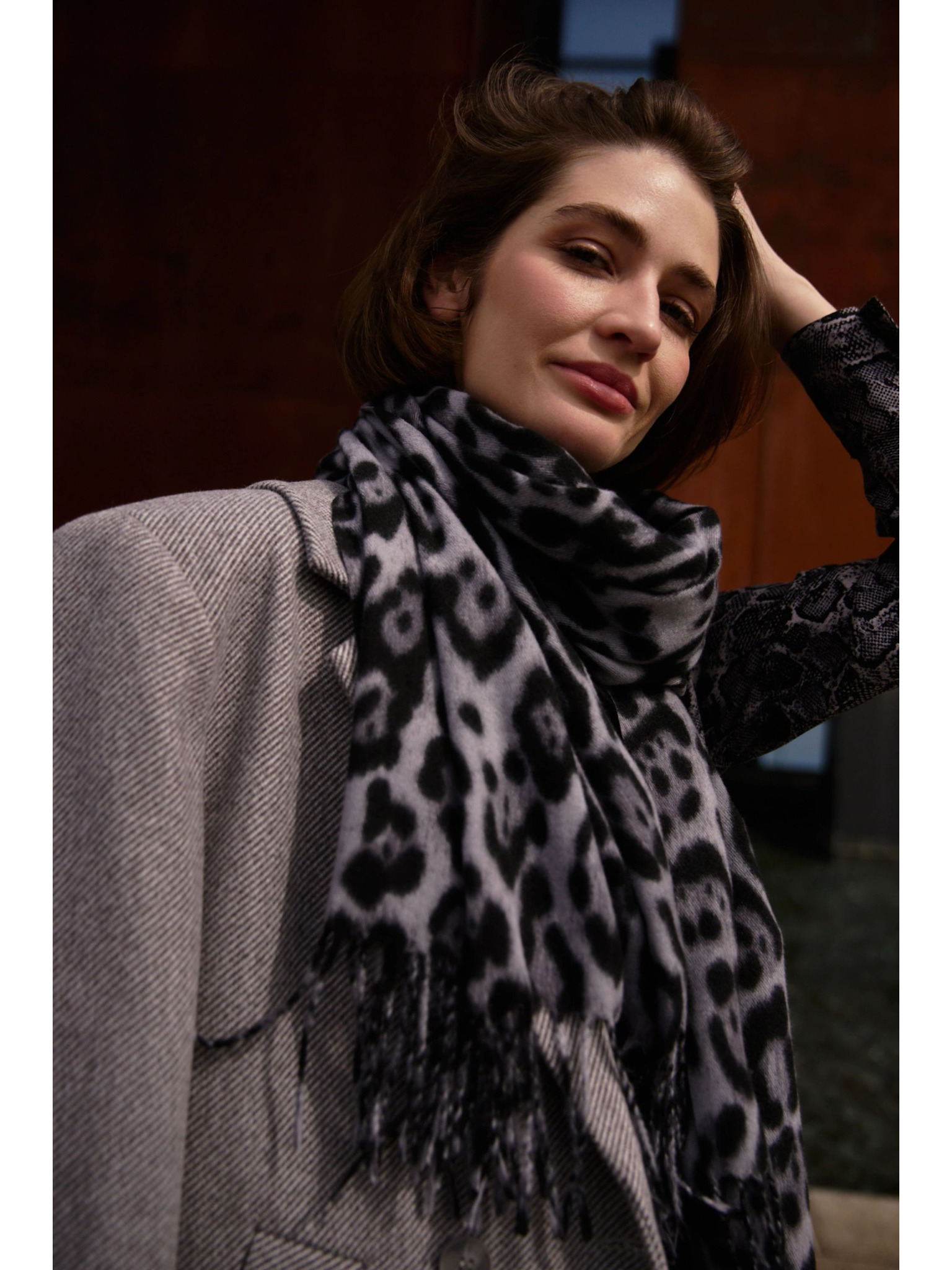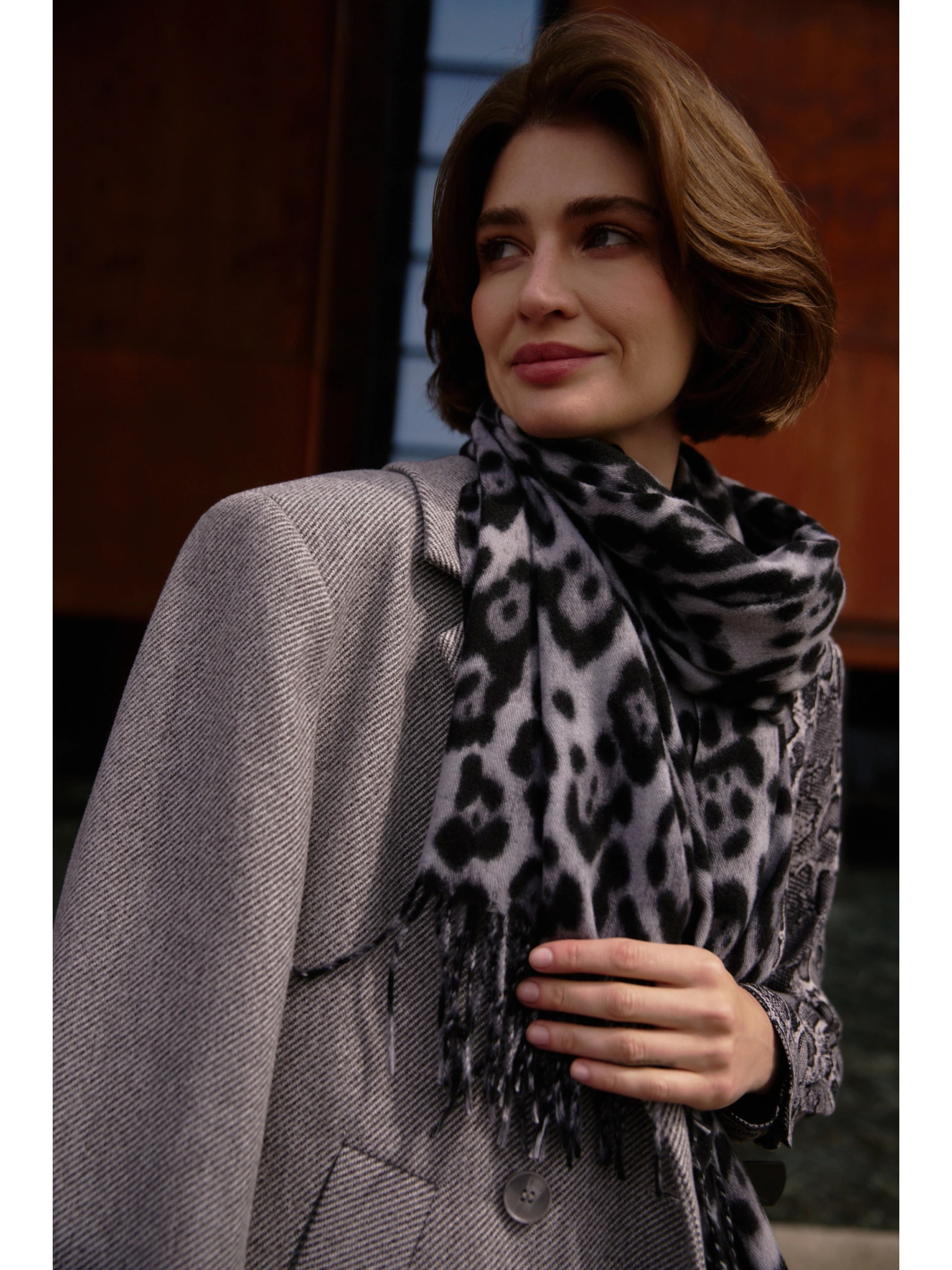 Šal z leoparjim vzorcem rjave barve Moodo