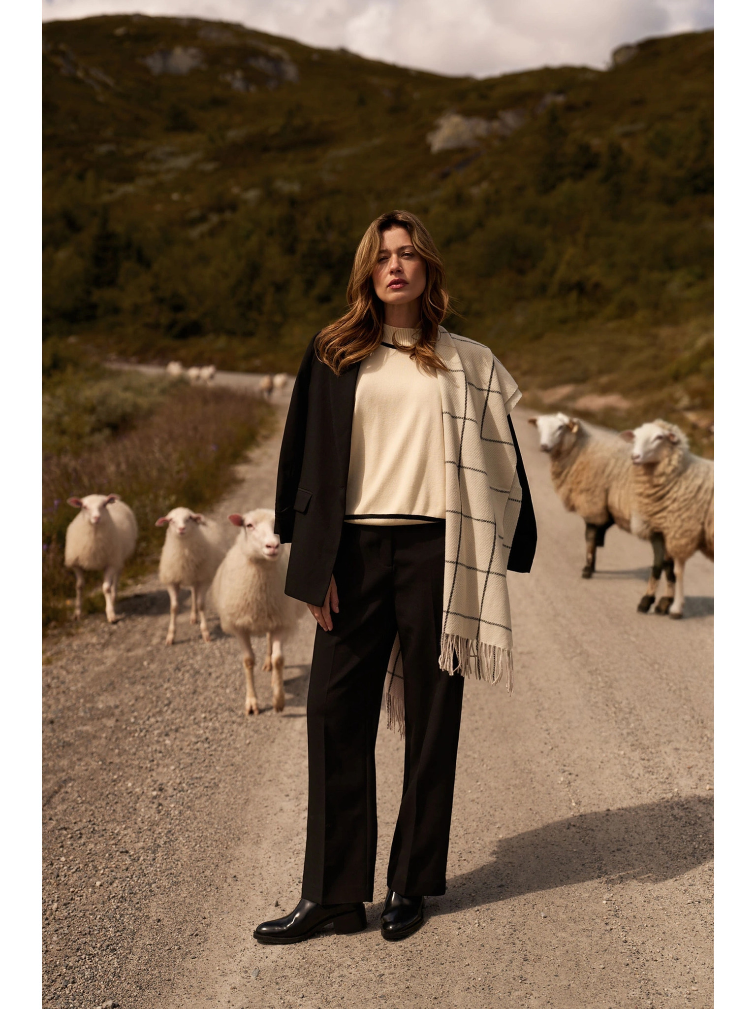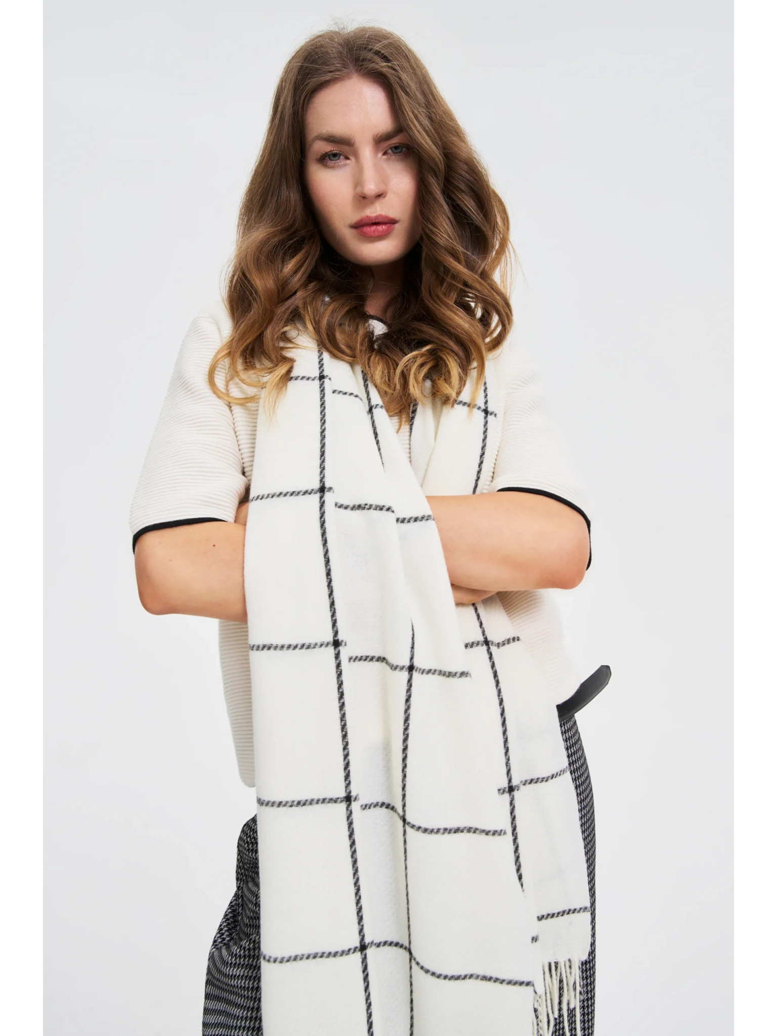 Šal s cofki kremast Moodo