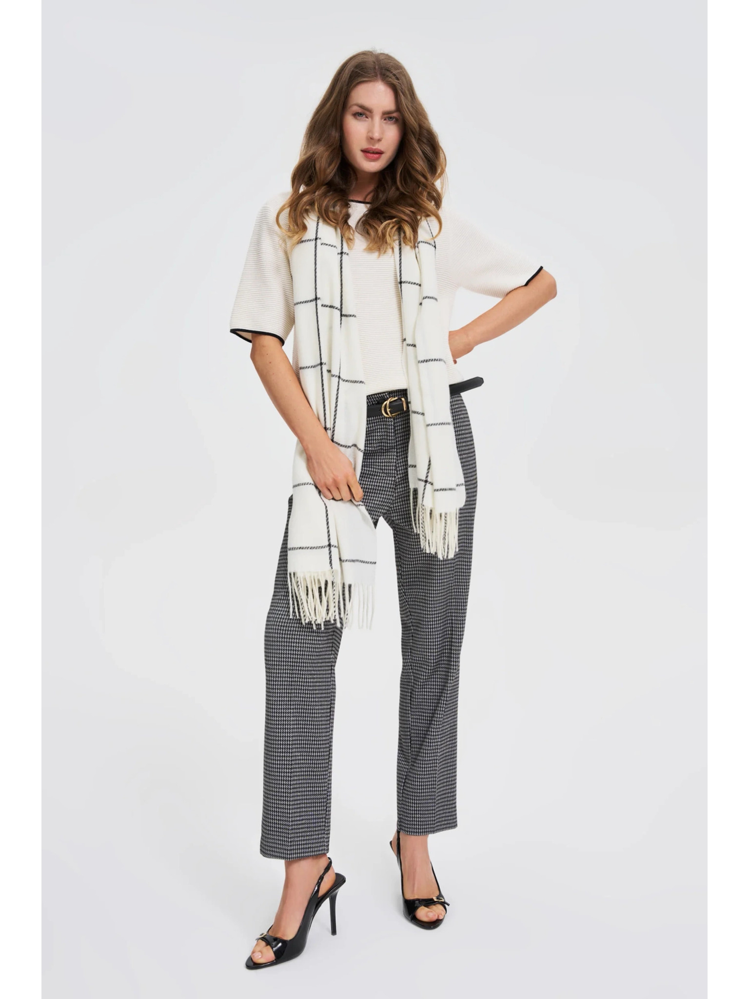 Vzorčast šal bež barve Moodo