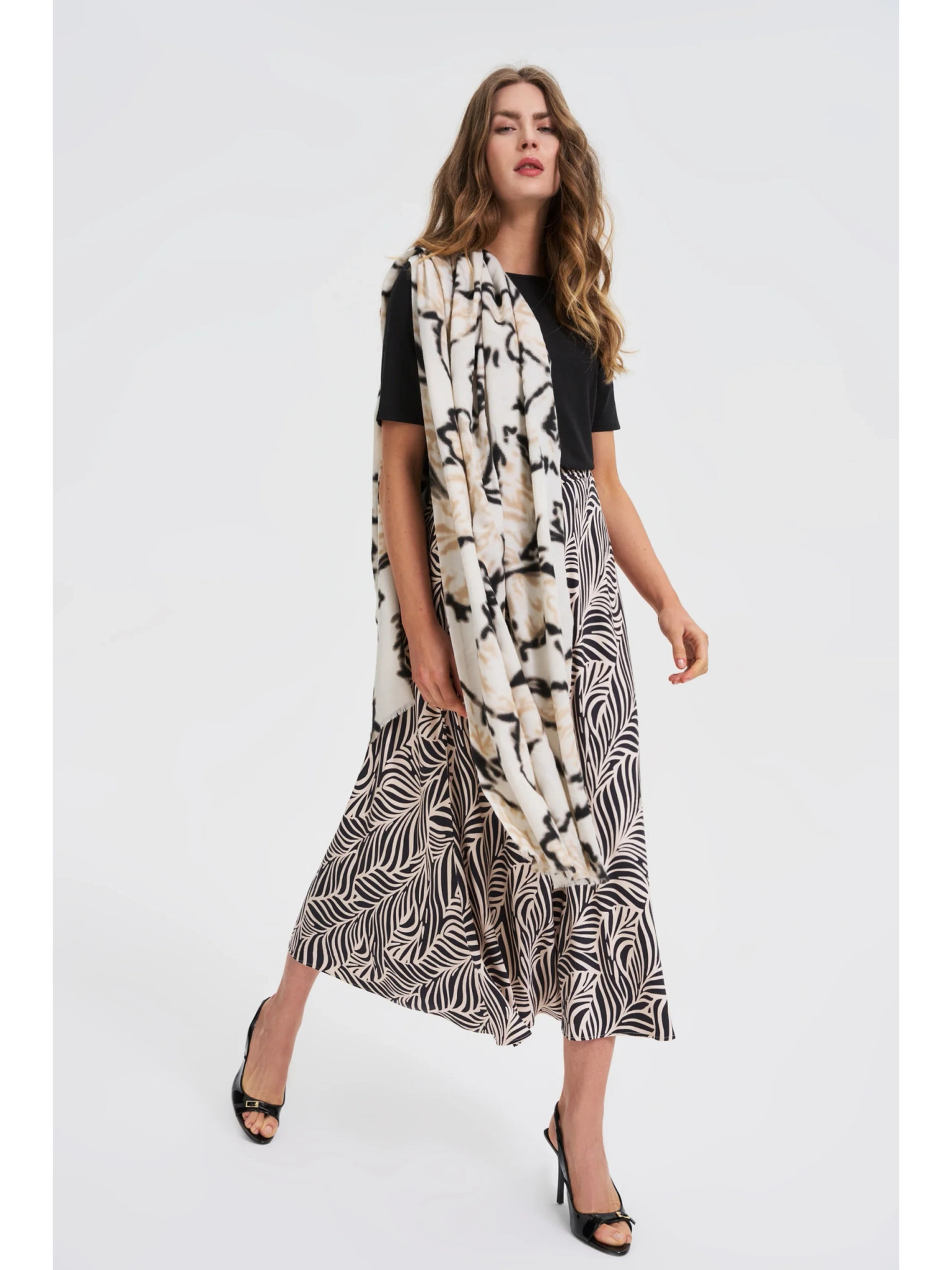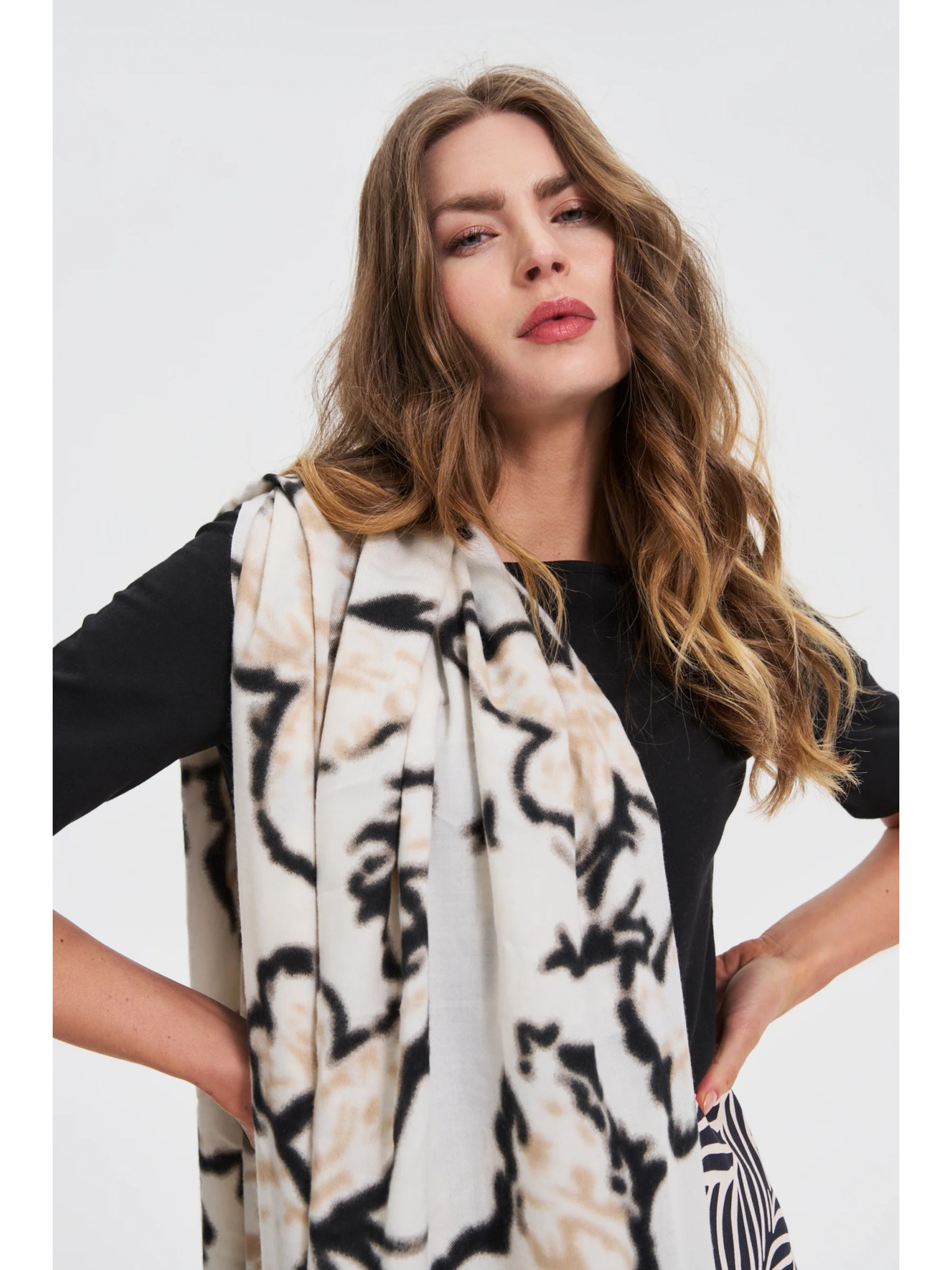 Vzorčast šal bež barve Moodo