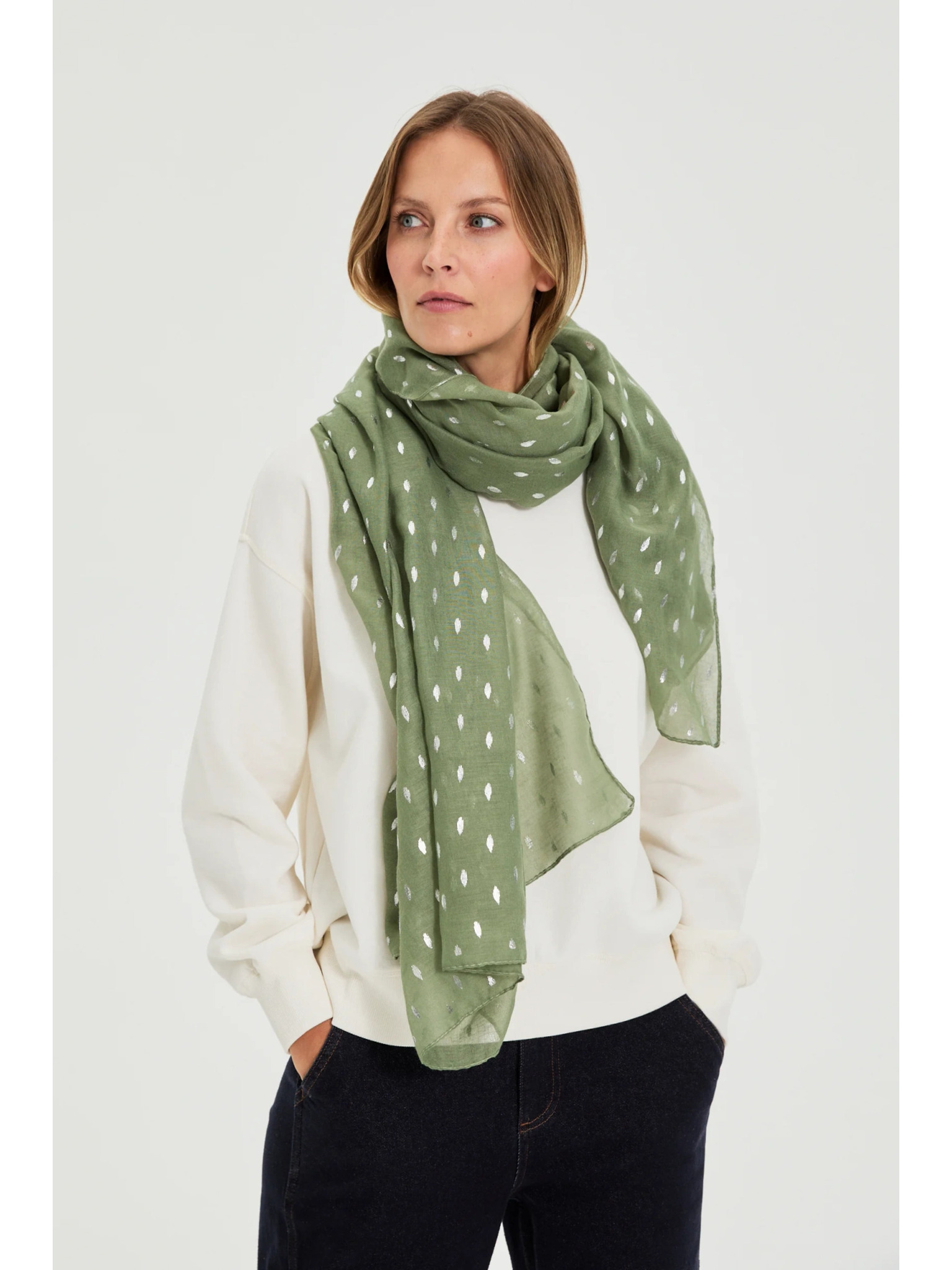 Vzorčast šal olivno zelen Moodo