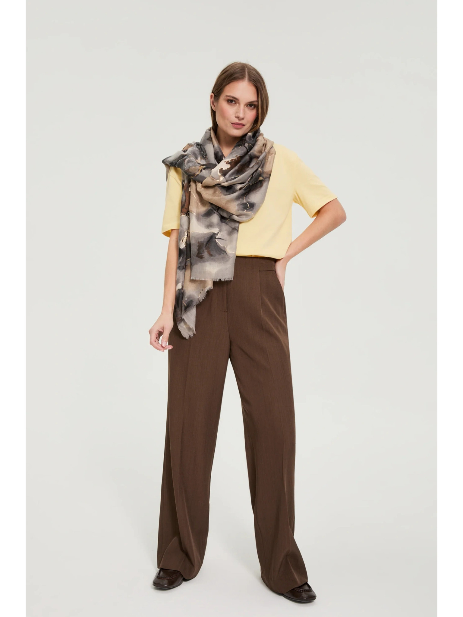 Rjav šal z metalnim vlaknom Moodo