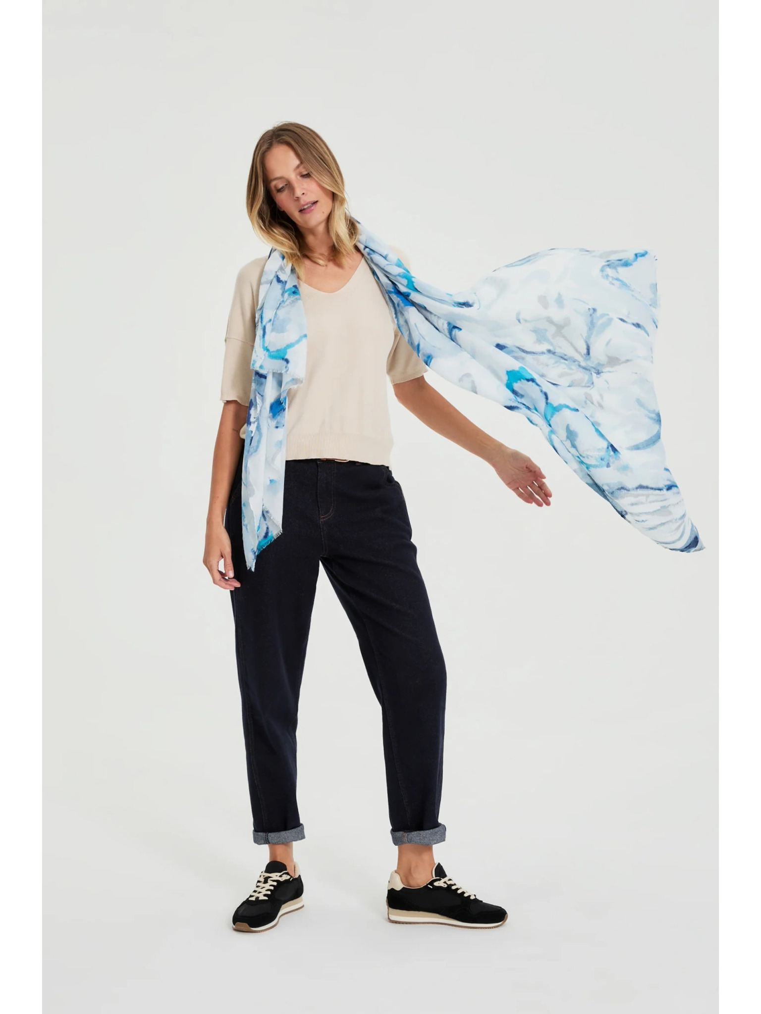 Belo-modri ženski cvetlični šal Moodo
