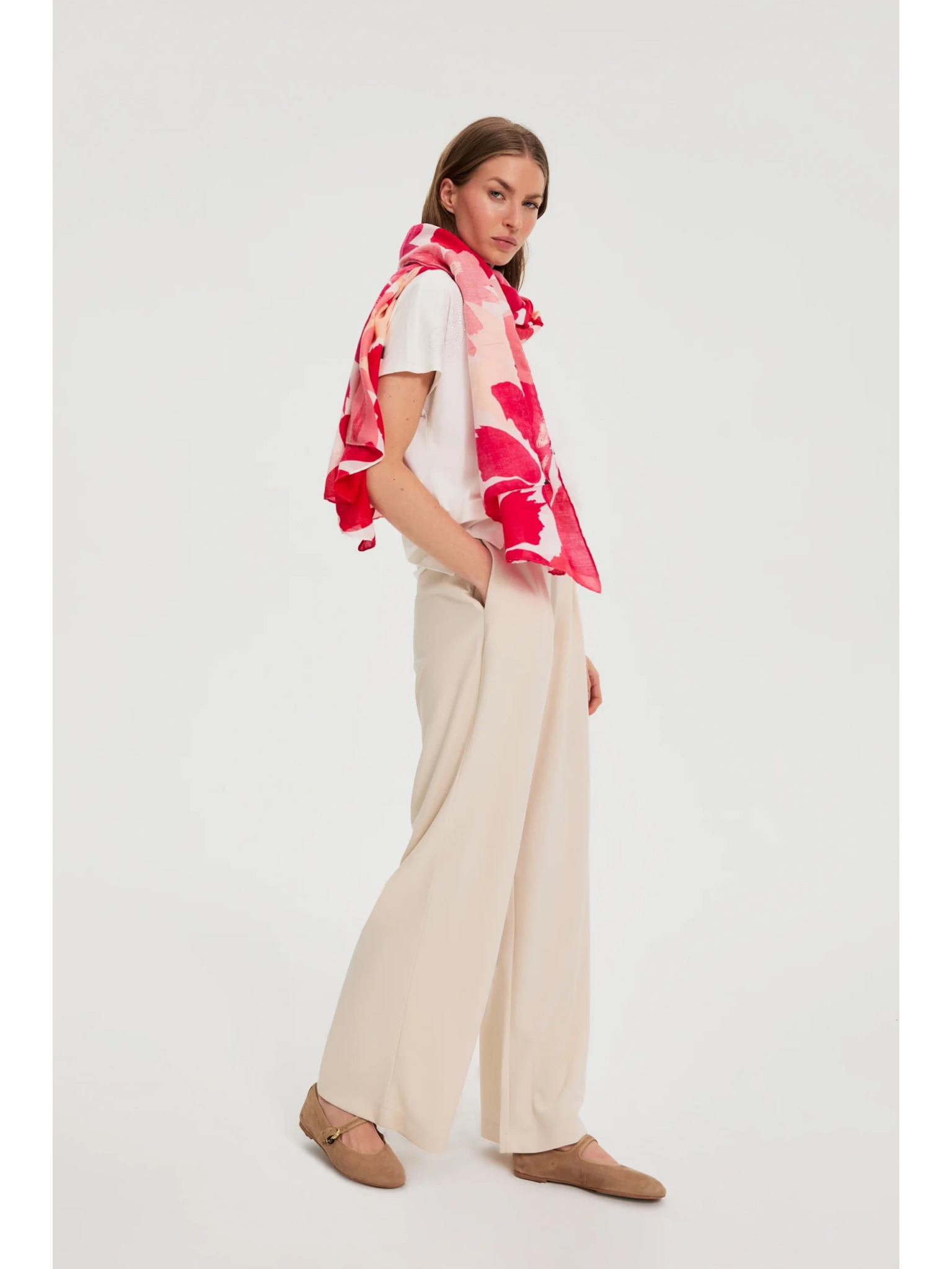 Gladek šal peščene barve Moodo