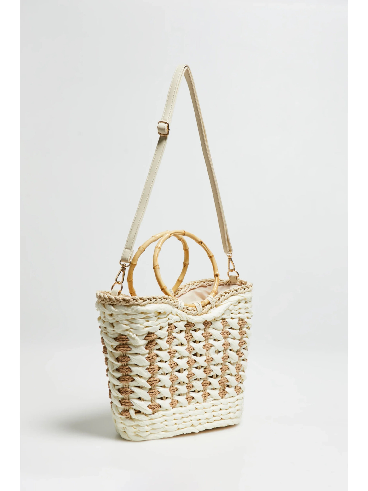 Pletena torba z okroglo ročico bež Moodo