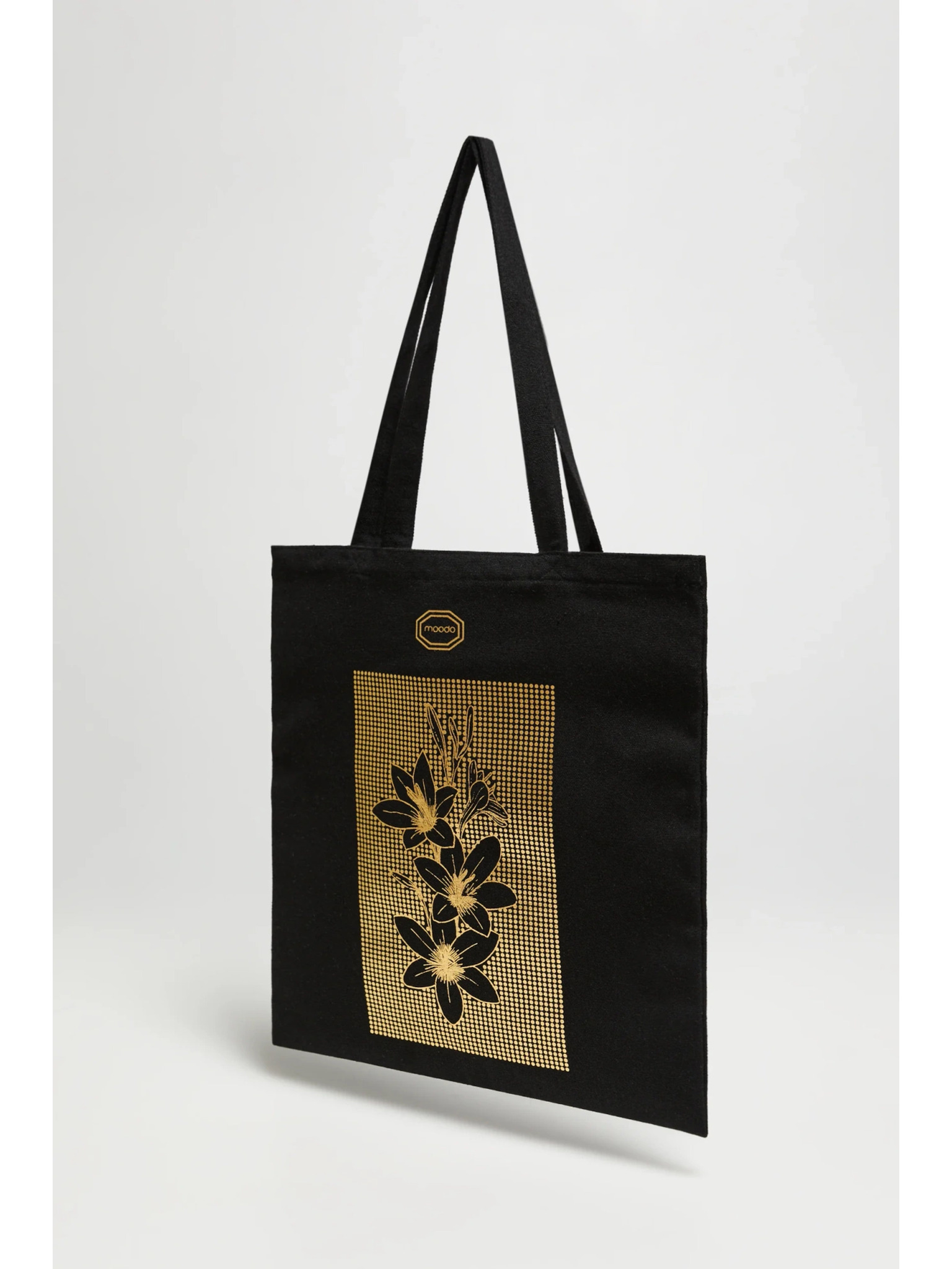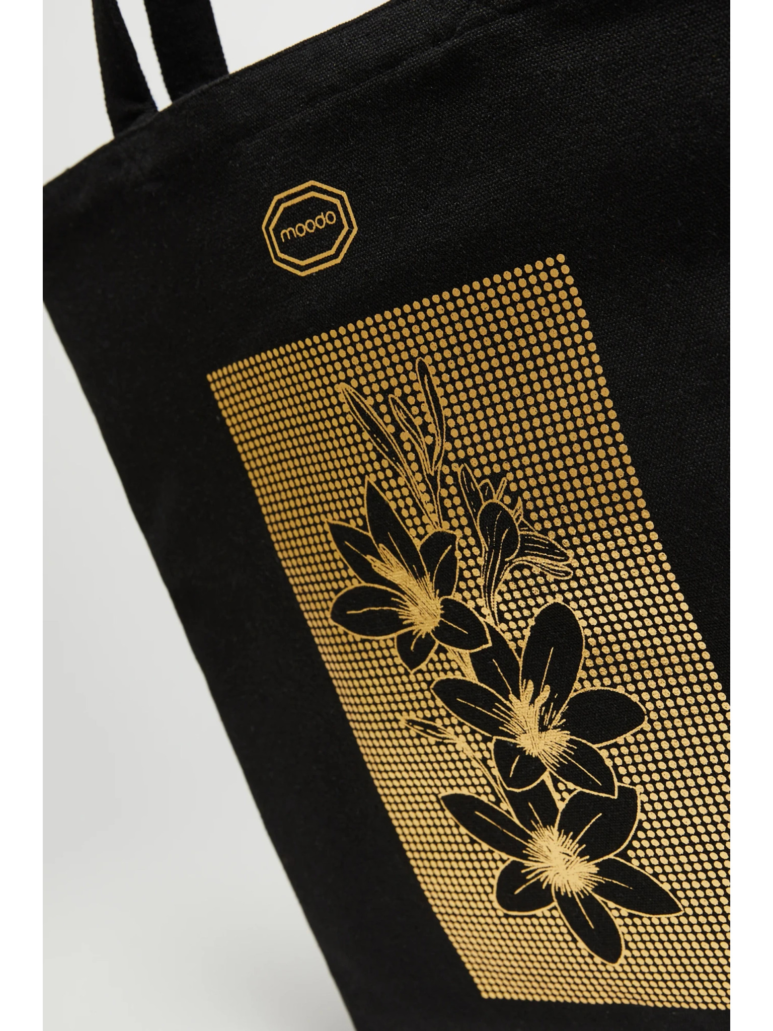 Črna nakupovalna torba s potiskom Moodo