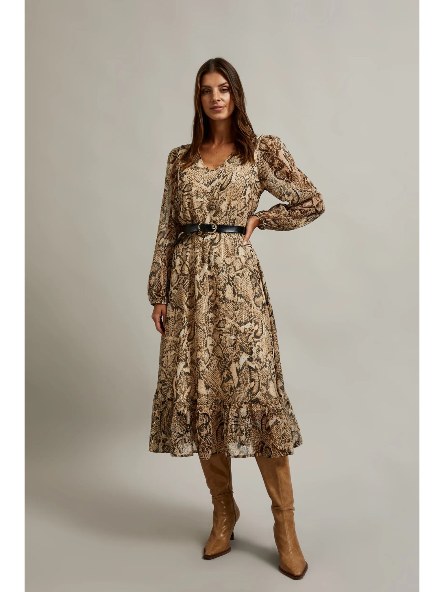Bež obleke z pasom