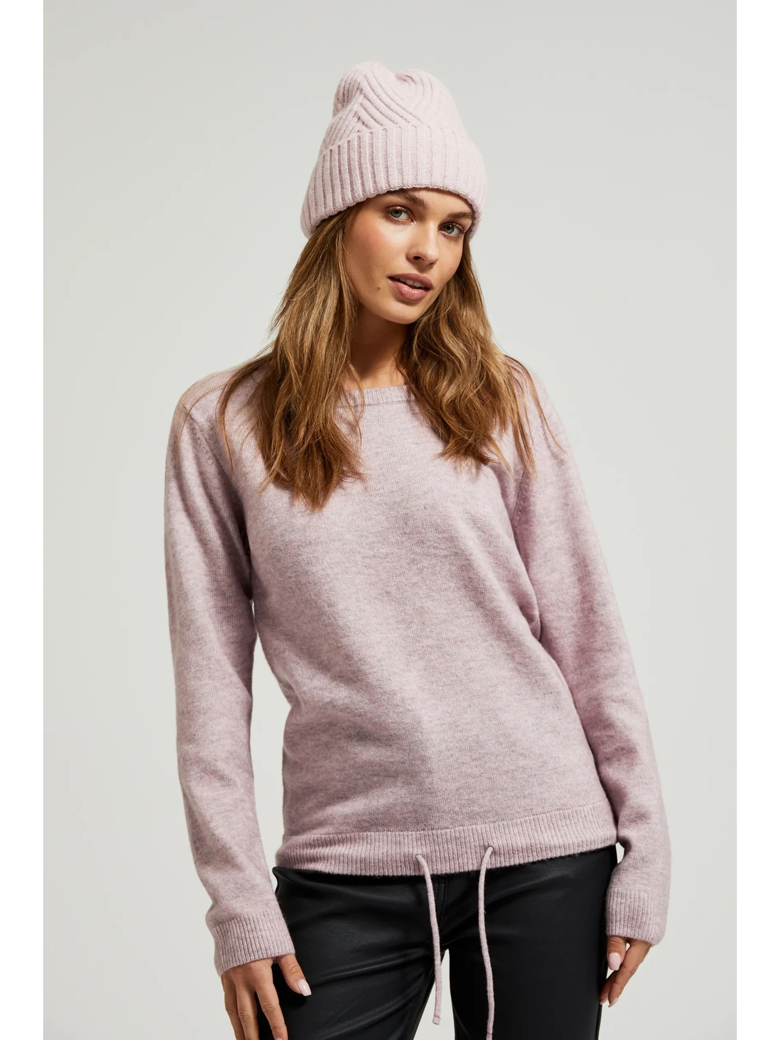 Pletena kapa pudrasto rožnate barve Moodo