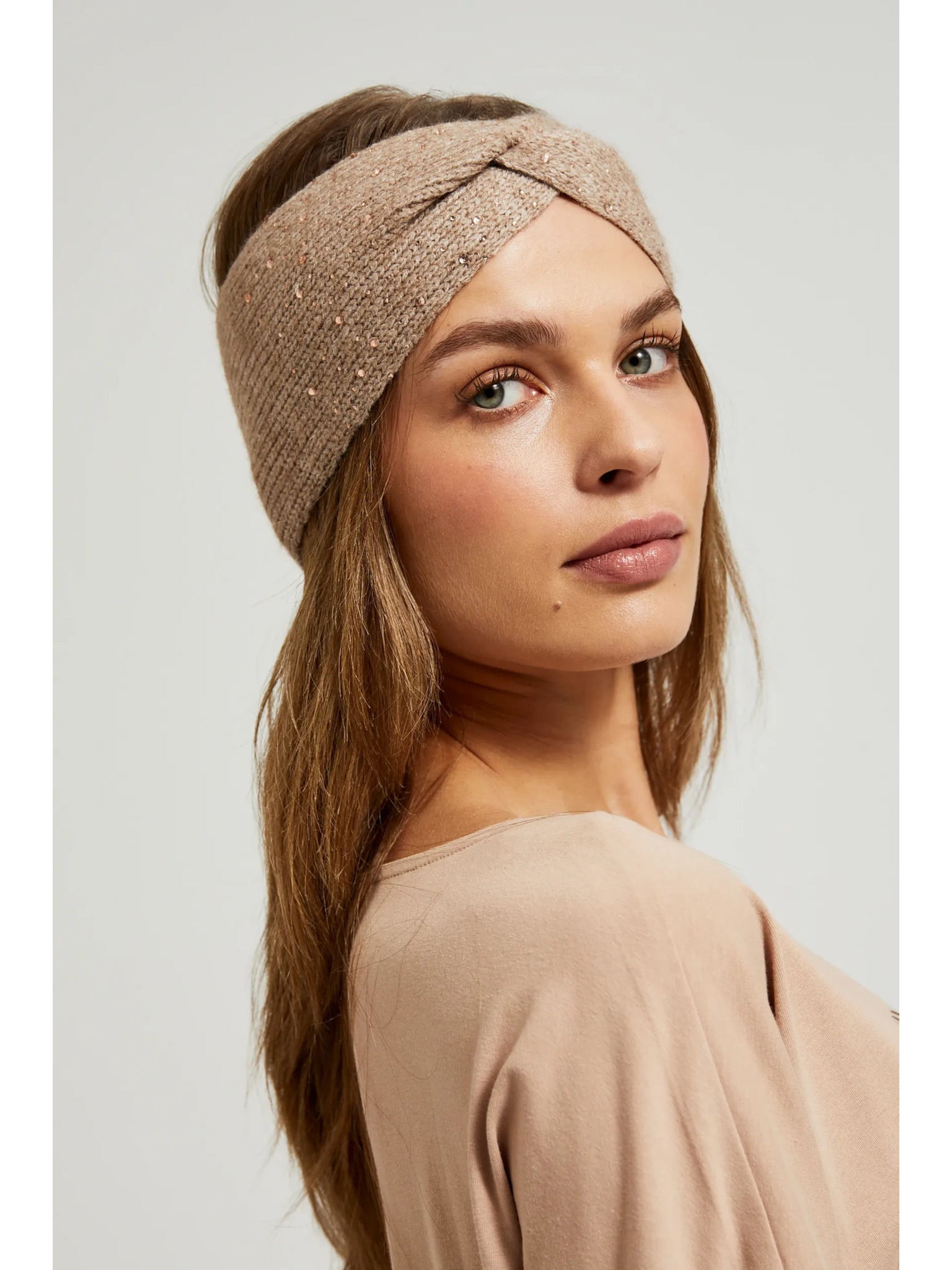 Topla naglavna trakica pesek barve Moodo