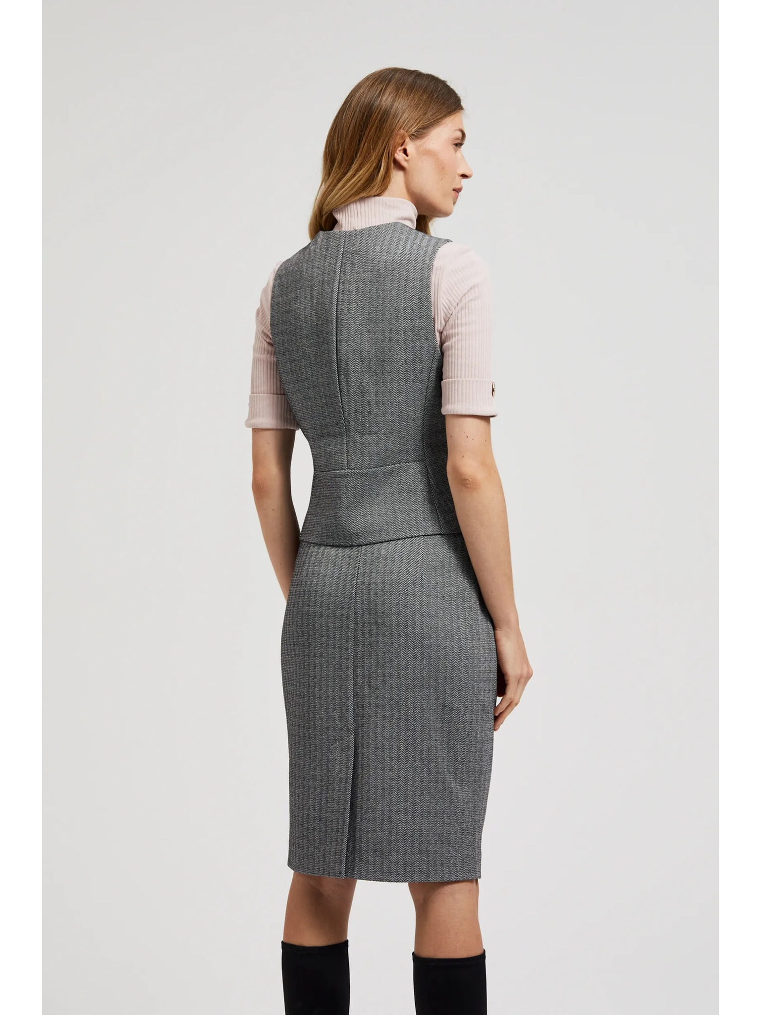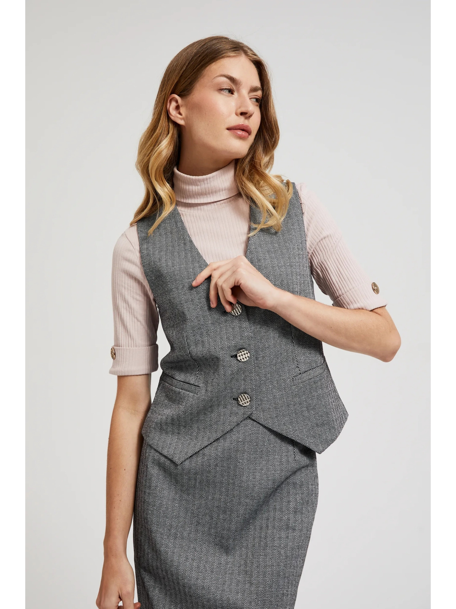 Elegantni telovnik siv s srebrnimi gumbi Moodo