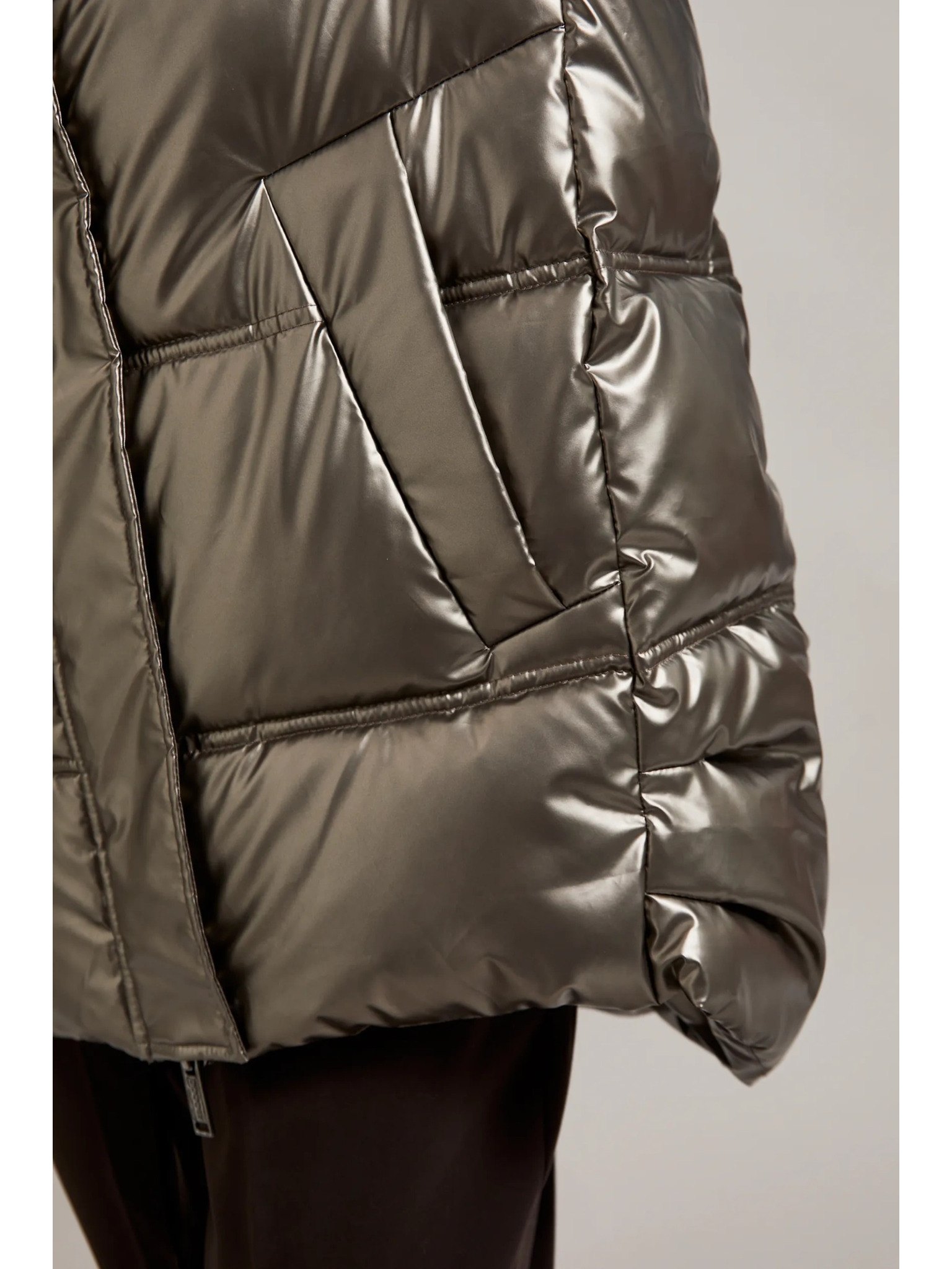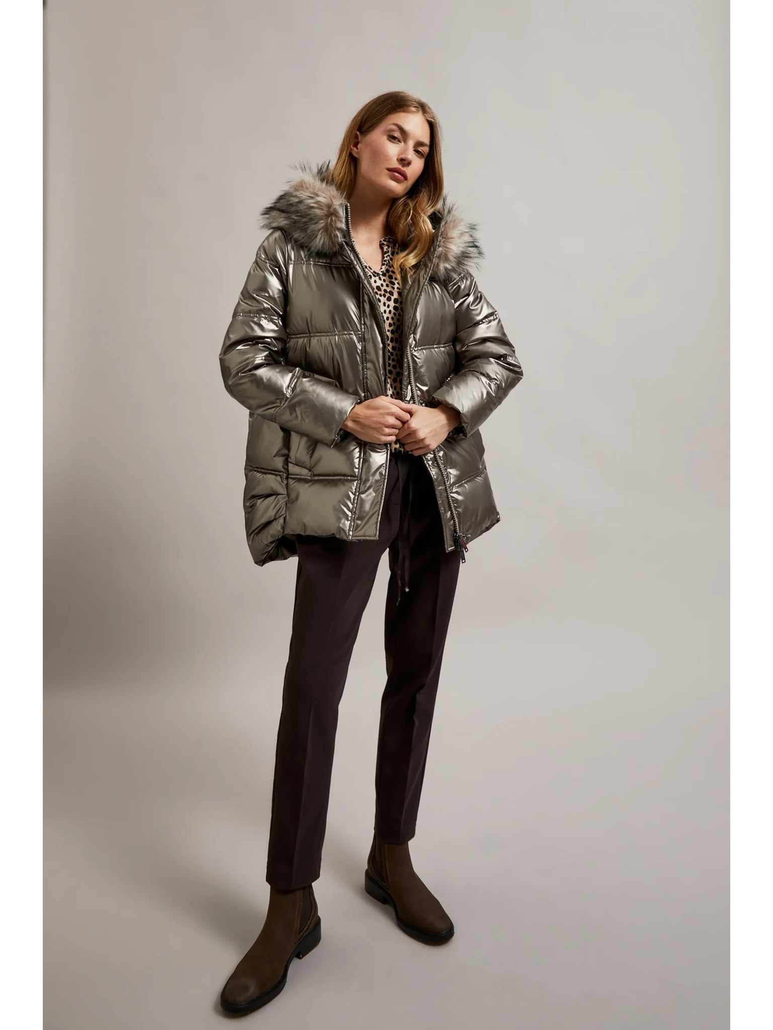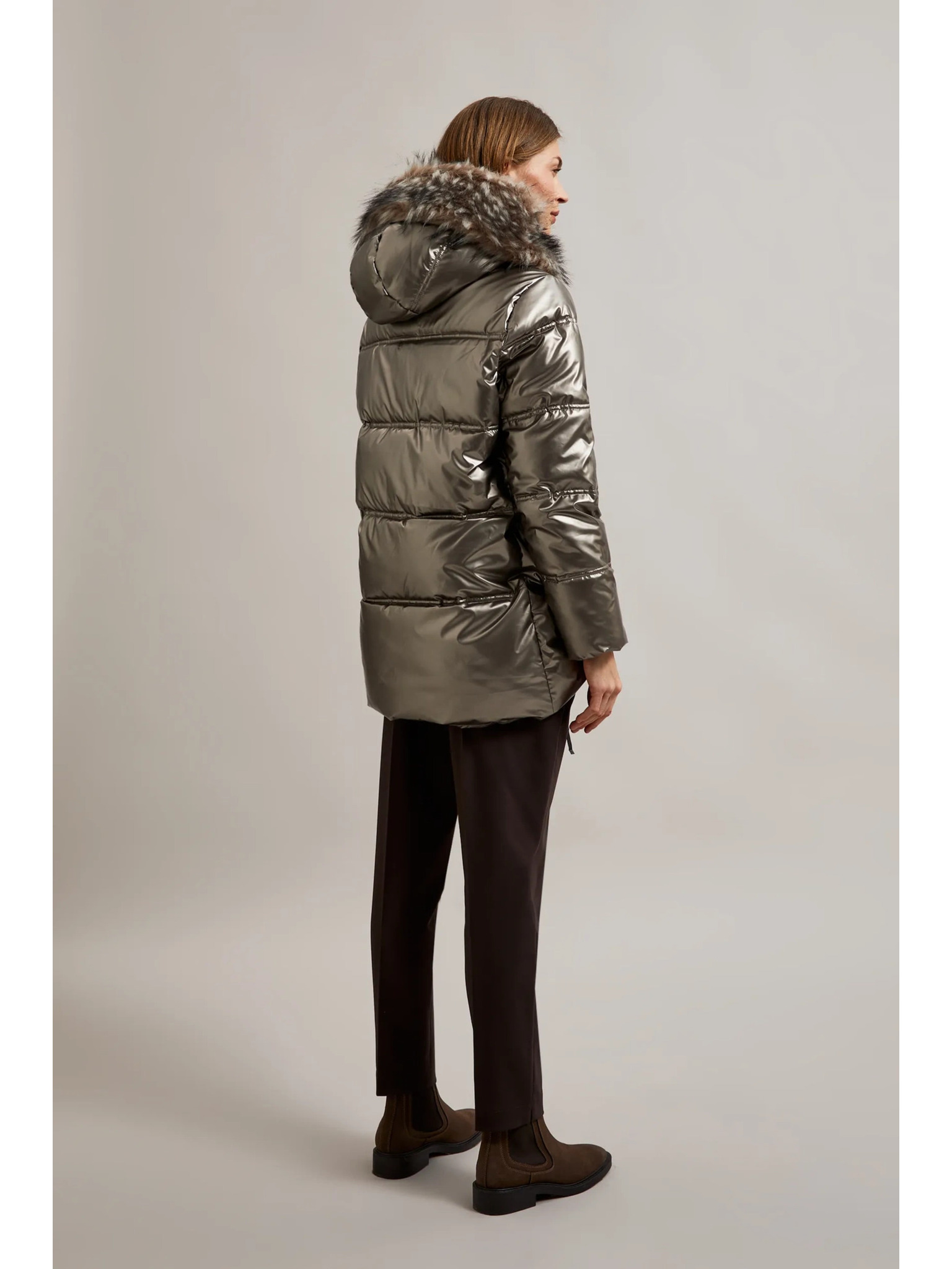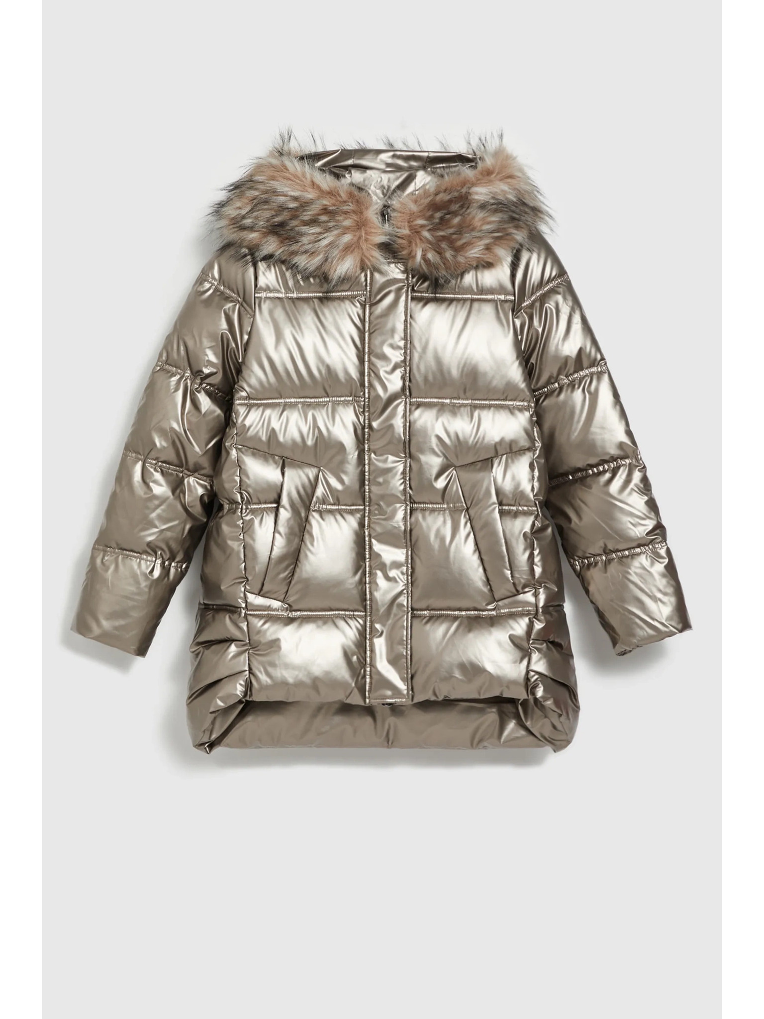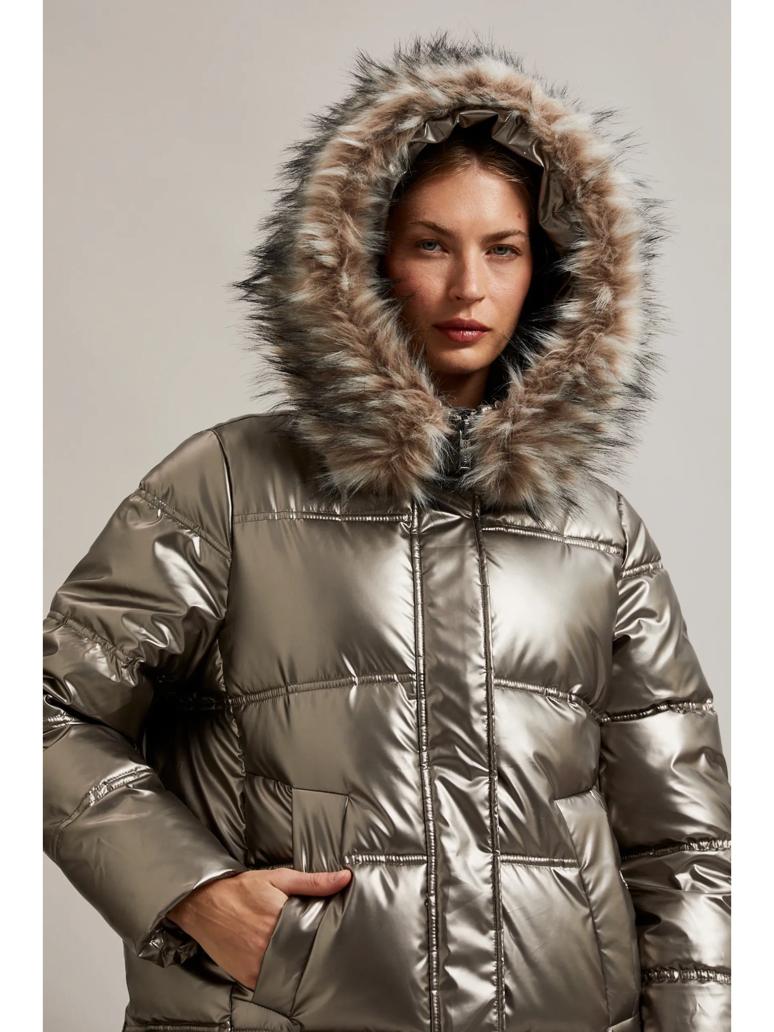 Metalična jakna s krzneno kapuco bež Moodo