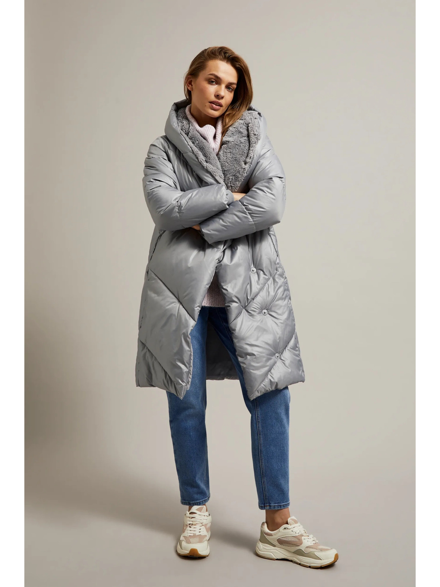 Siva ženska prešita podaljšana jakna ZOOT.lab Patty