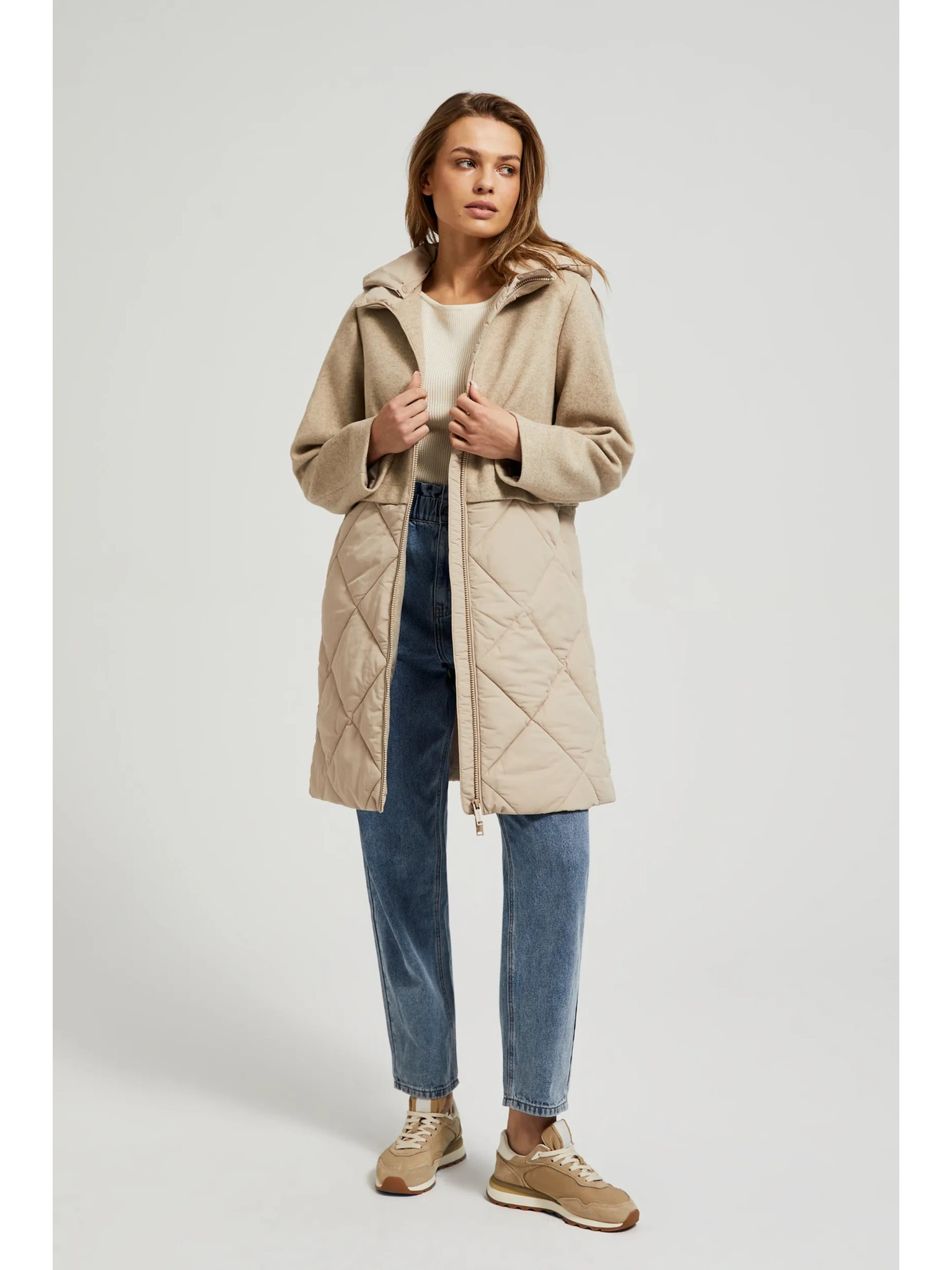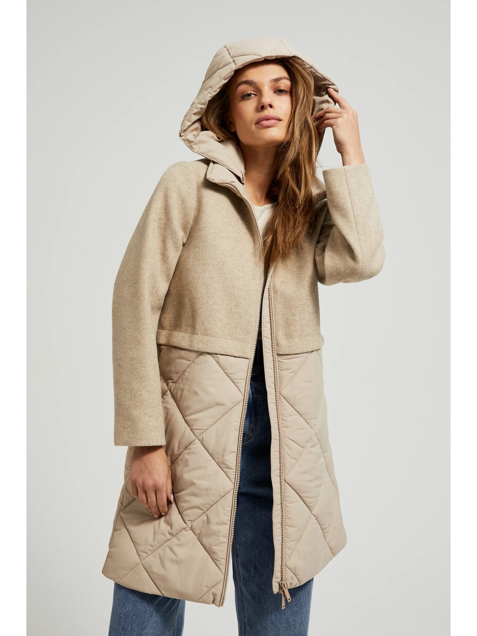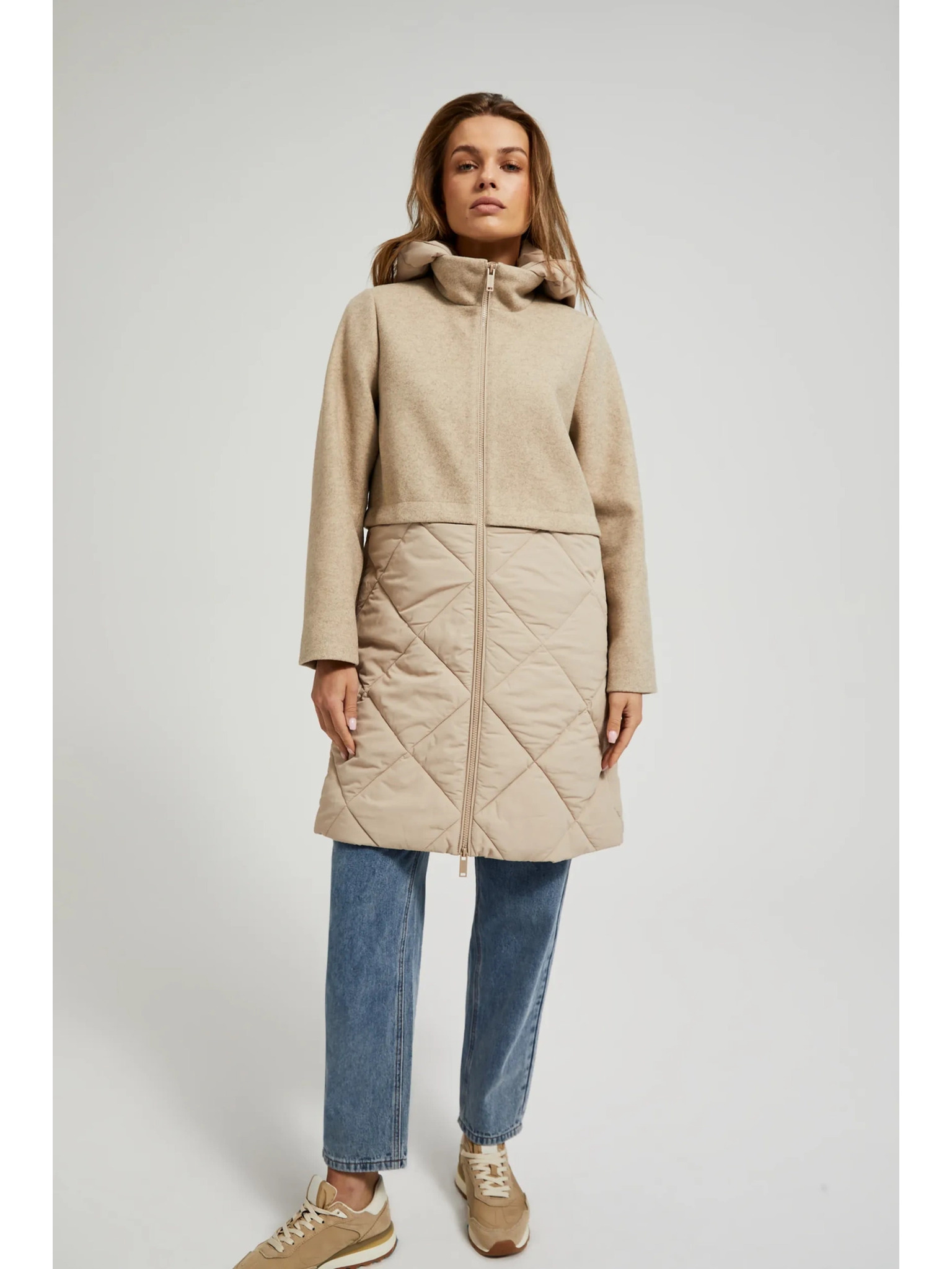 Jakna z odstranljivim kapuco bež Moodo