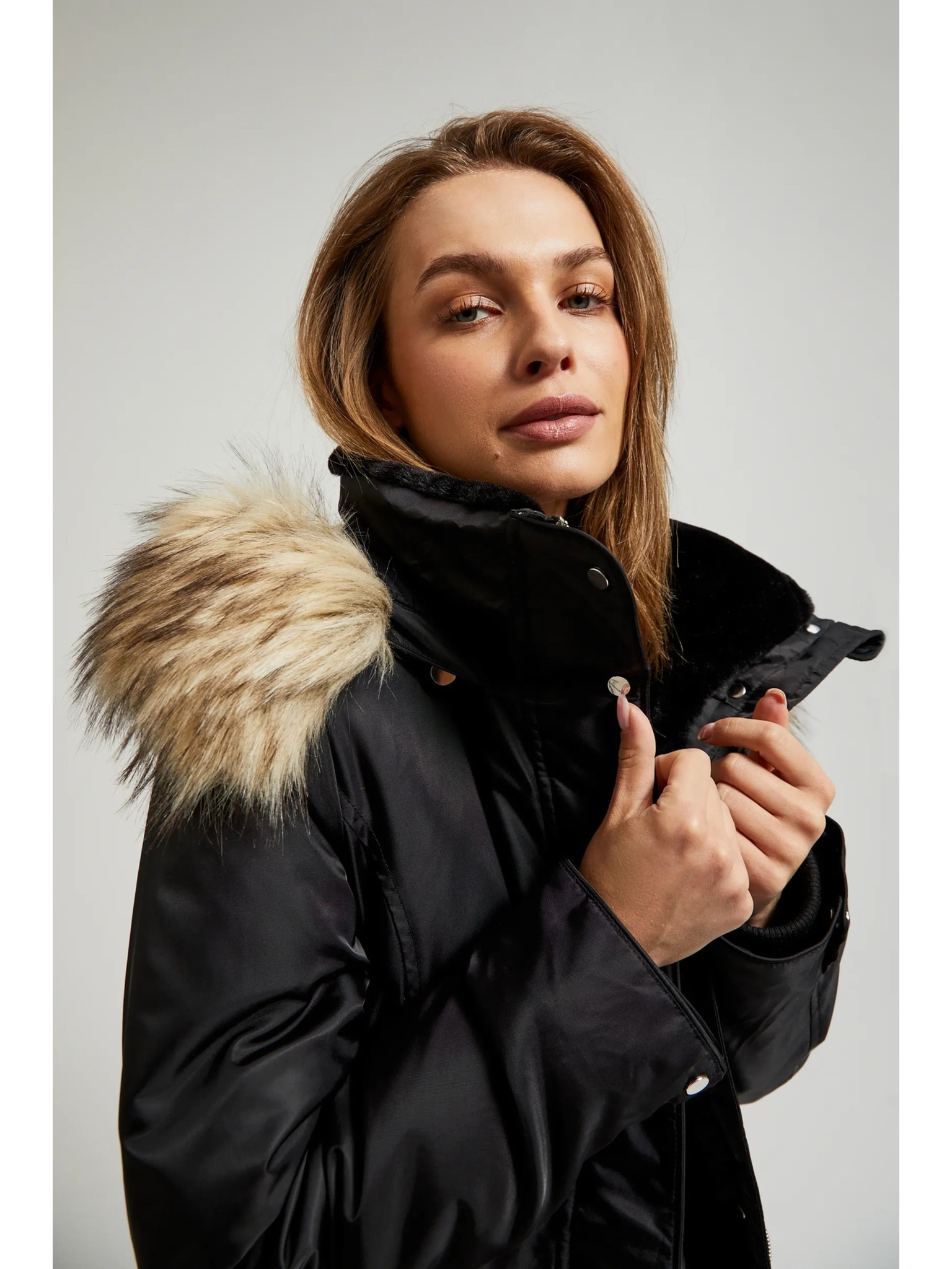 Črn damski plašč iz volnene mešanice ORSAY