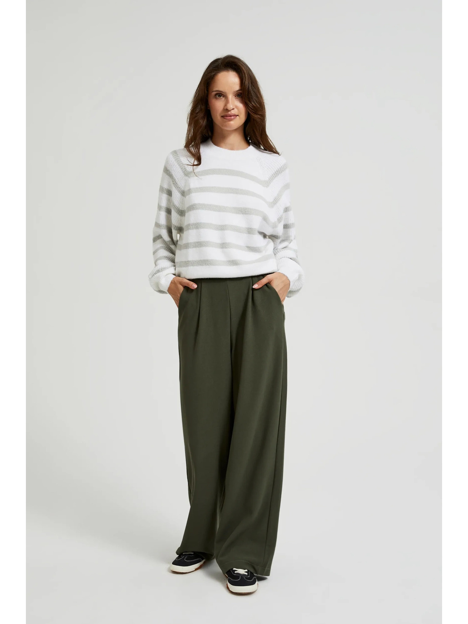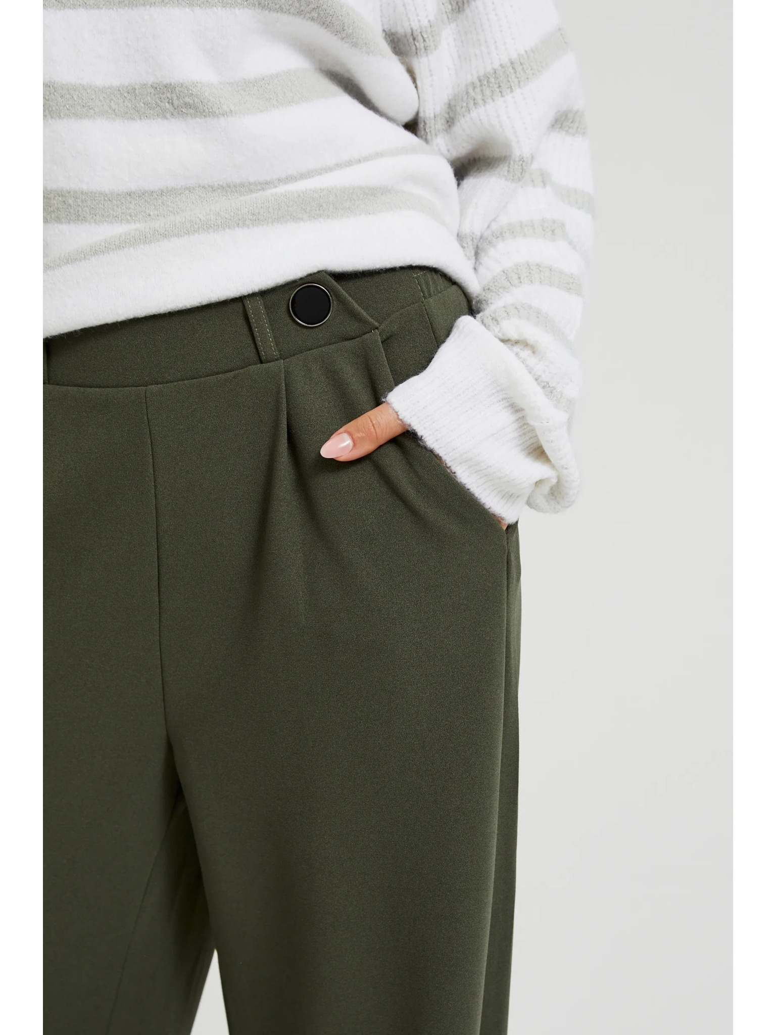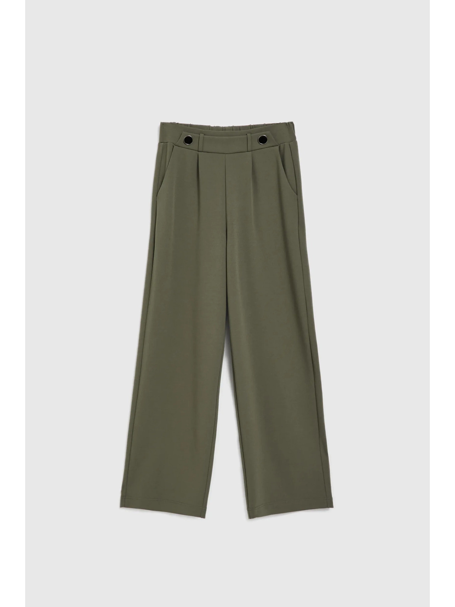 Olivne hlače s širokim hlačnicami in gumbi Moodo