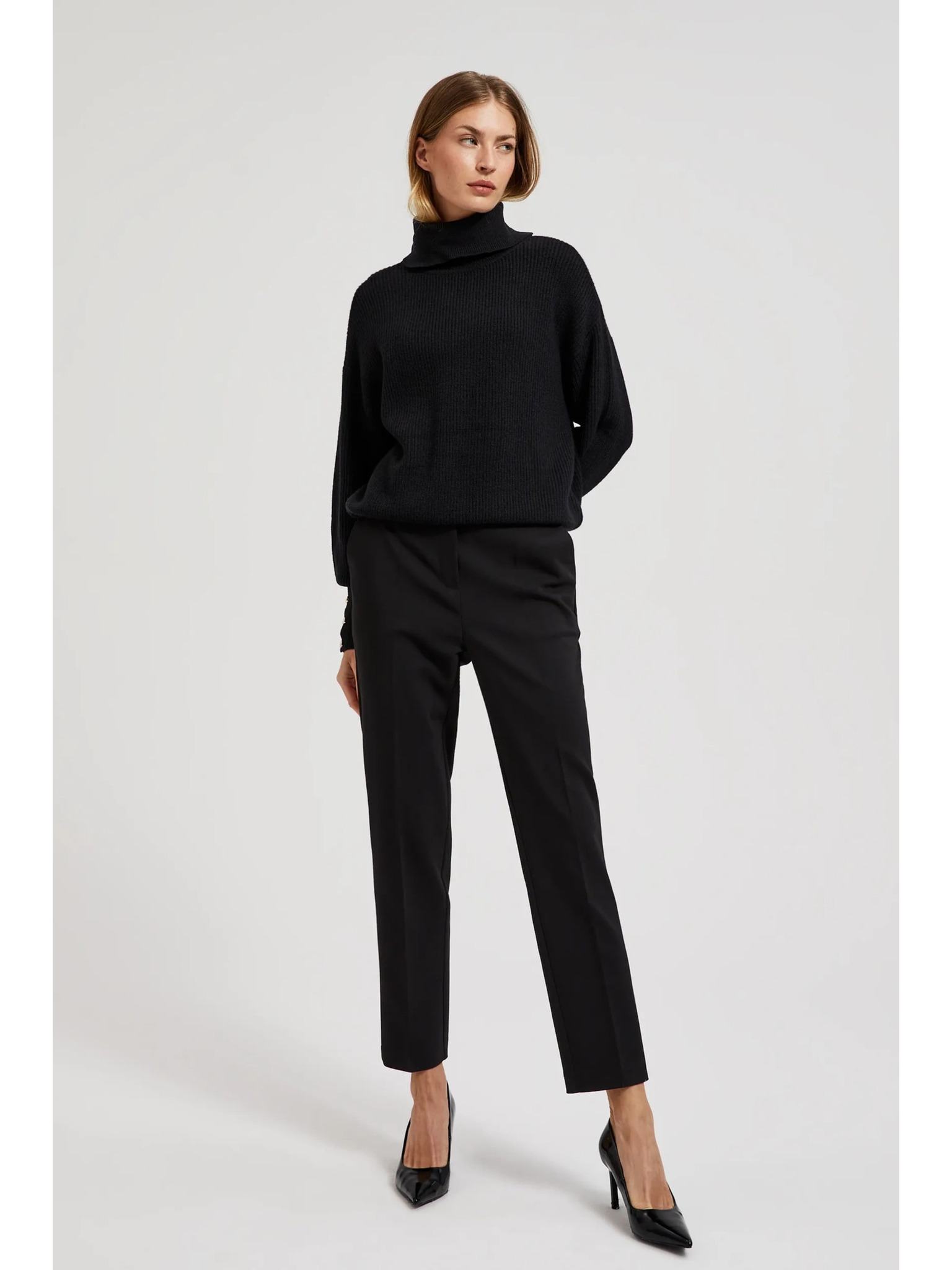 Elegantne črne hlače z gubo Moodo
