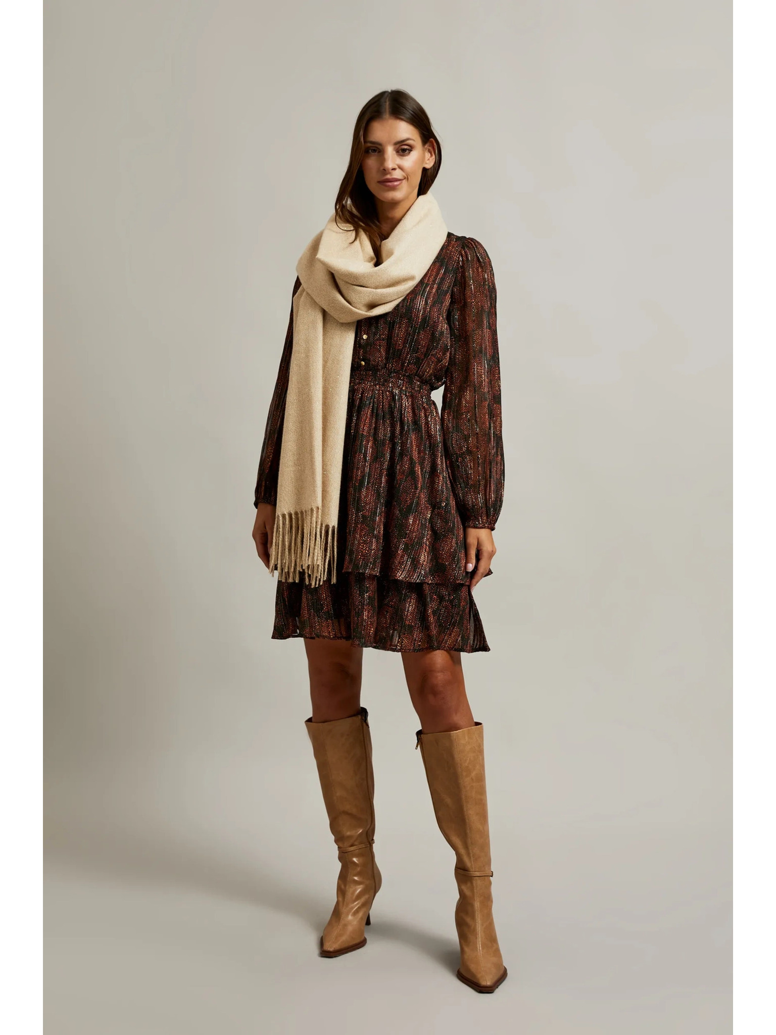 Rjav šal z živalskim vzorcem Moodo