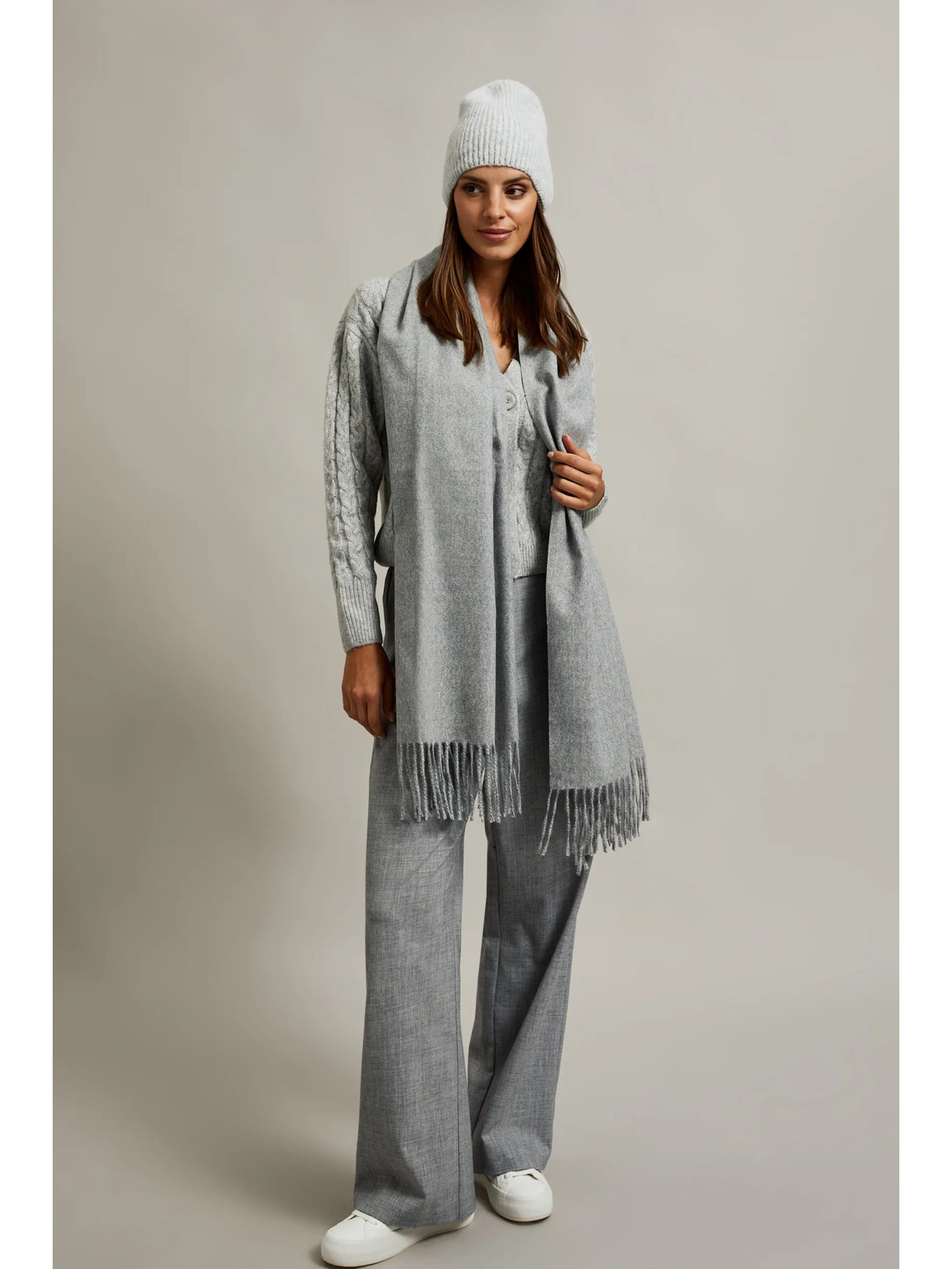 Gladka bež šala z resicami Moodo