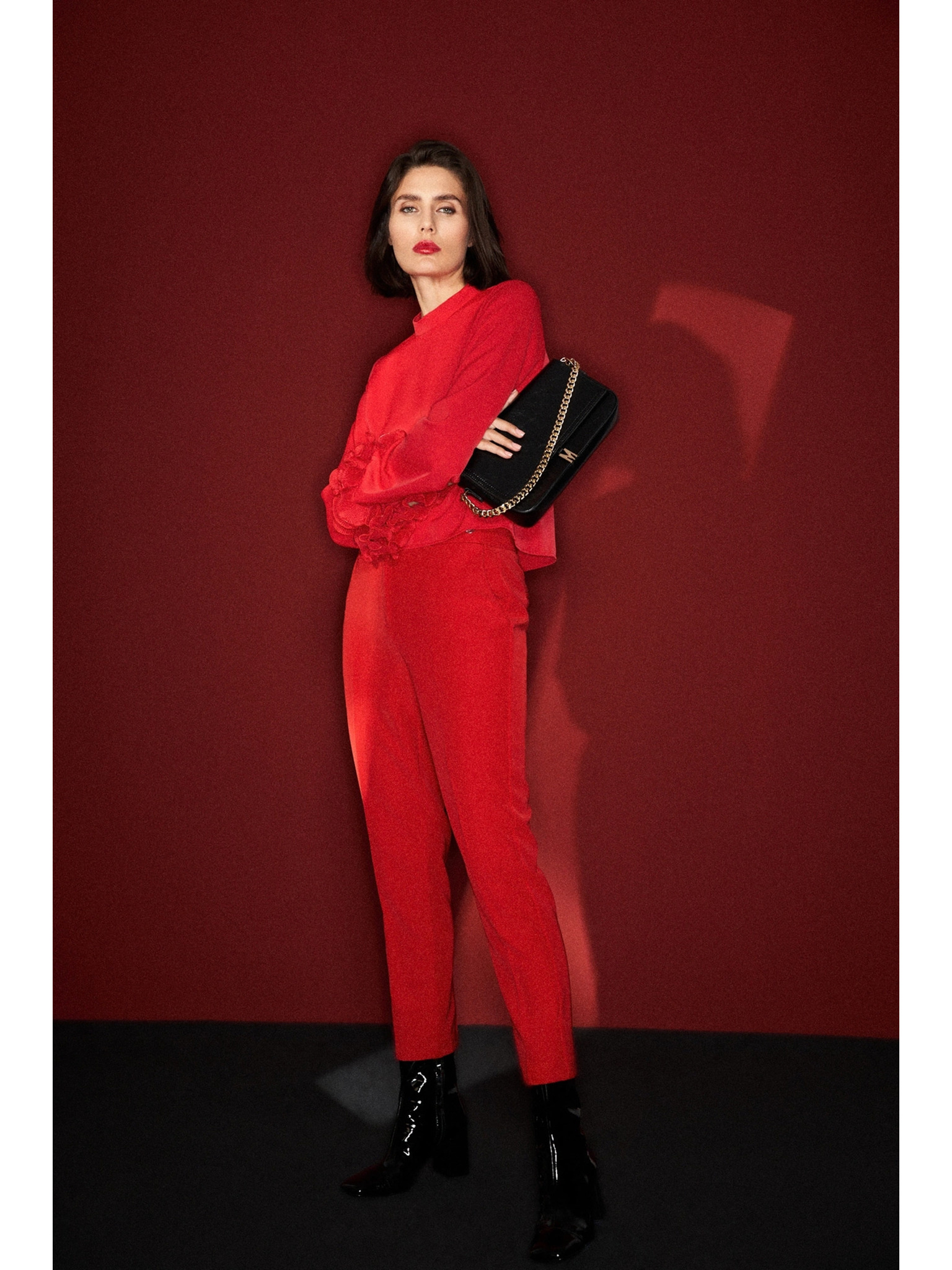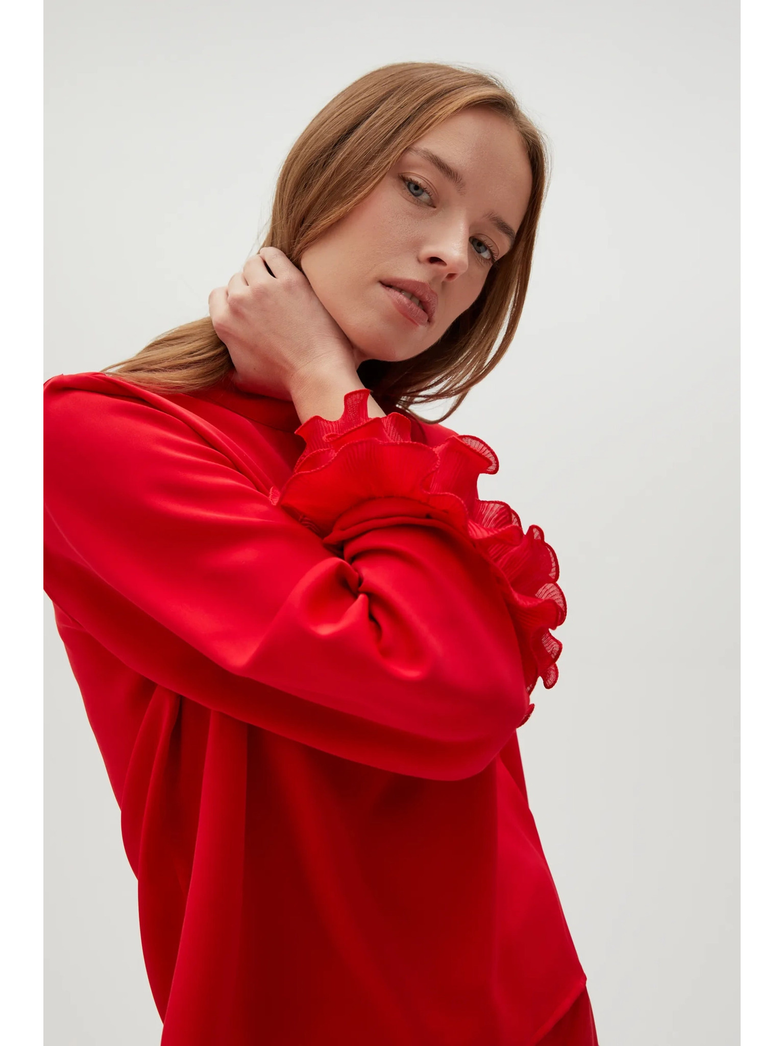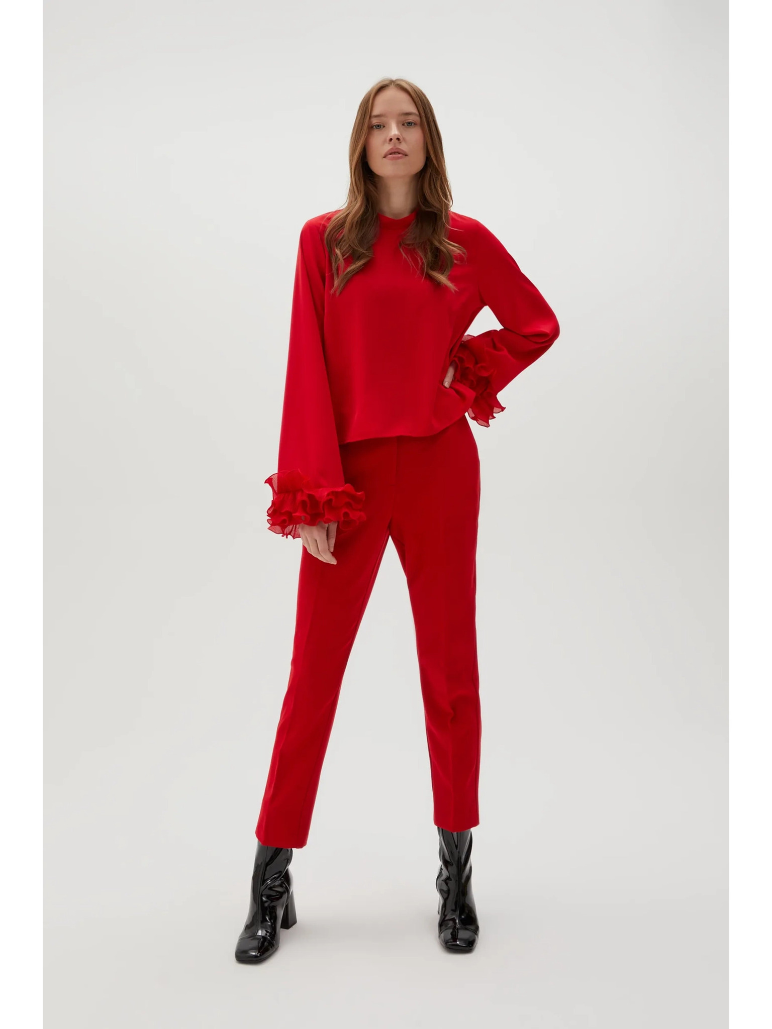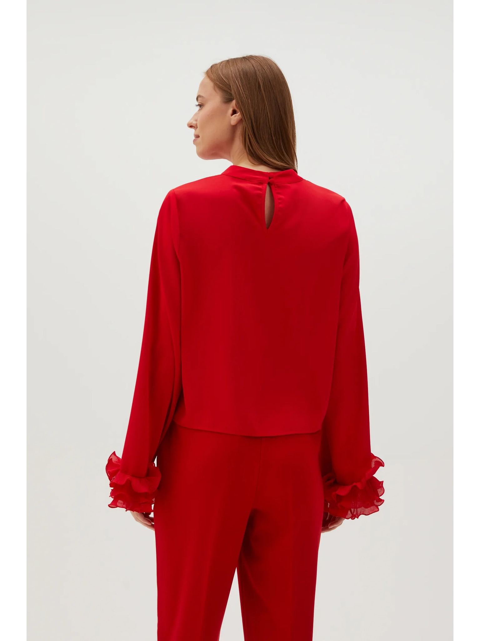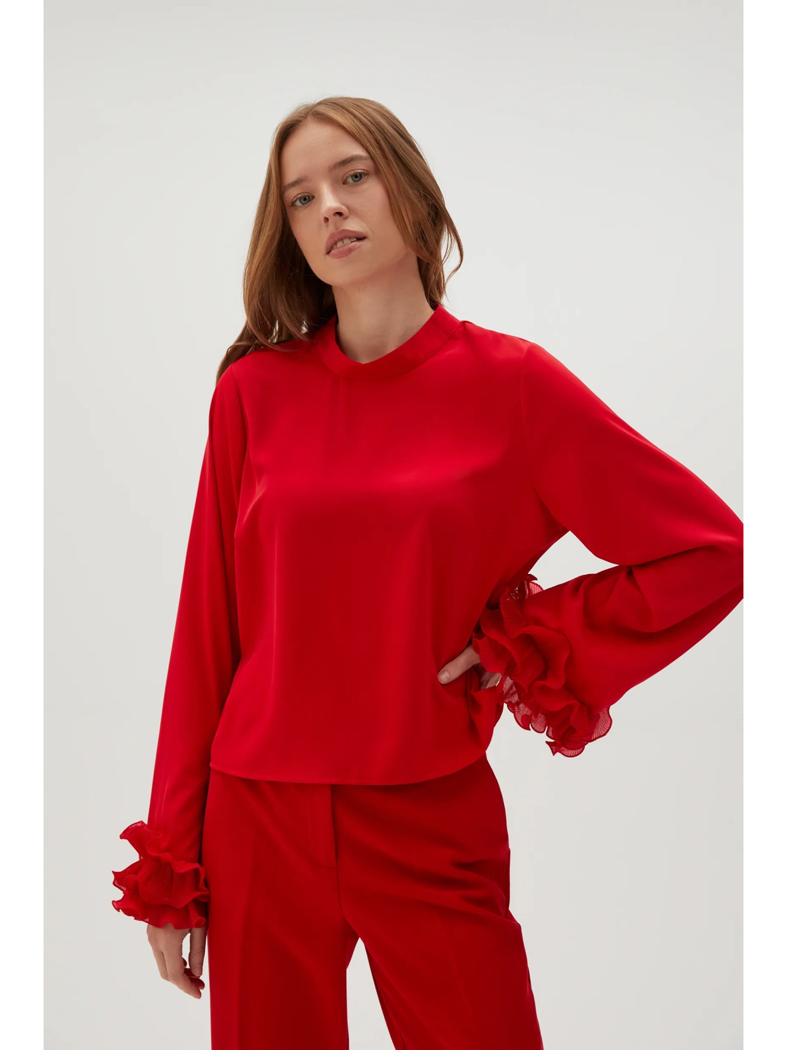 Rdeča bluza s širokimi rokavi