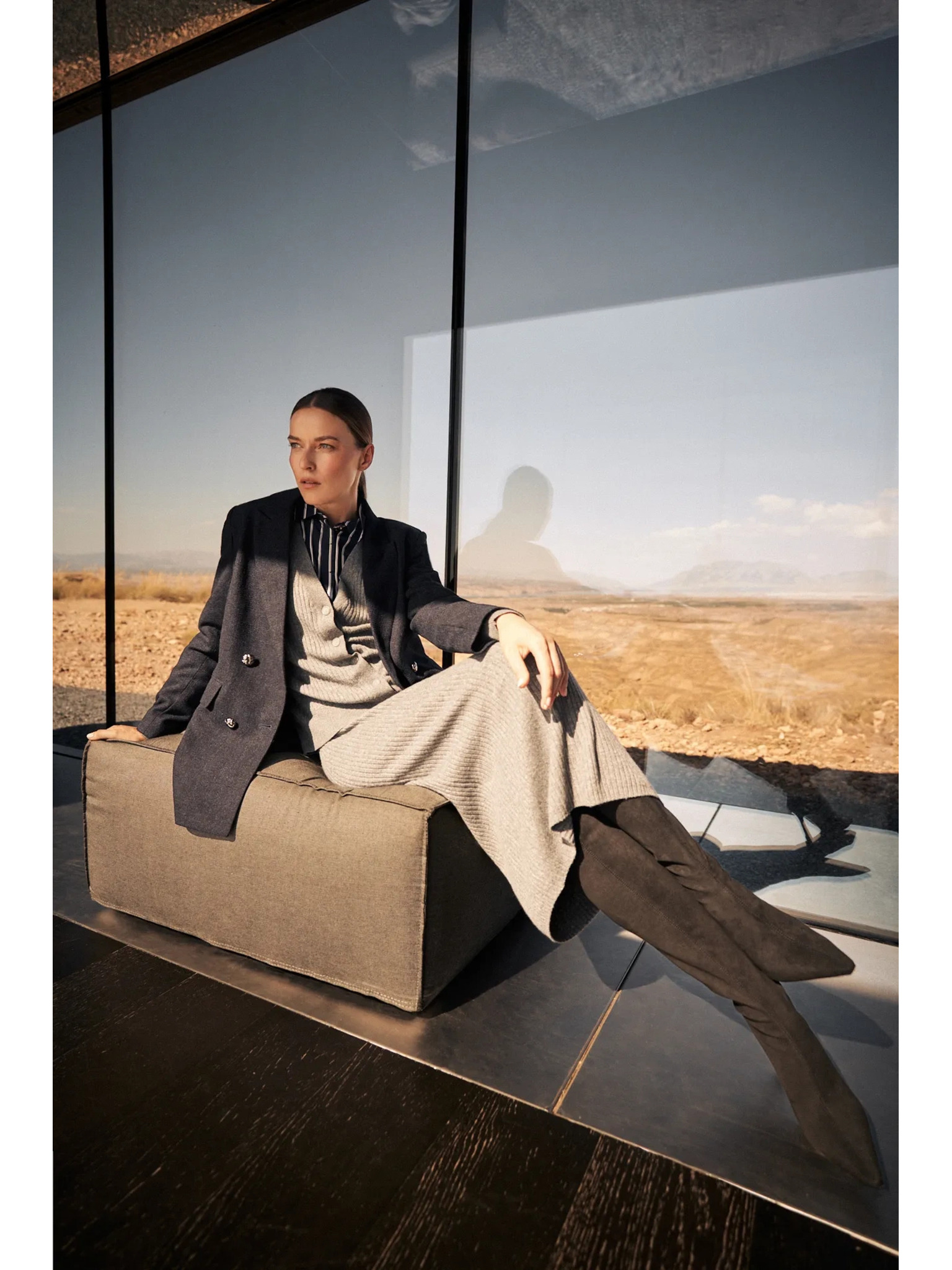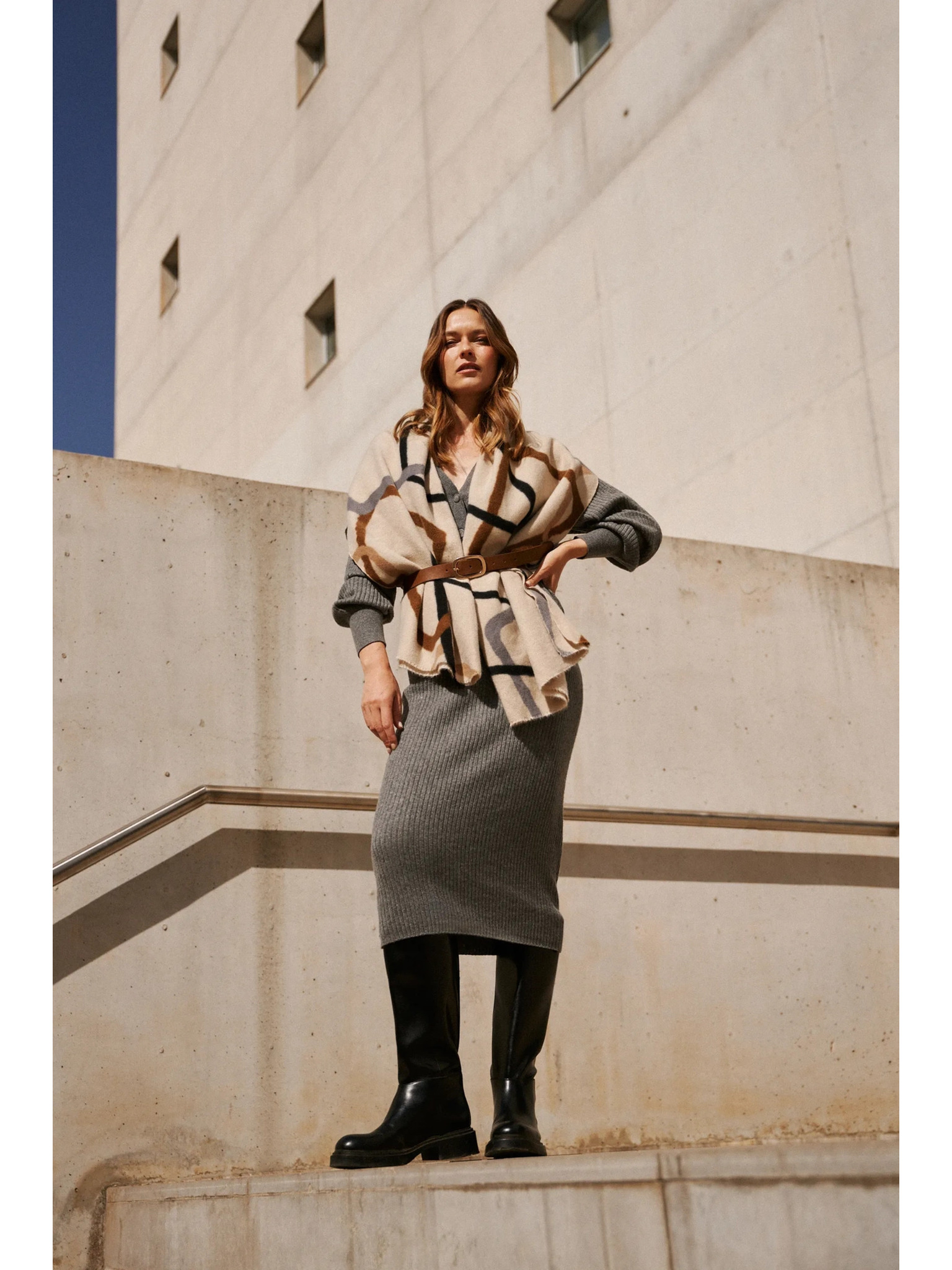 Temno siva ženska karkirana krila z rokavi METROOPOLIS Fatima
