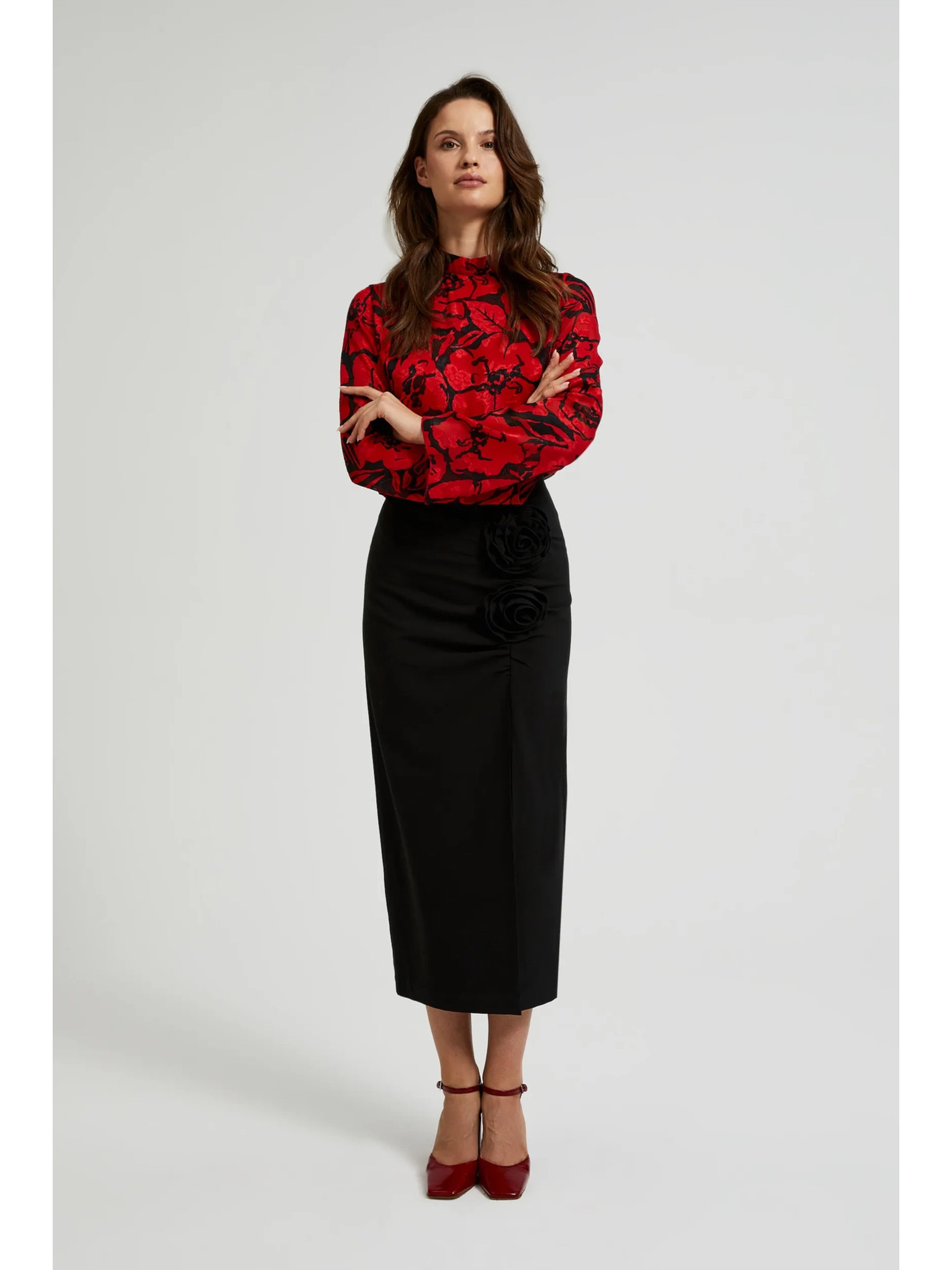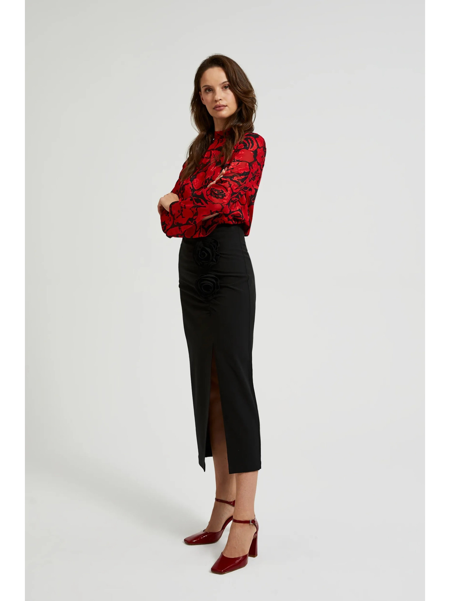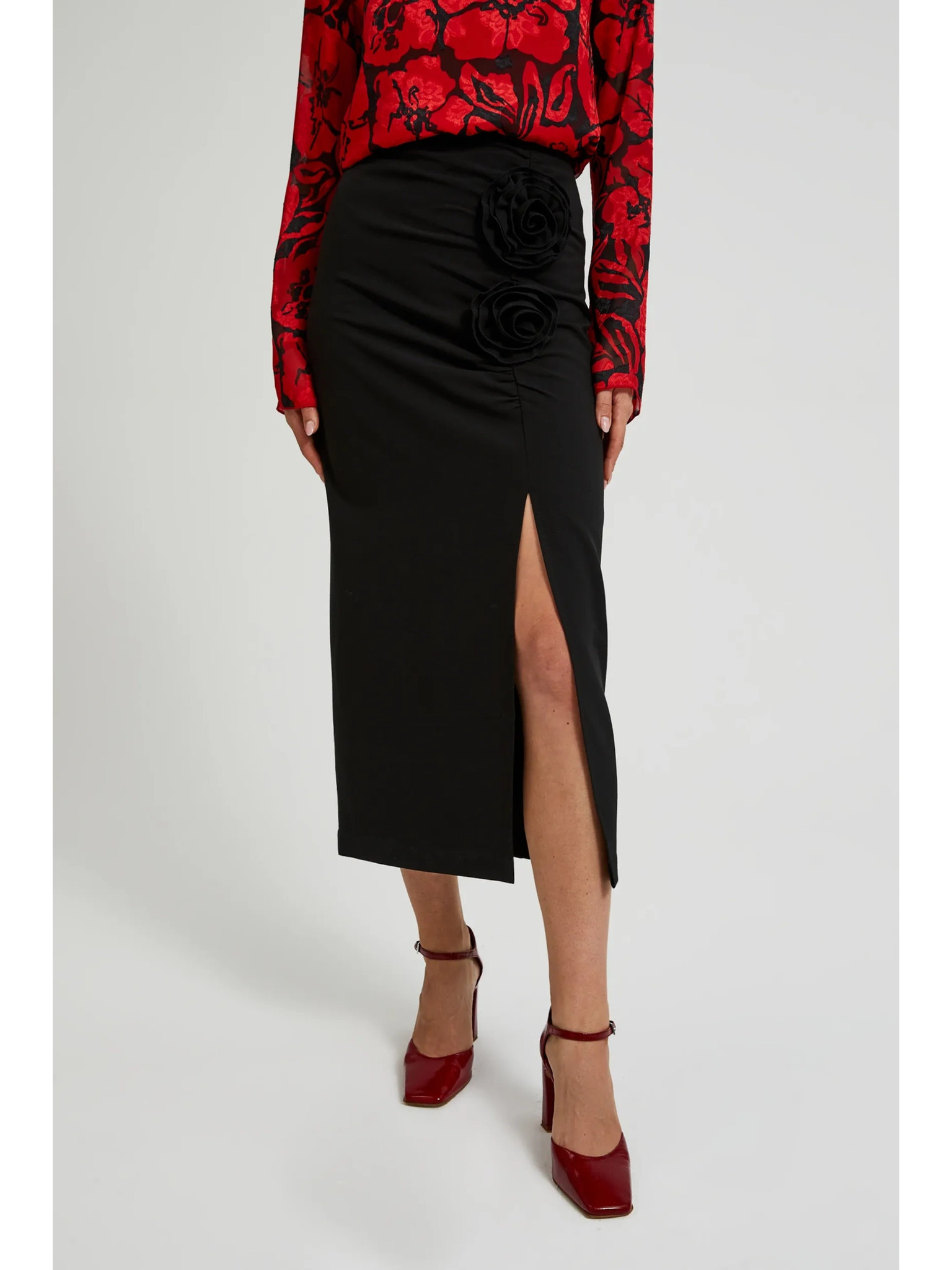 Črna krila z okrasno rožo in razporkom Moodo