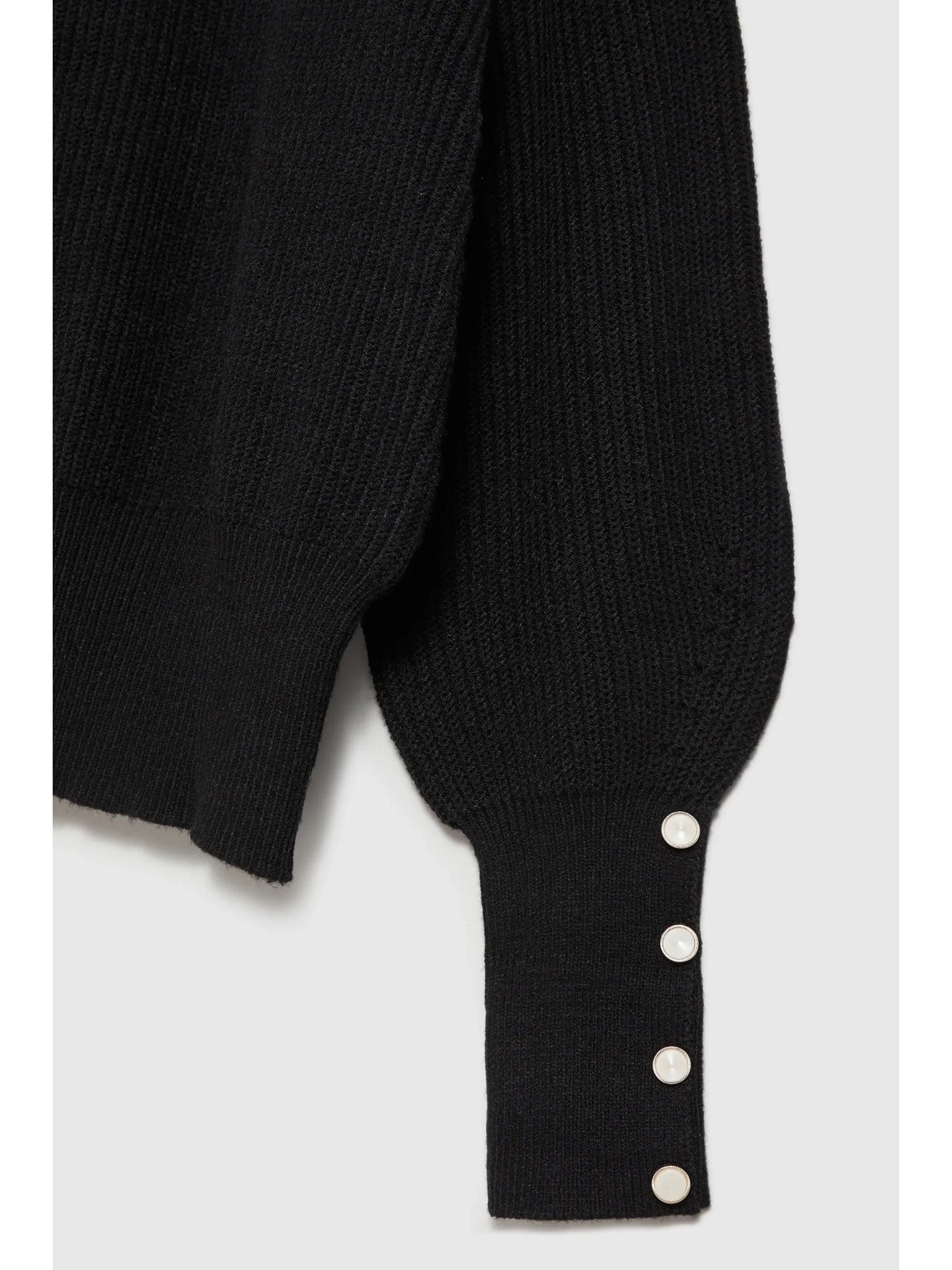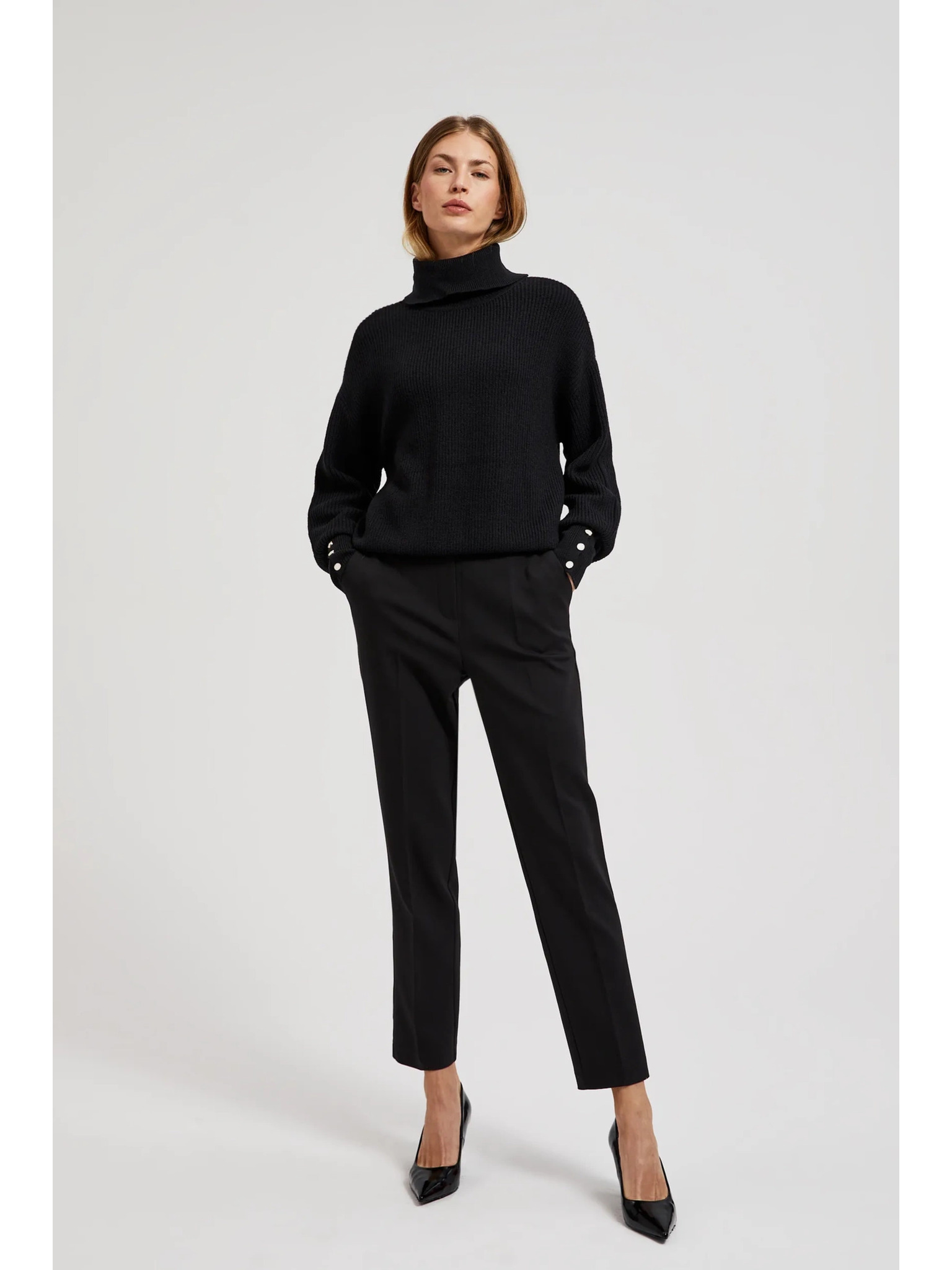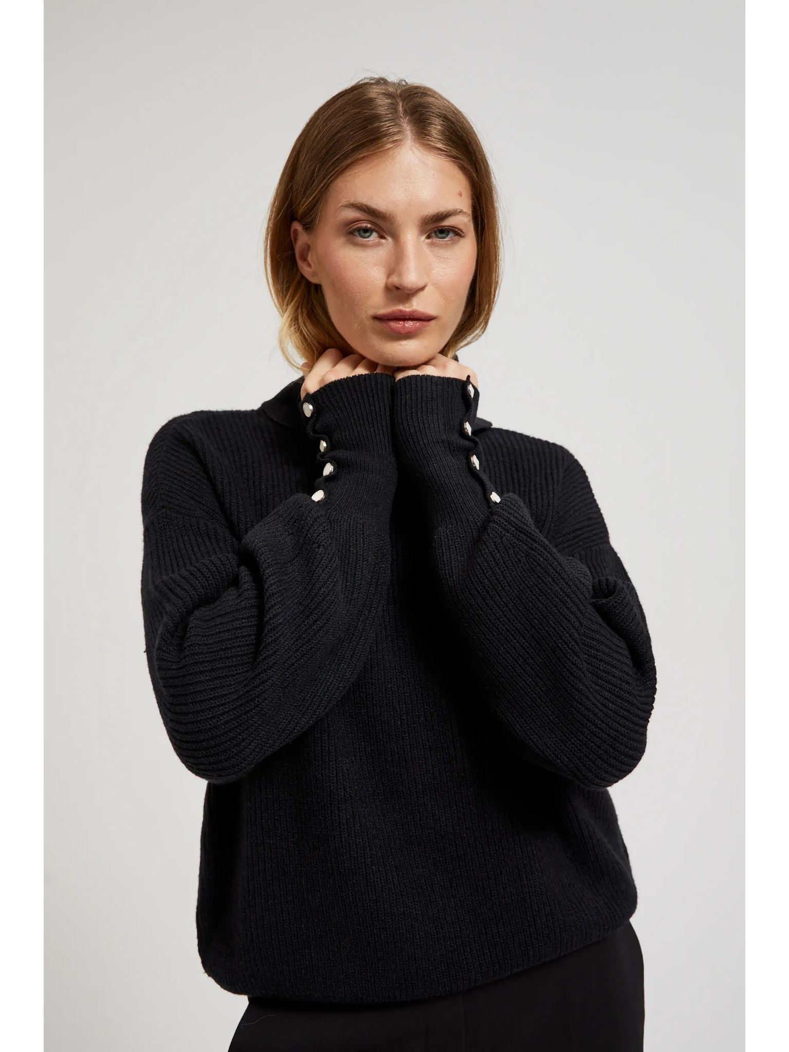 Črn pulover z visokim ovratnikom in napihnjeni rokavi Moodo