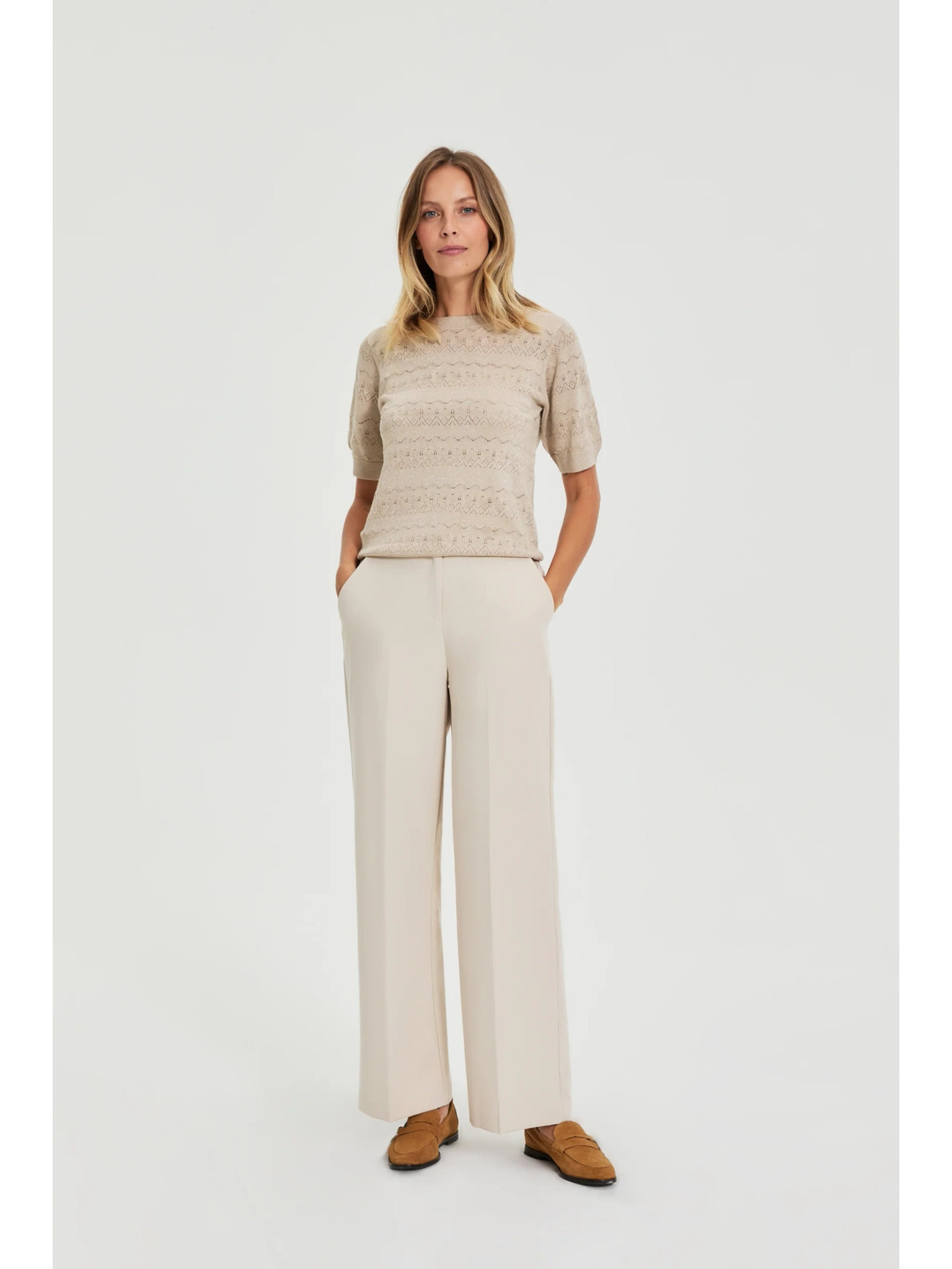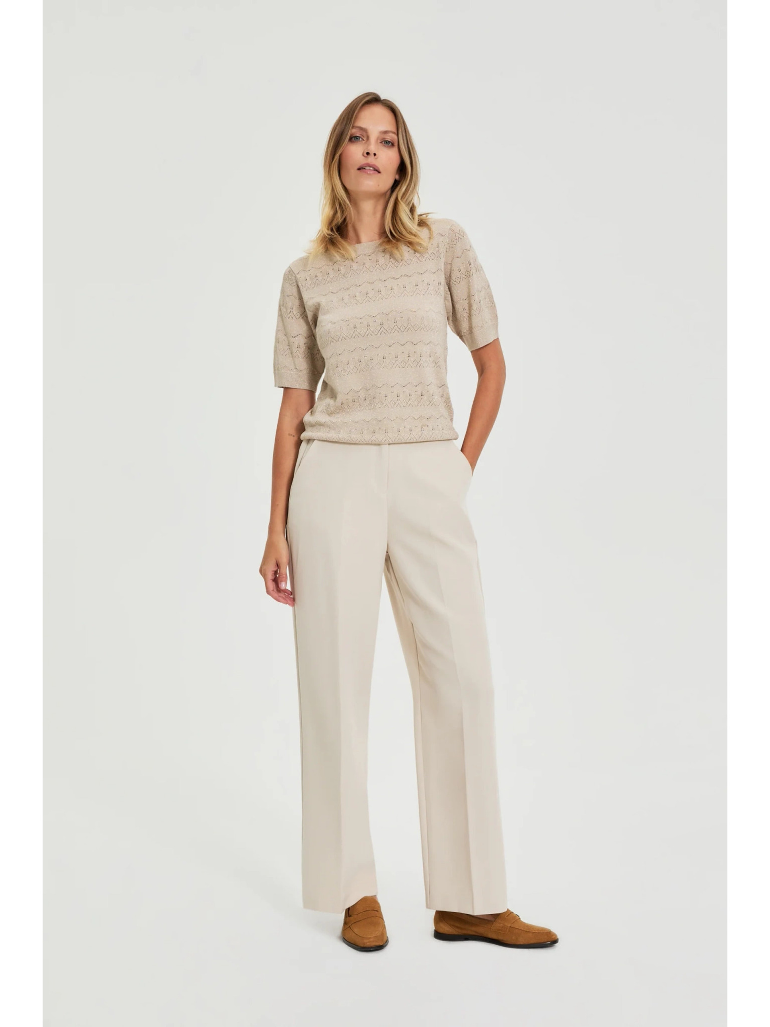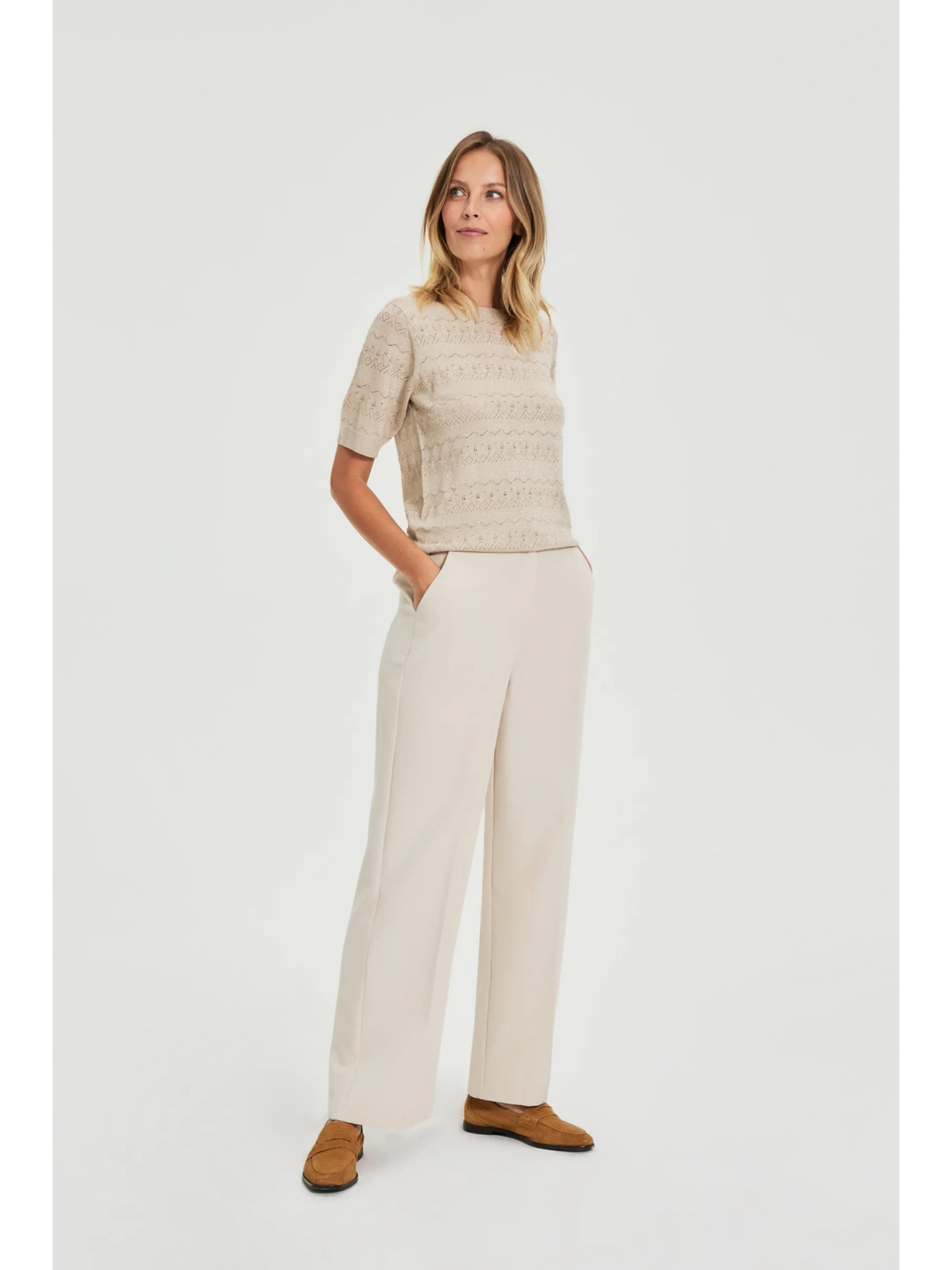 Bežaste hlače z pasom Moodo