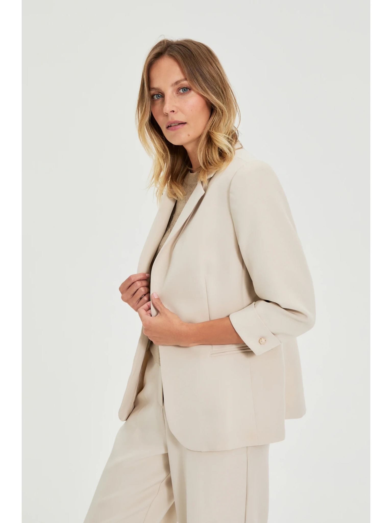 Enostranski blazer temno bež barve Moodo