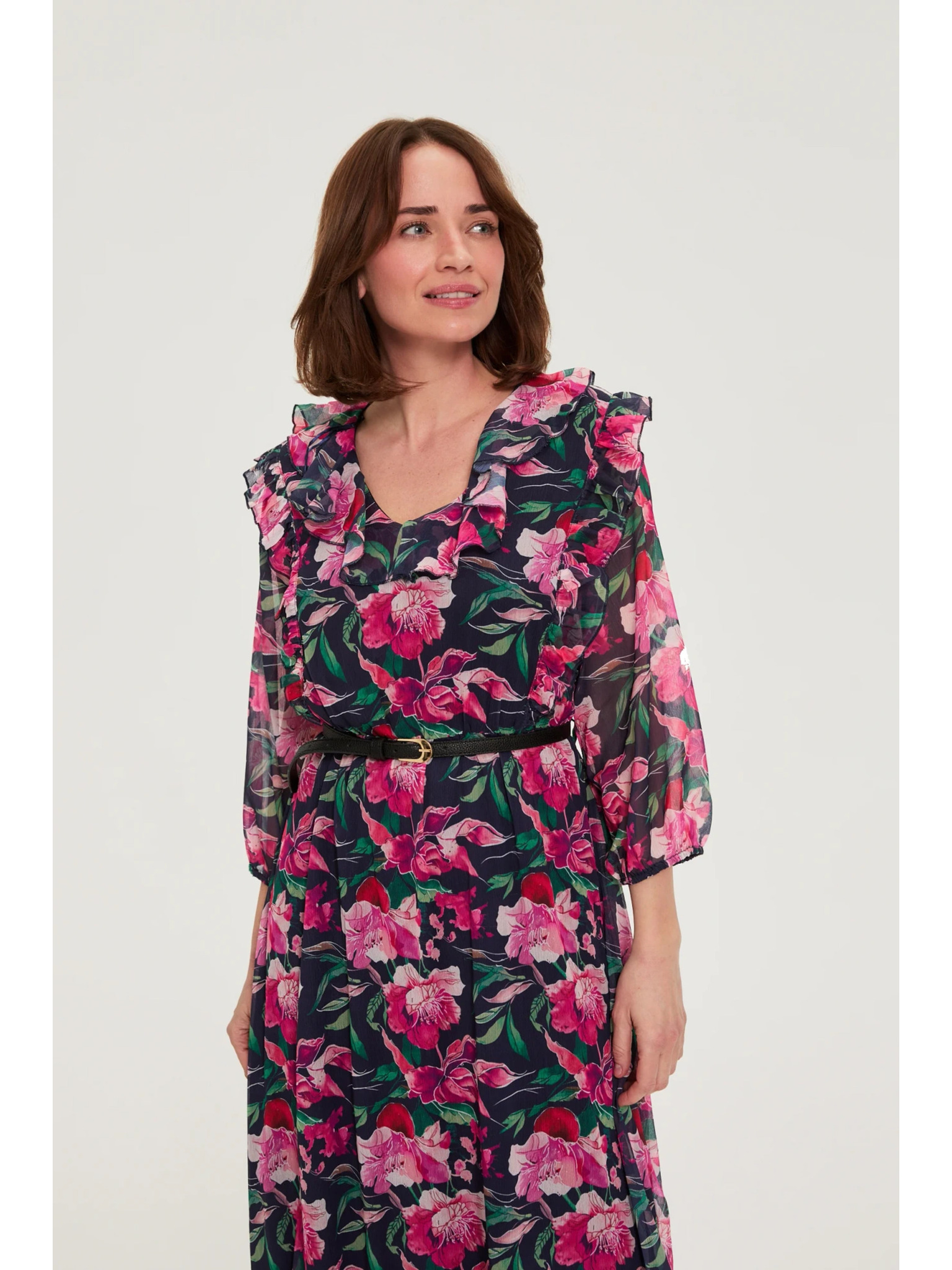 Temno modre midi obleke s cvetjem Moodo