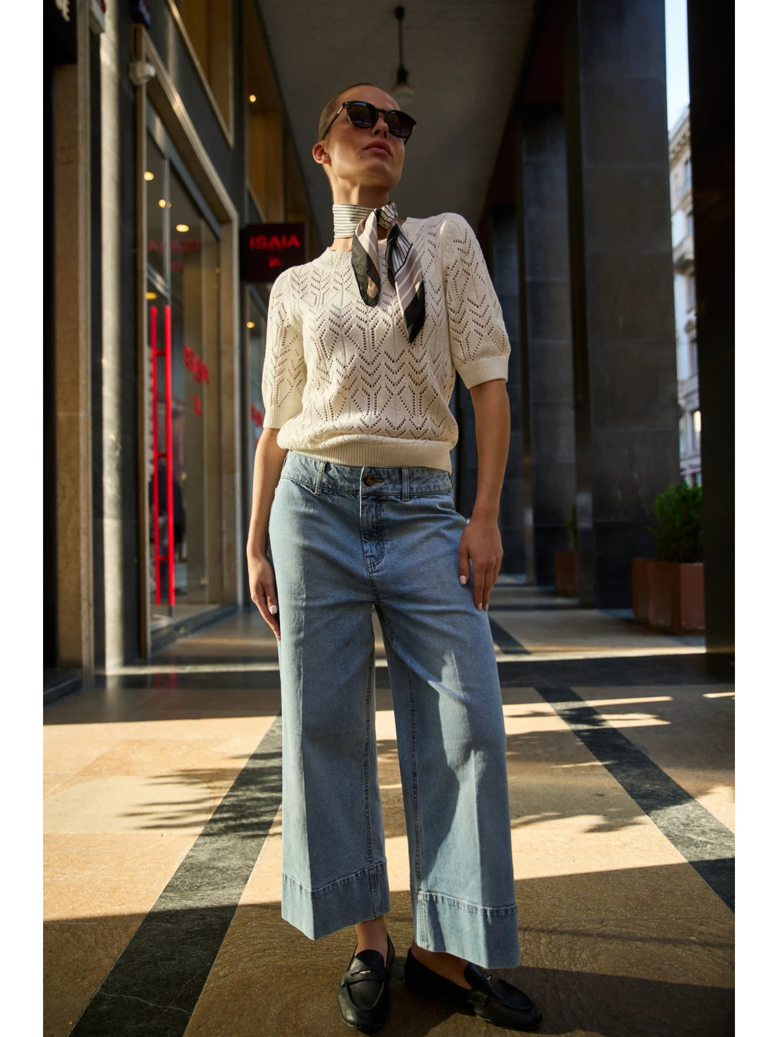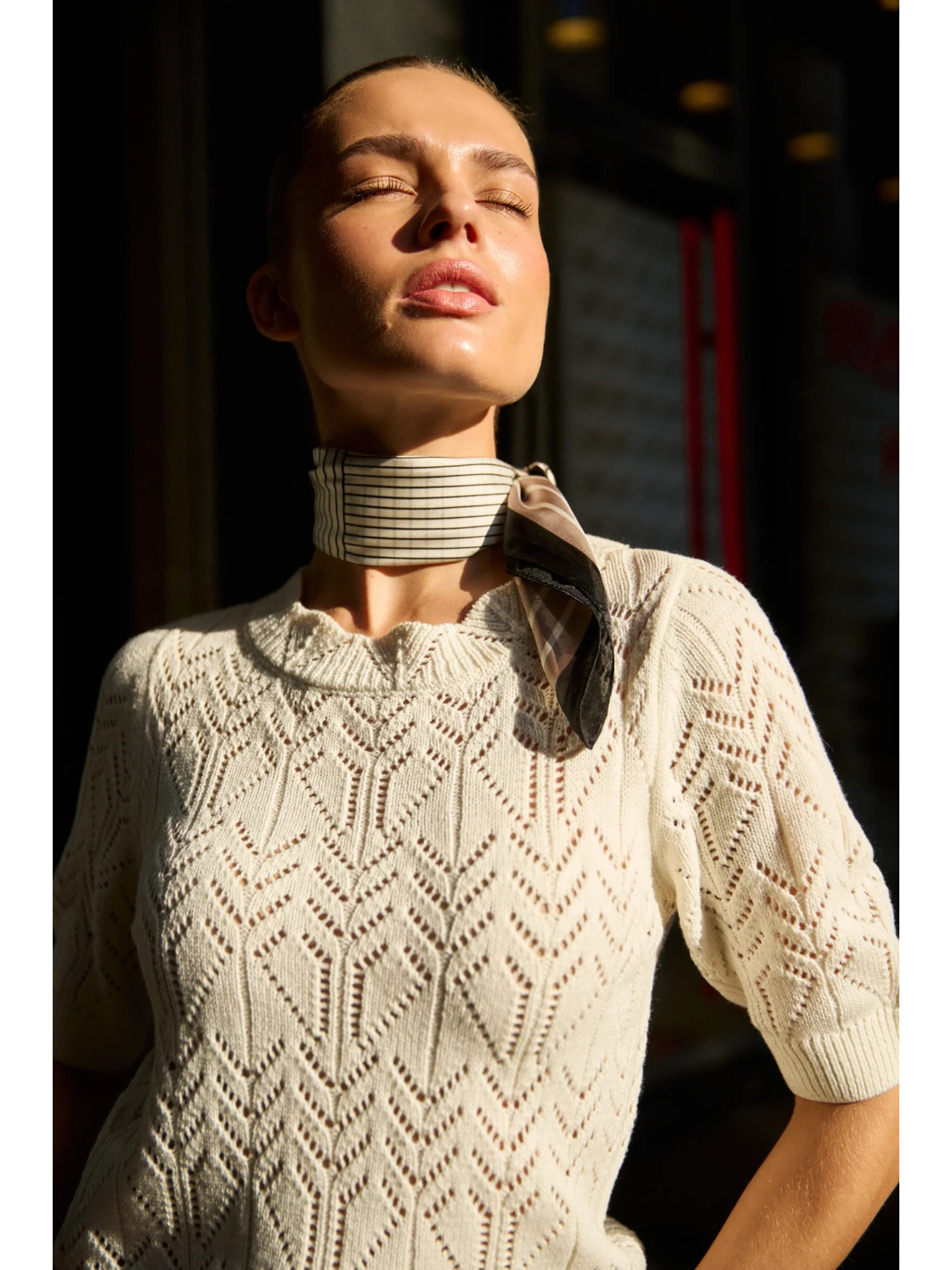 Bel pulover z balončastimi rokavi