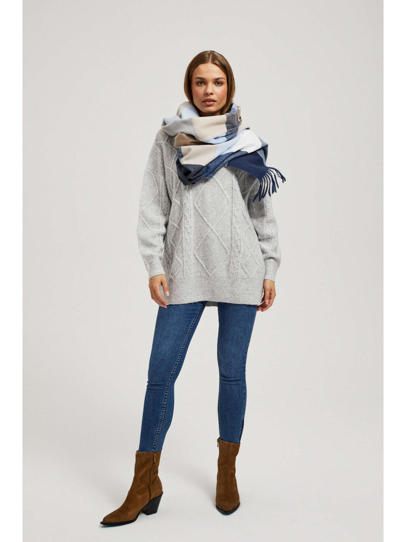 Šal v kockah bež Moodo