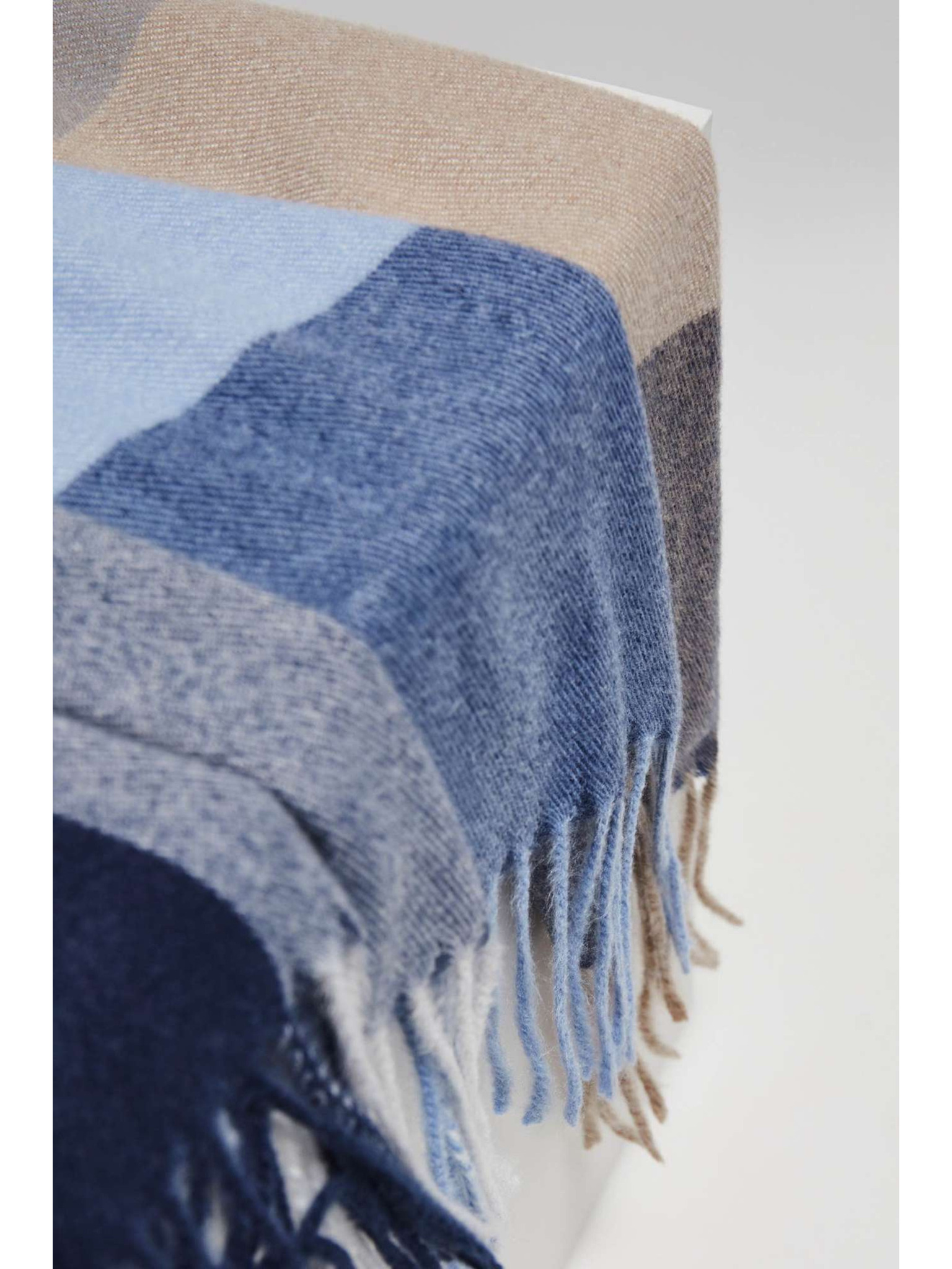 Šal v kockah s cofki bež Moodo