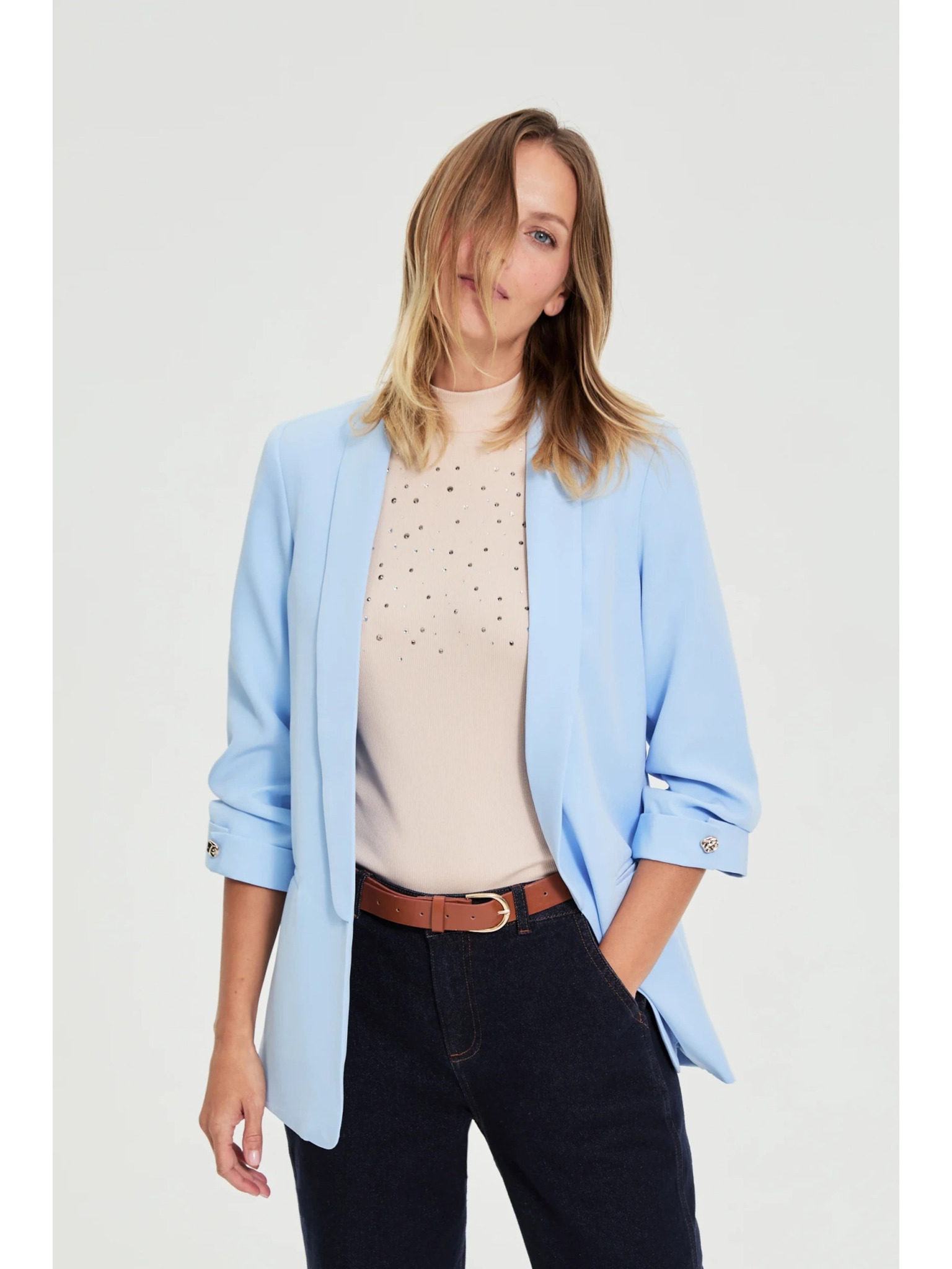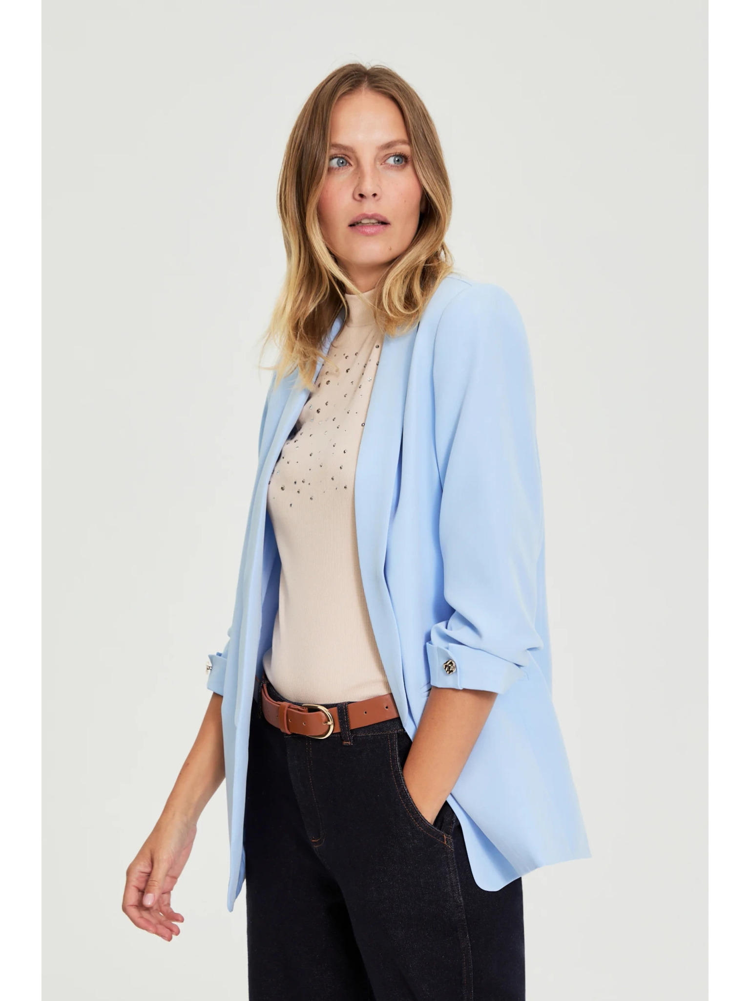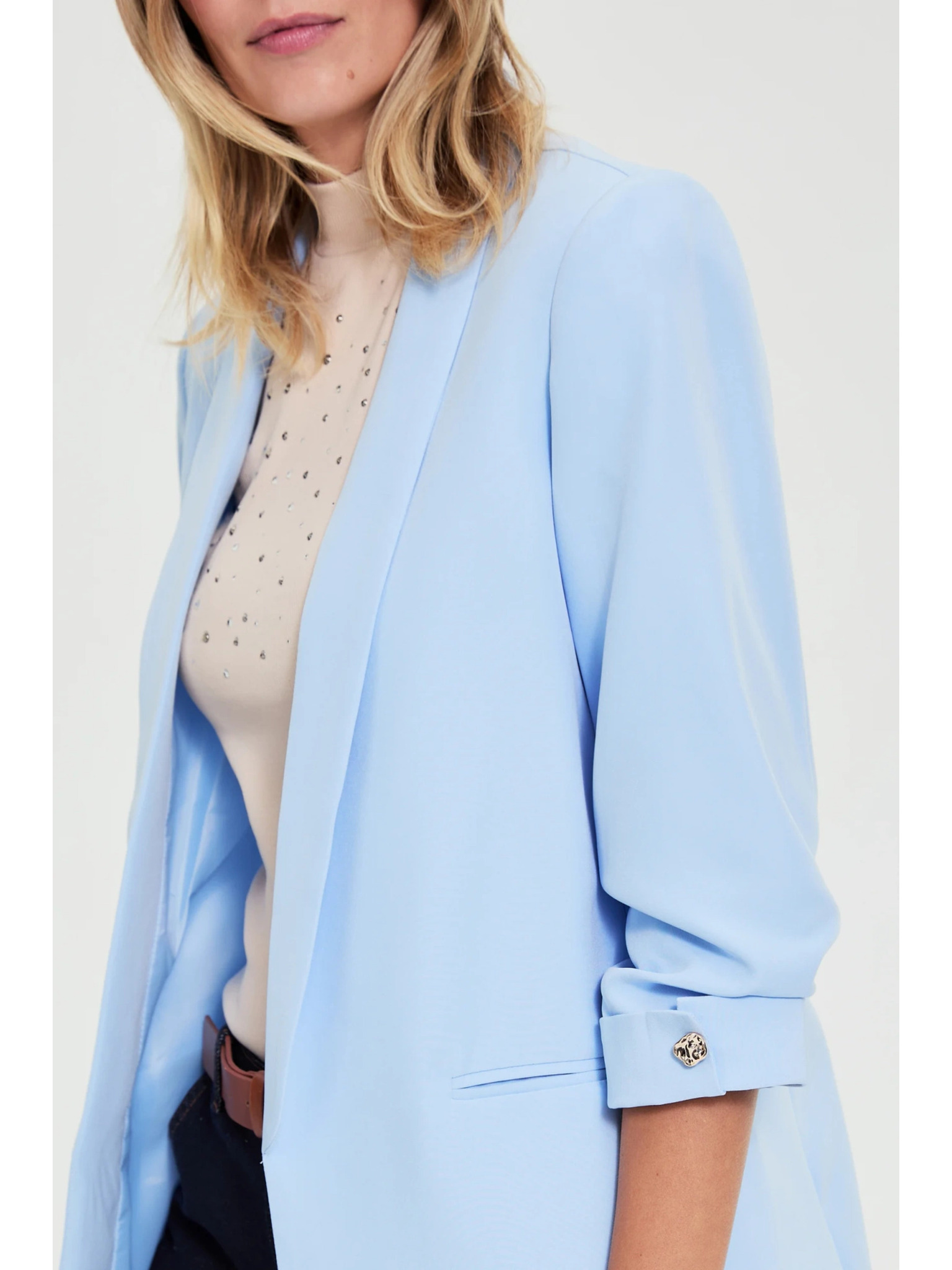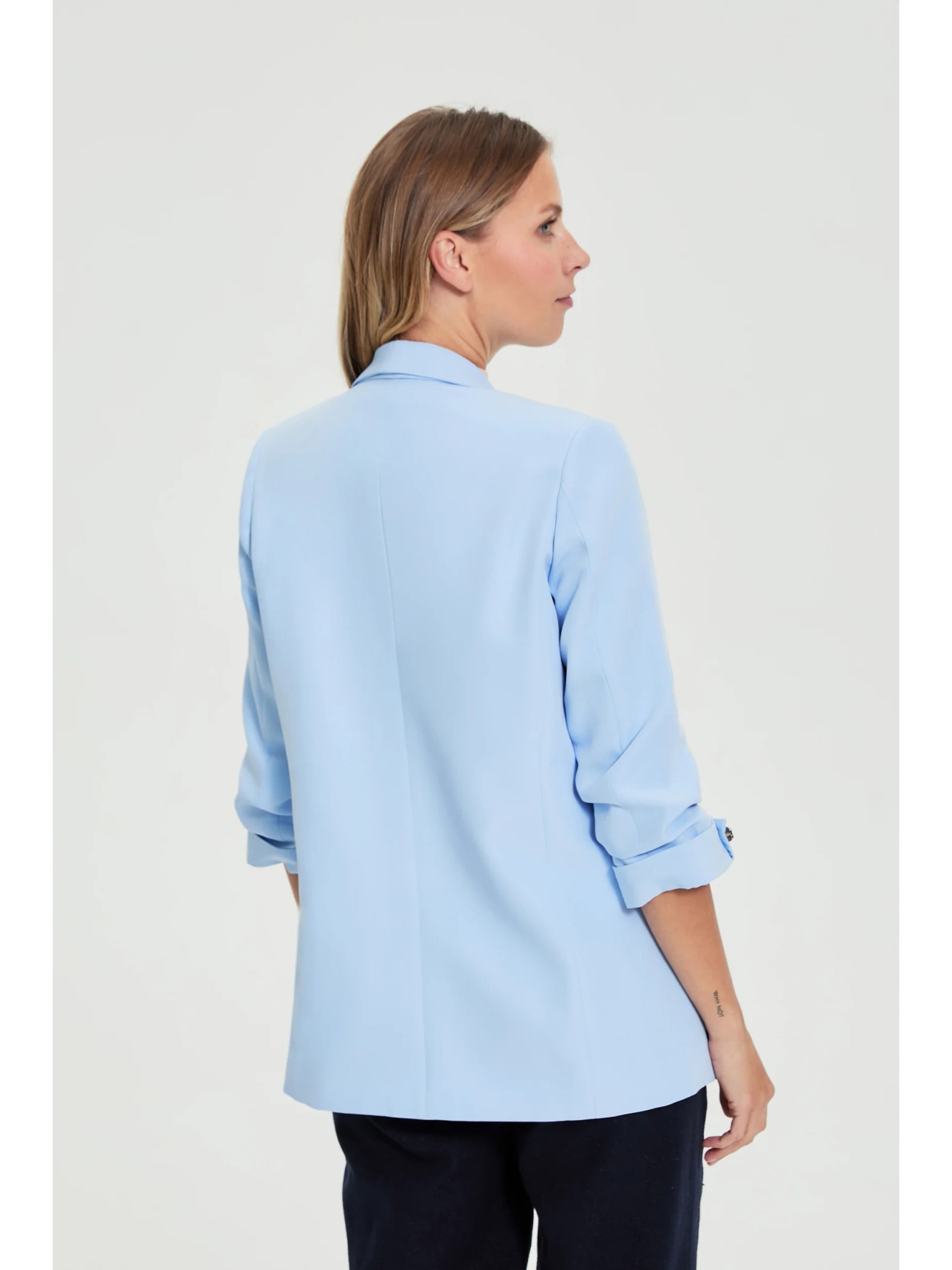 Modra lanena jakna s 3/4 rokavi Moodo