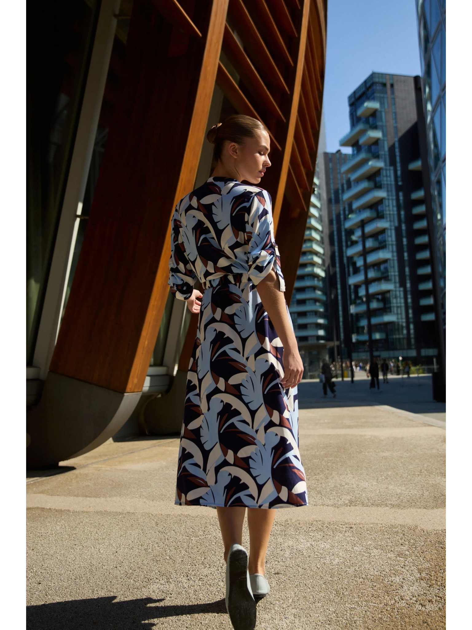Temno modre midi obleke s cvetjem Moodo