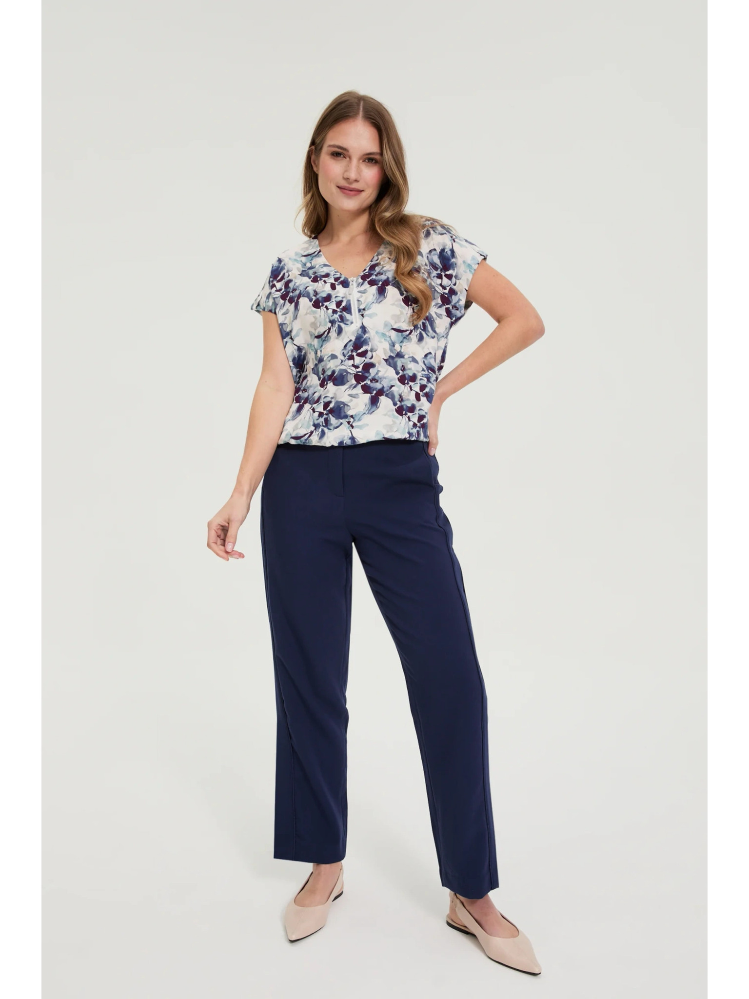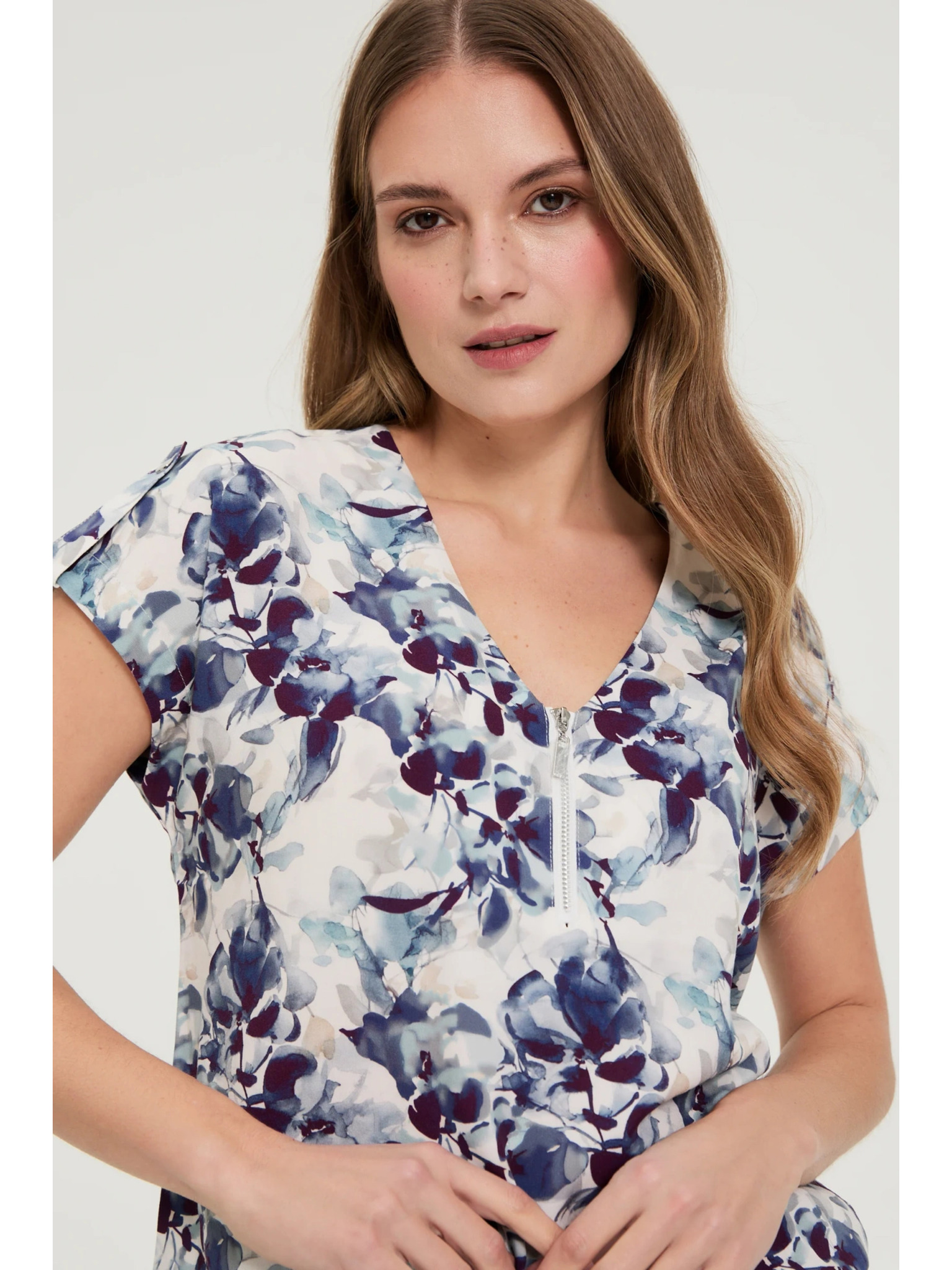Temno modra viskozna srajca Moodo s cvetličnim vzorcem