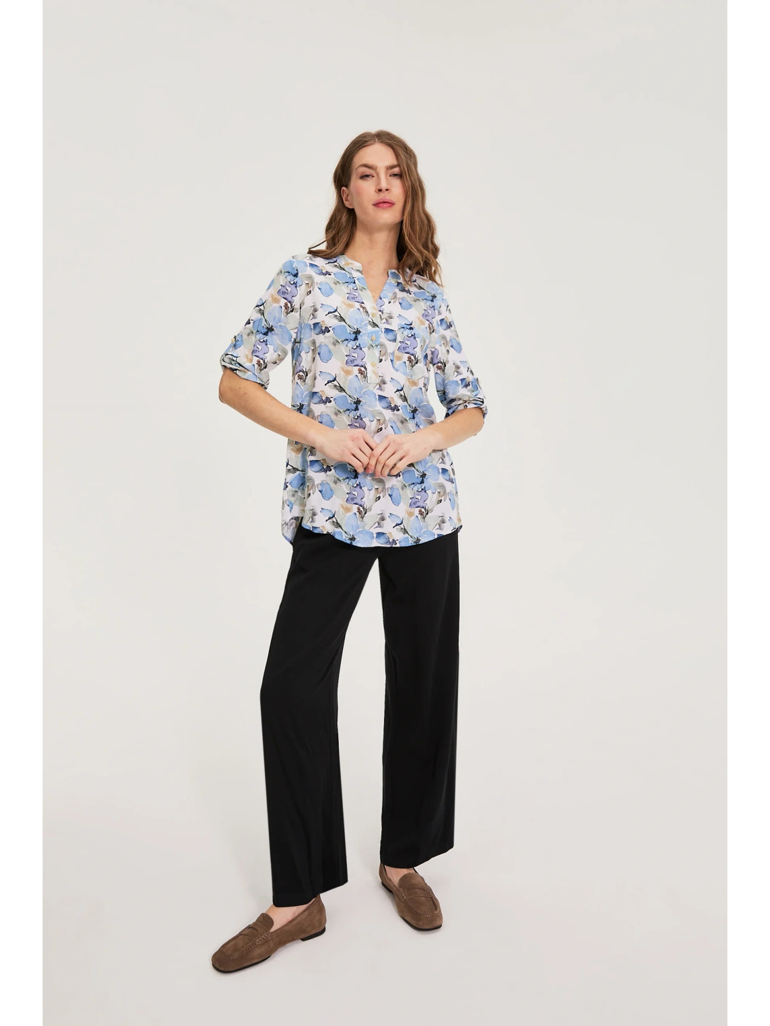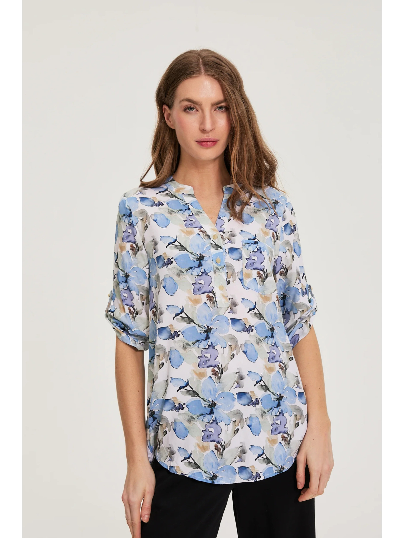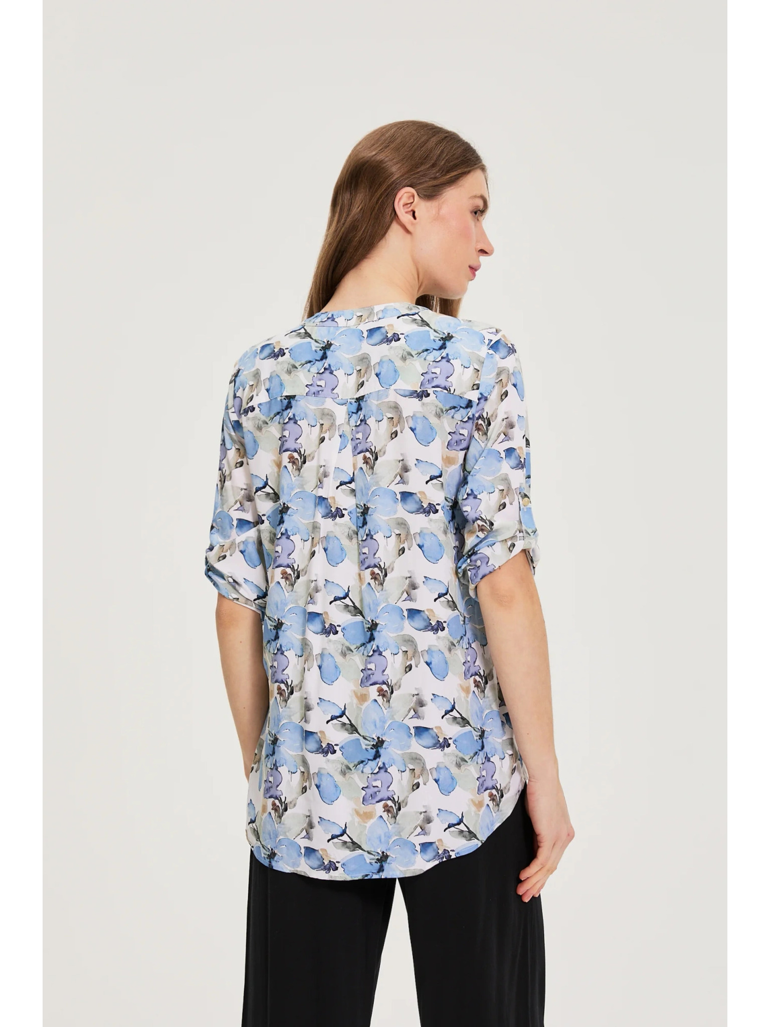 Srajca iz viskože s cvetovi modra Moodo