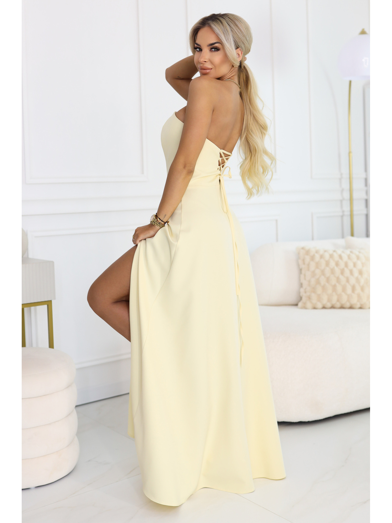 Dolge obleke z blagim bleskom in korzetnim zavezovanjem na zadnji strani - zelene s svetlečimi detajli